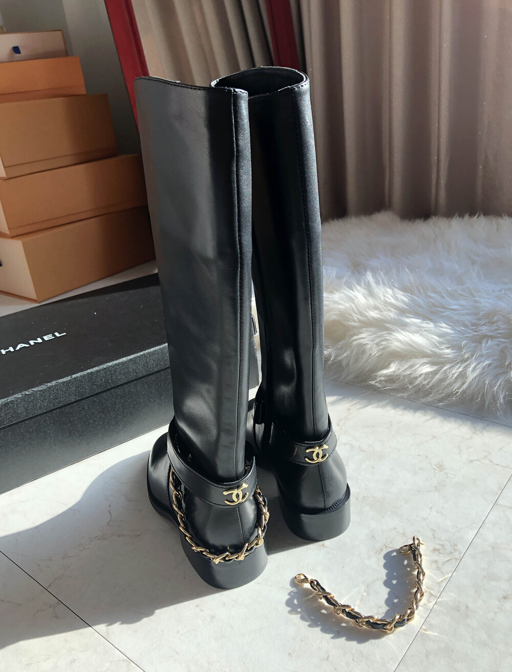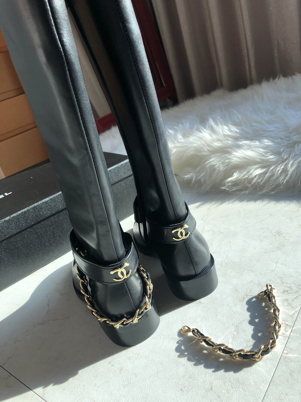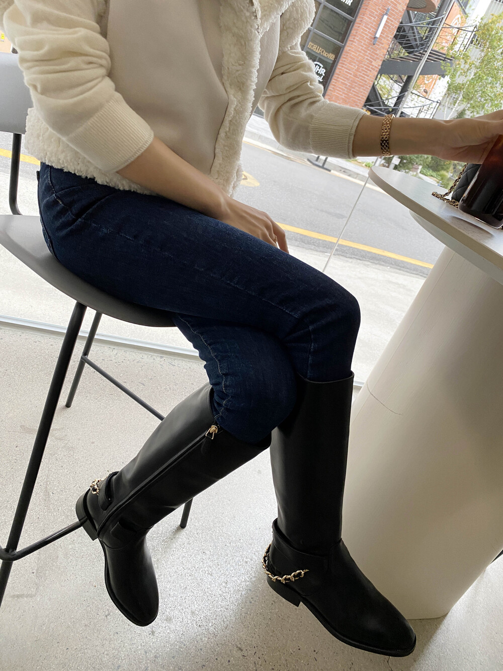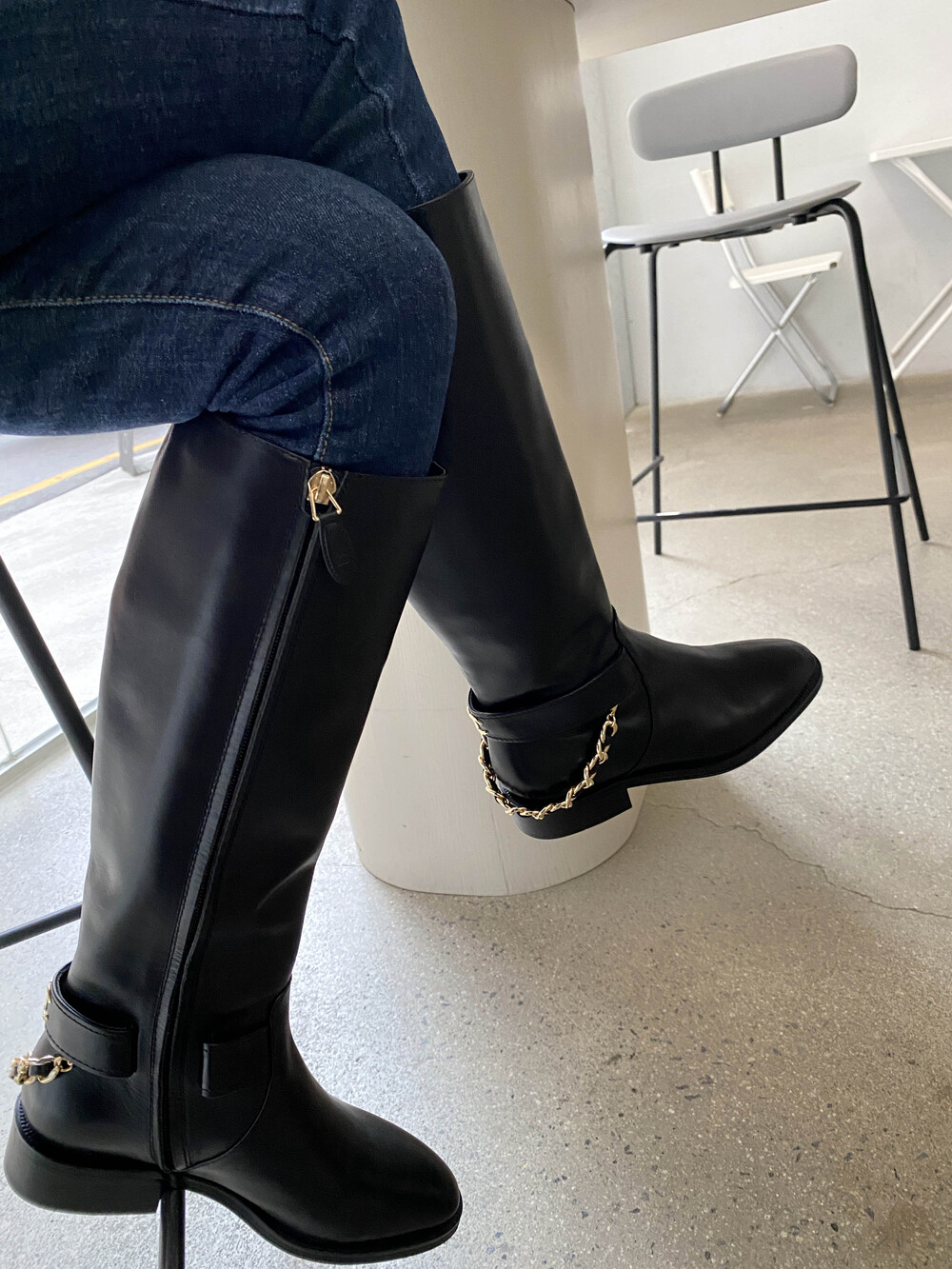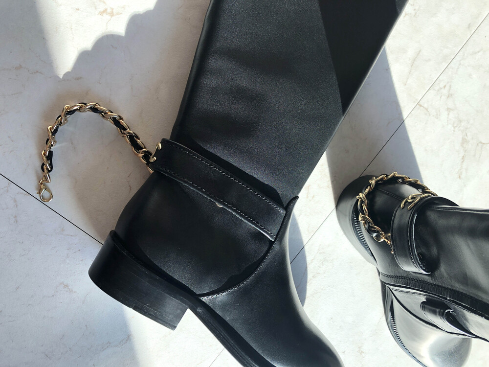 [수입]CC백로고 체인 롱부츠