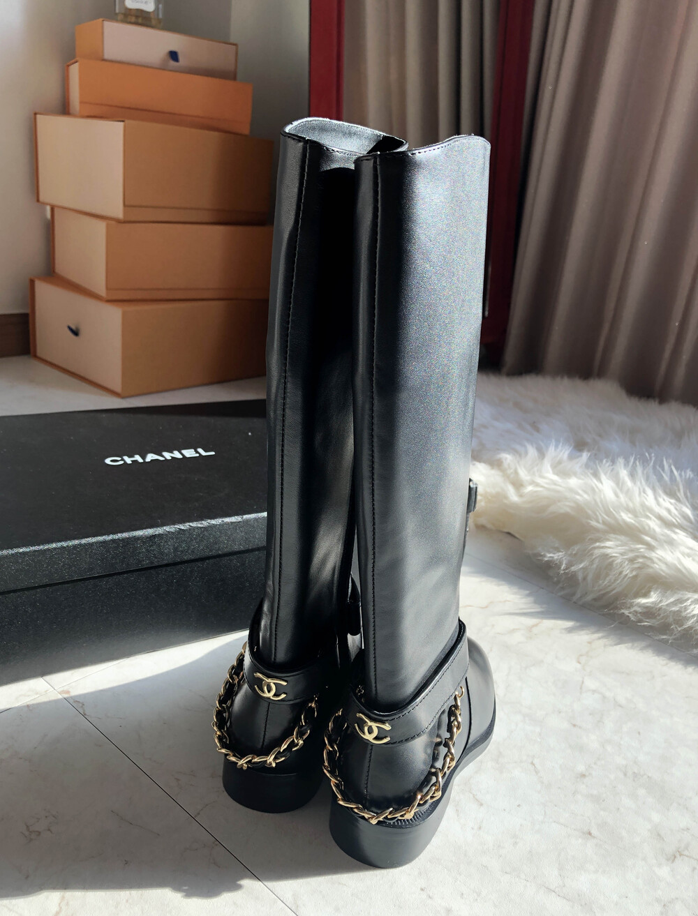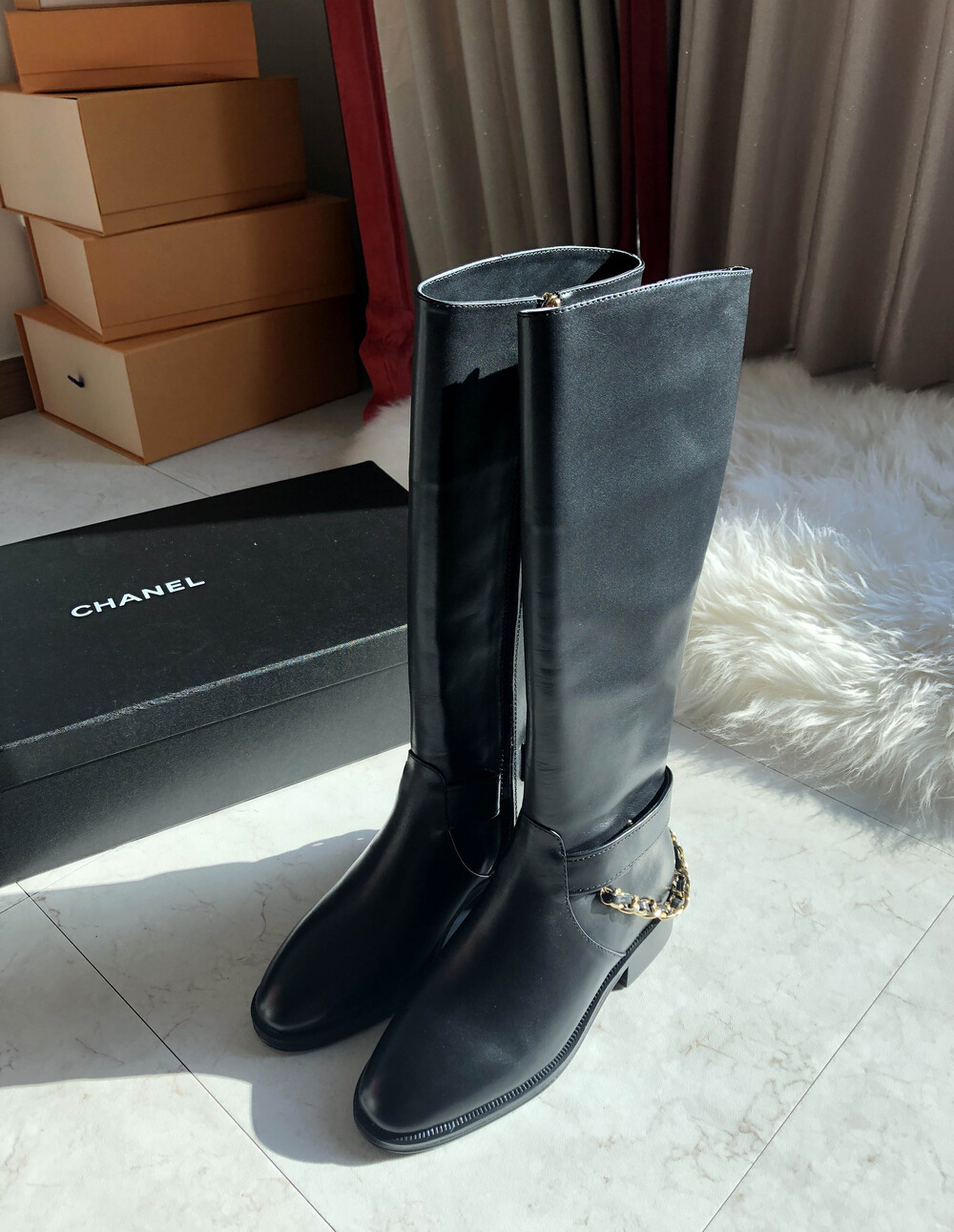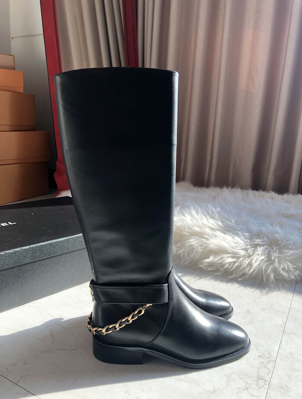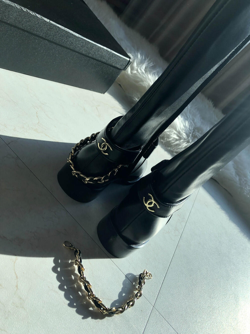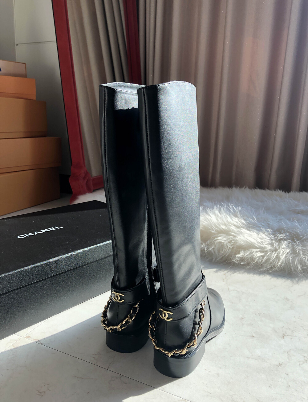 [수입]CC백로고 체인 롱부츠