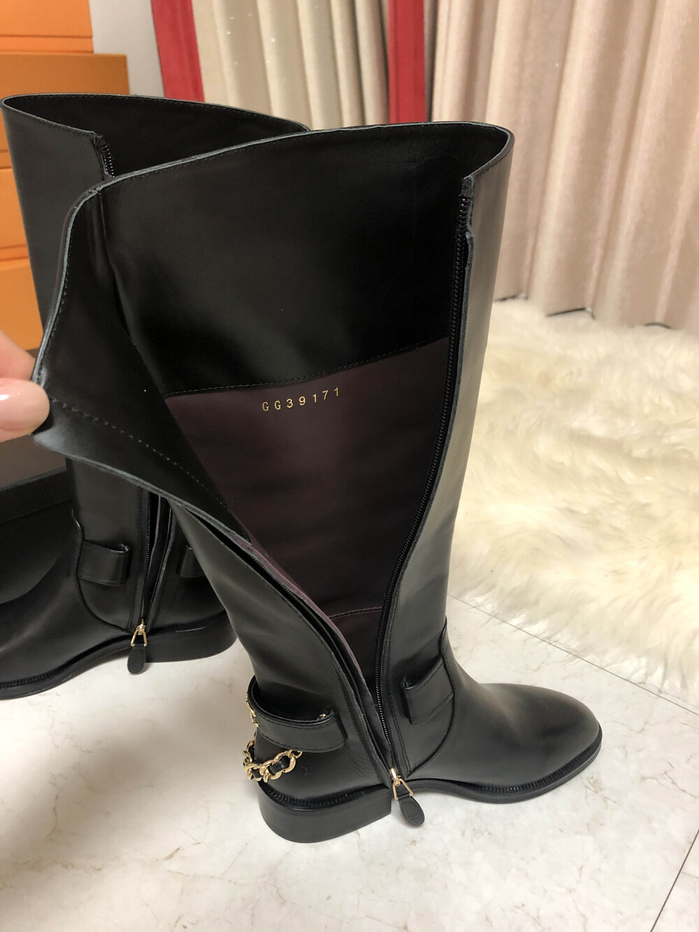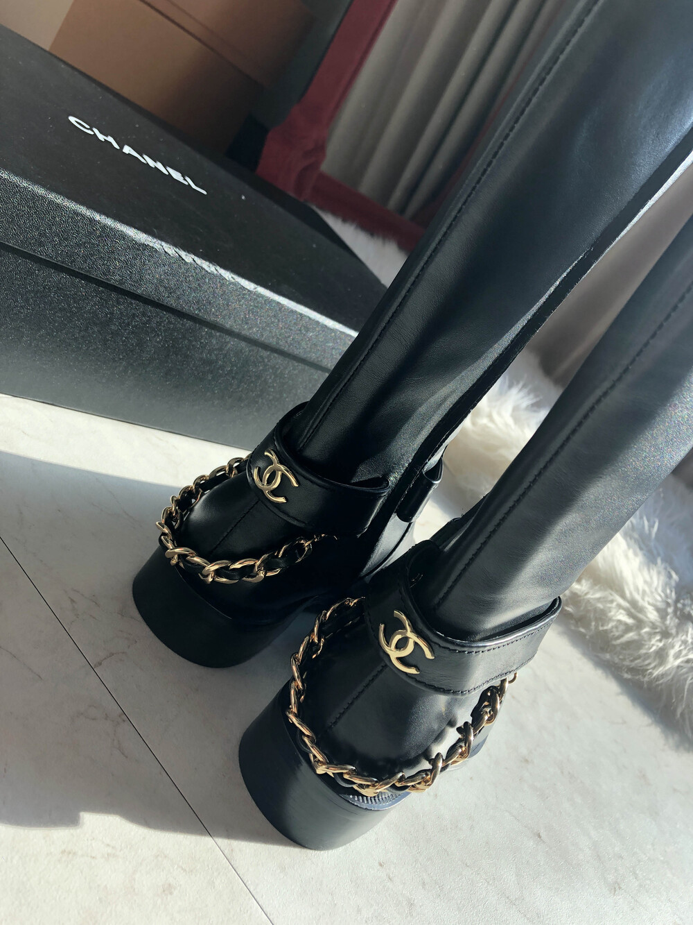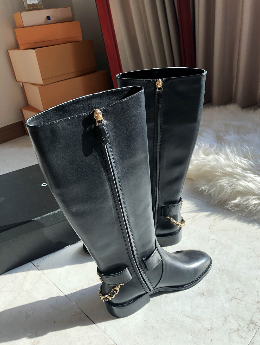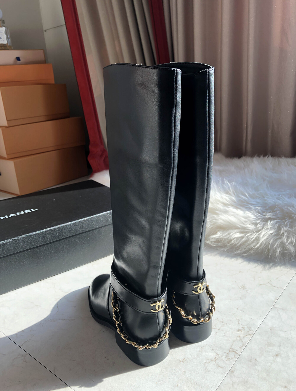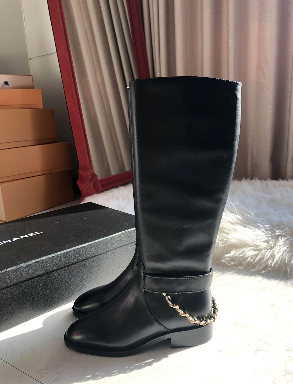 [수입]CC백로고 체인 롱부츠