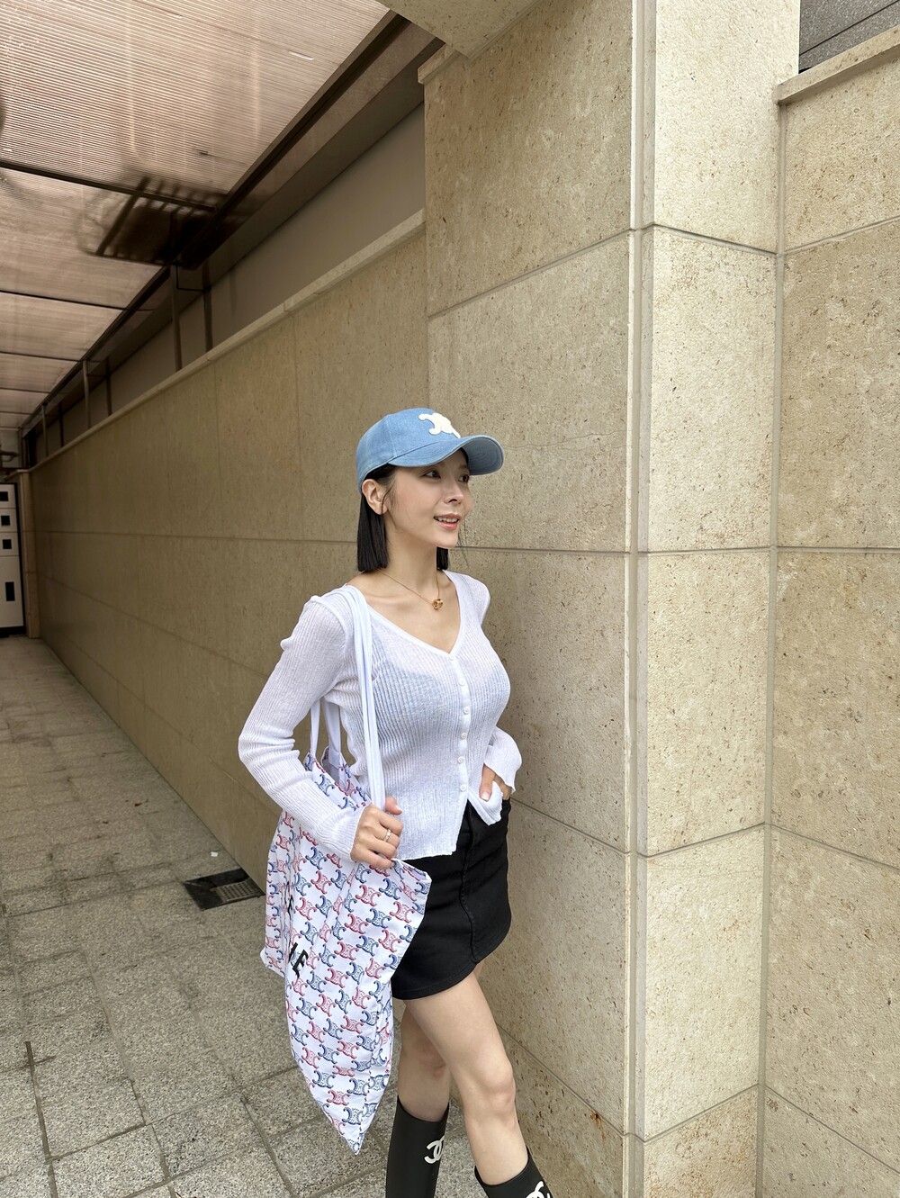연청 데님 컬러에 화이트 트리오페 로고가 포인트로 따악!!