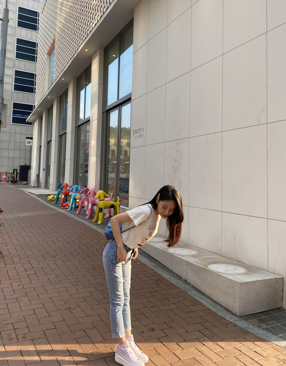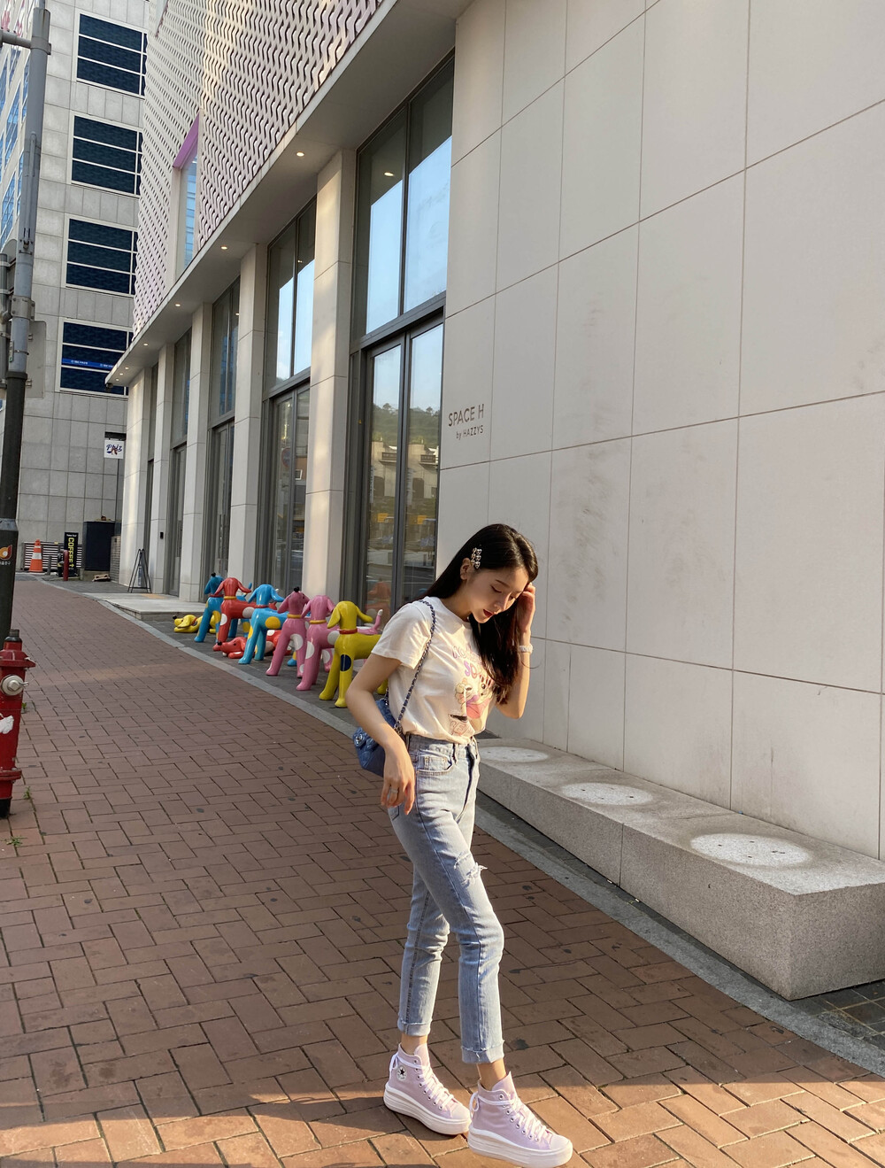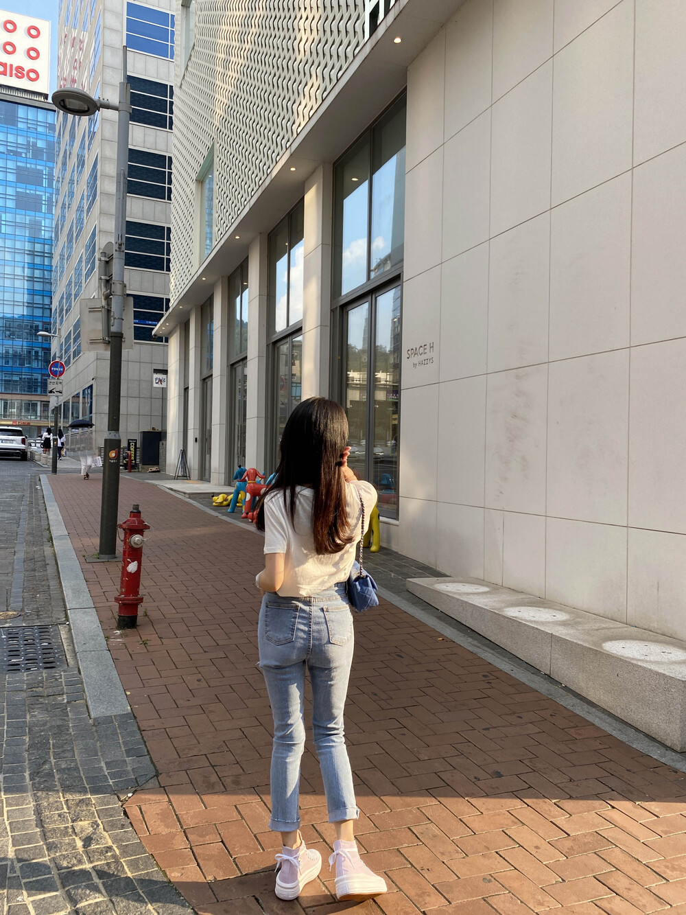 팬츠 기장이 짧게 나왔기때문에 키작녀 분들에게도 발목 위로 오는 기장감이며