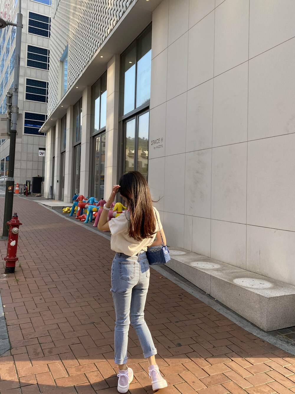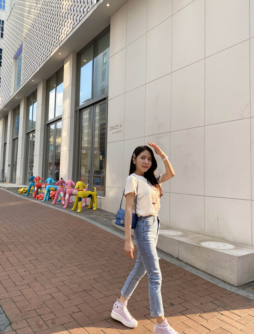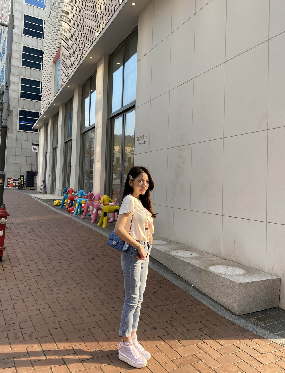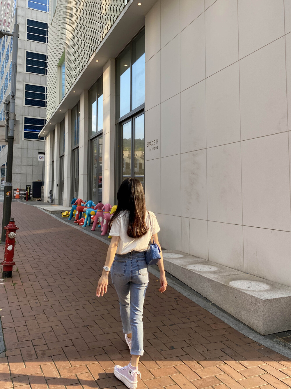 팬츠 기장이 짧게 나왔기때문에 키작녀 분들에게도 발목 위로 오는 기장감이며