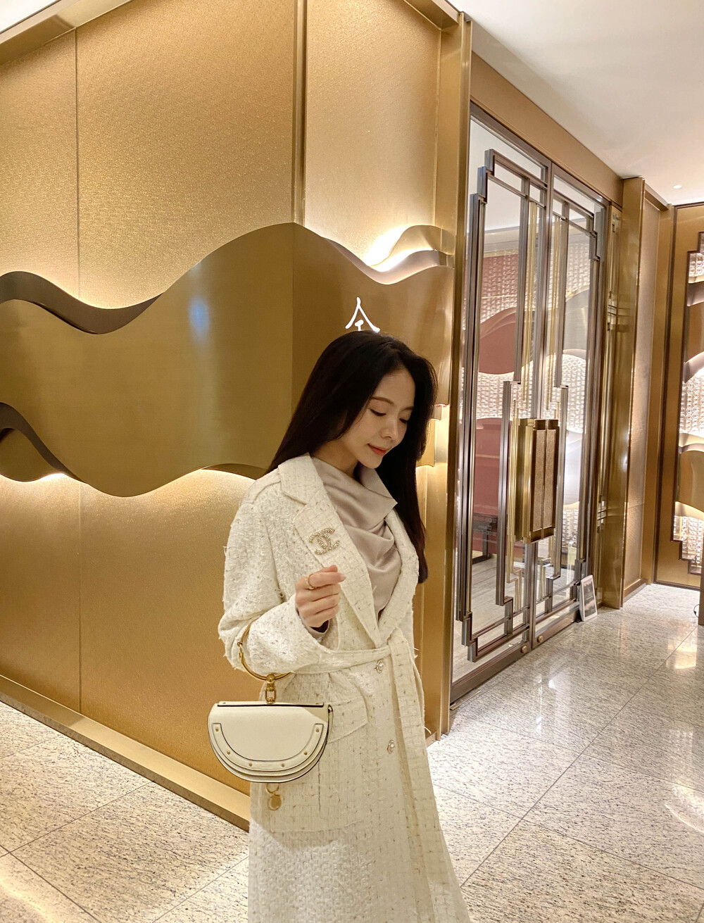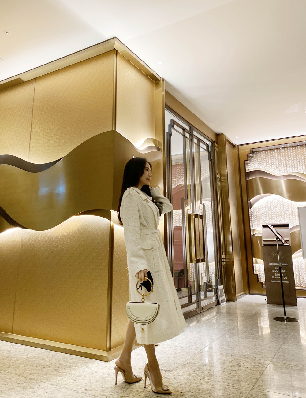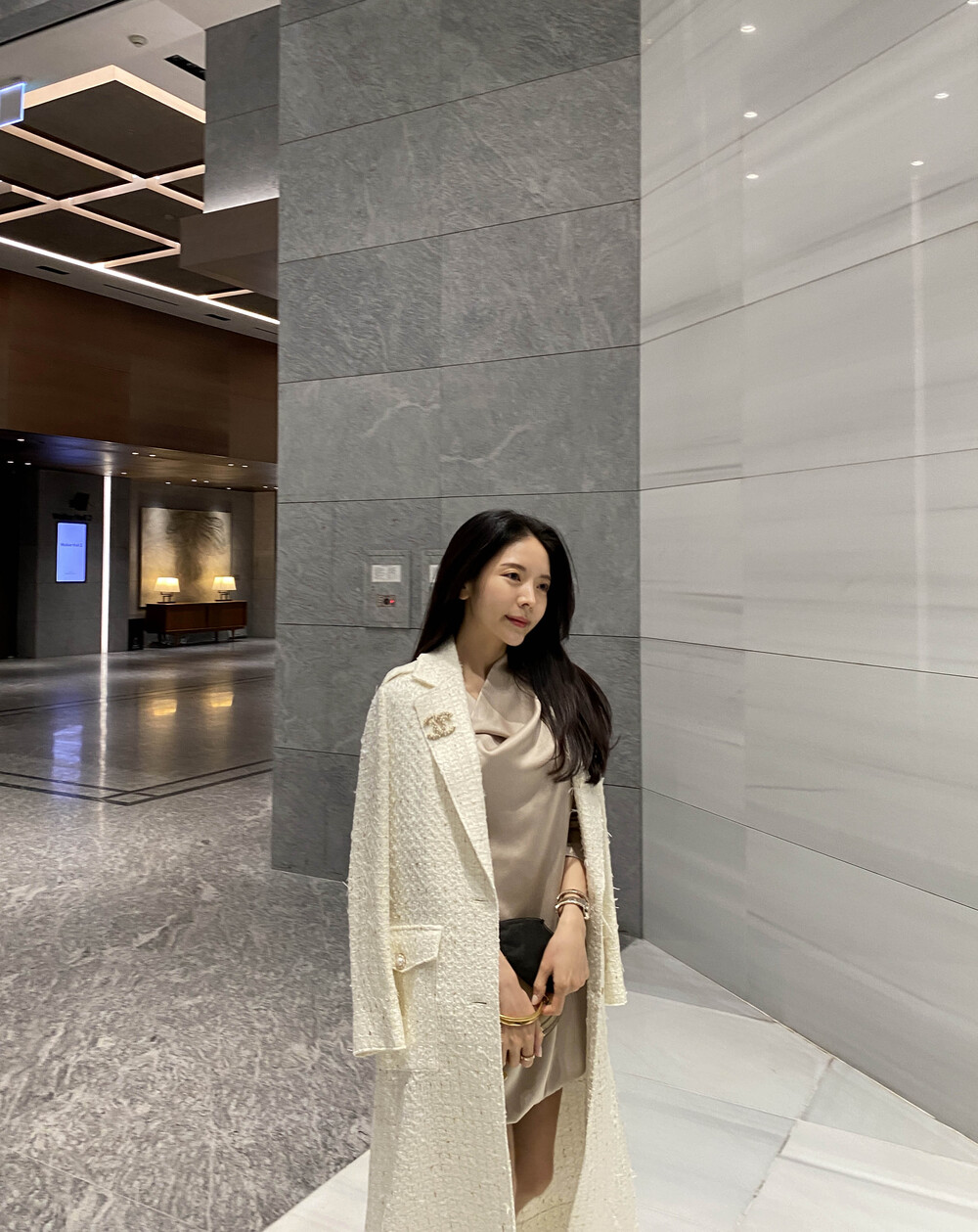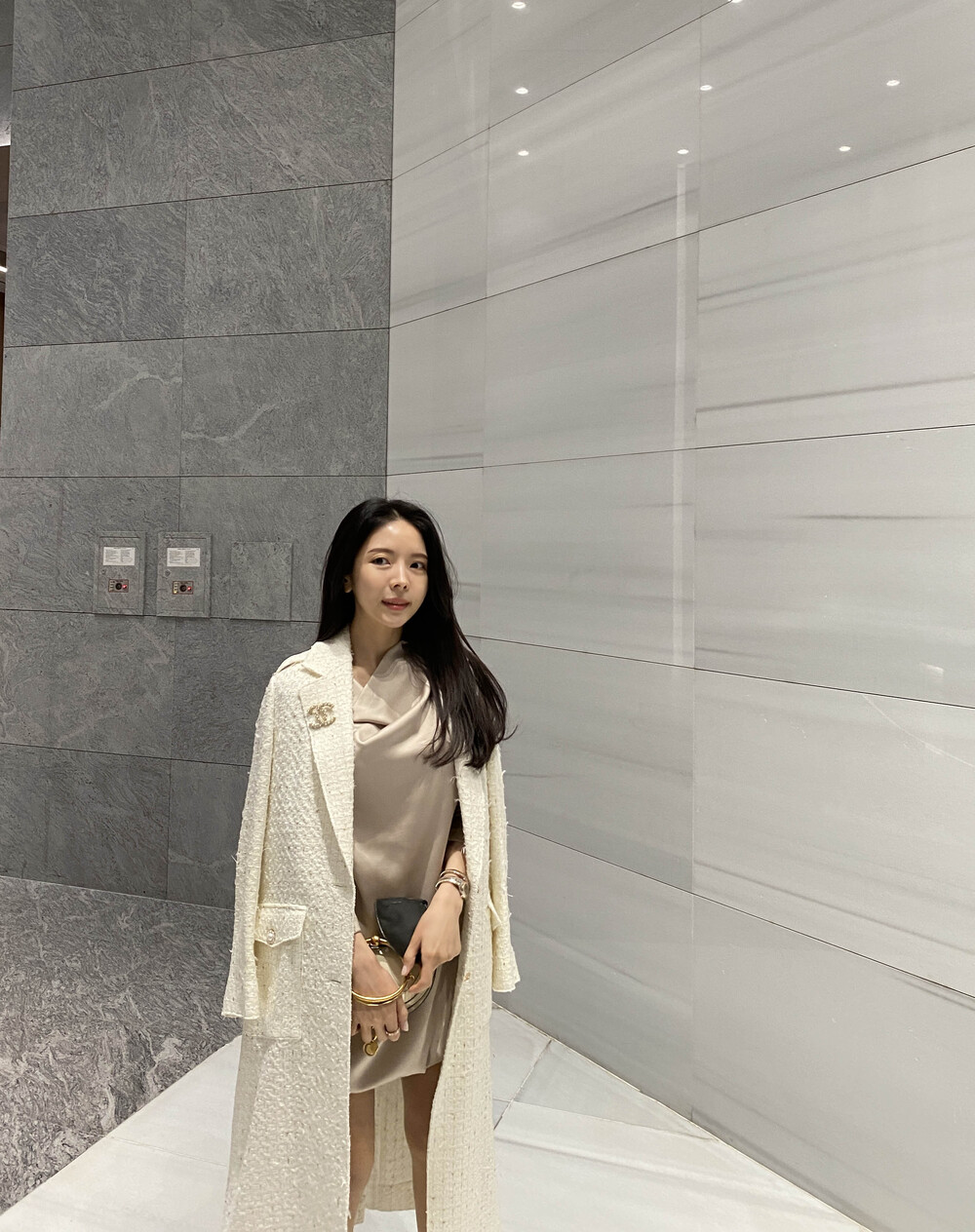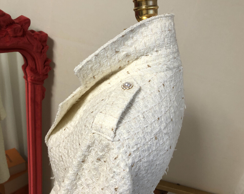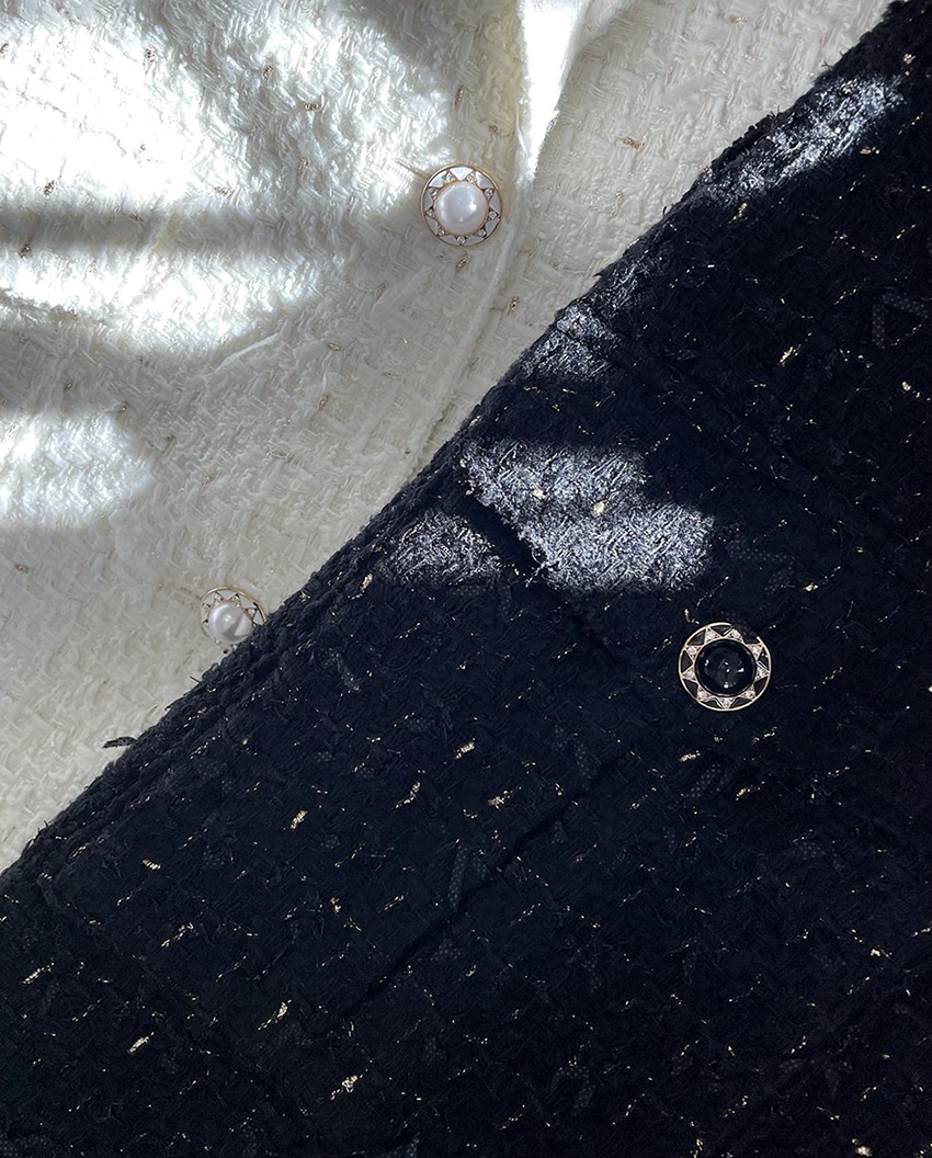 트위드 소재가 주는 클래식함과 페미닌한 무드를 살렸으며
