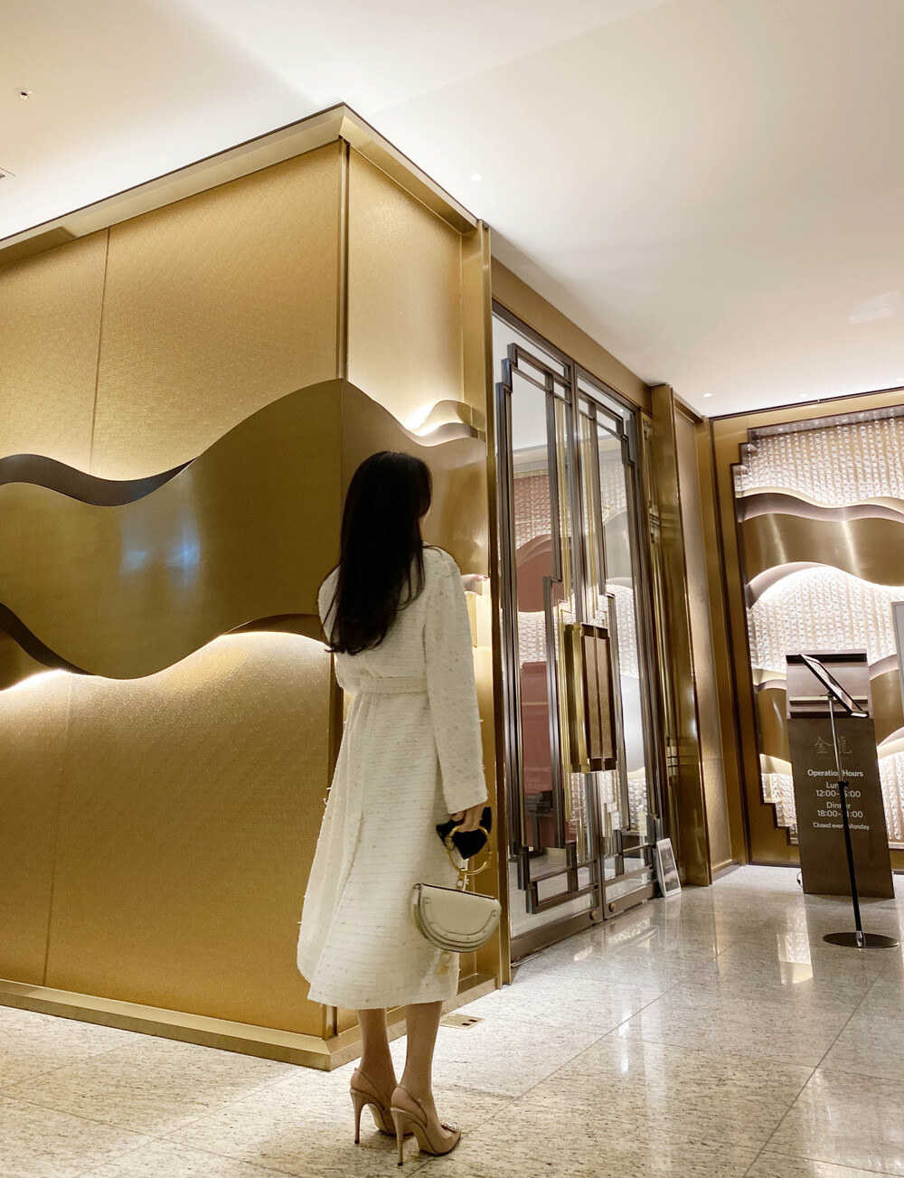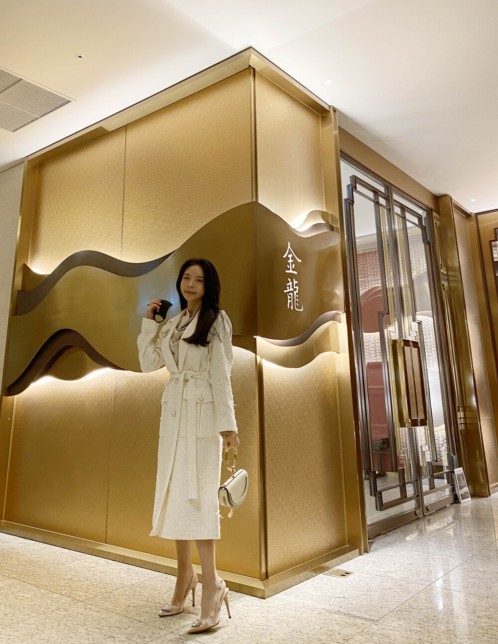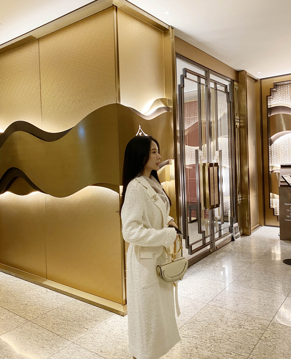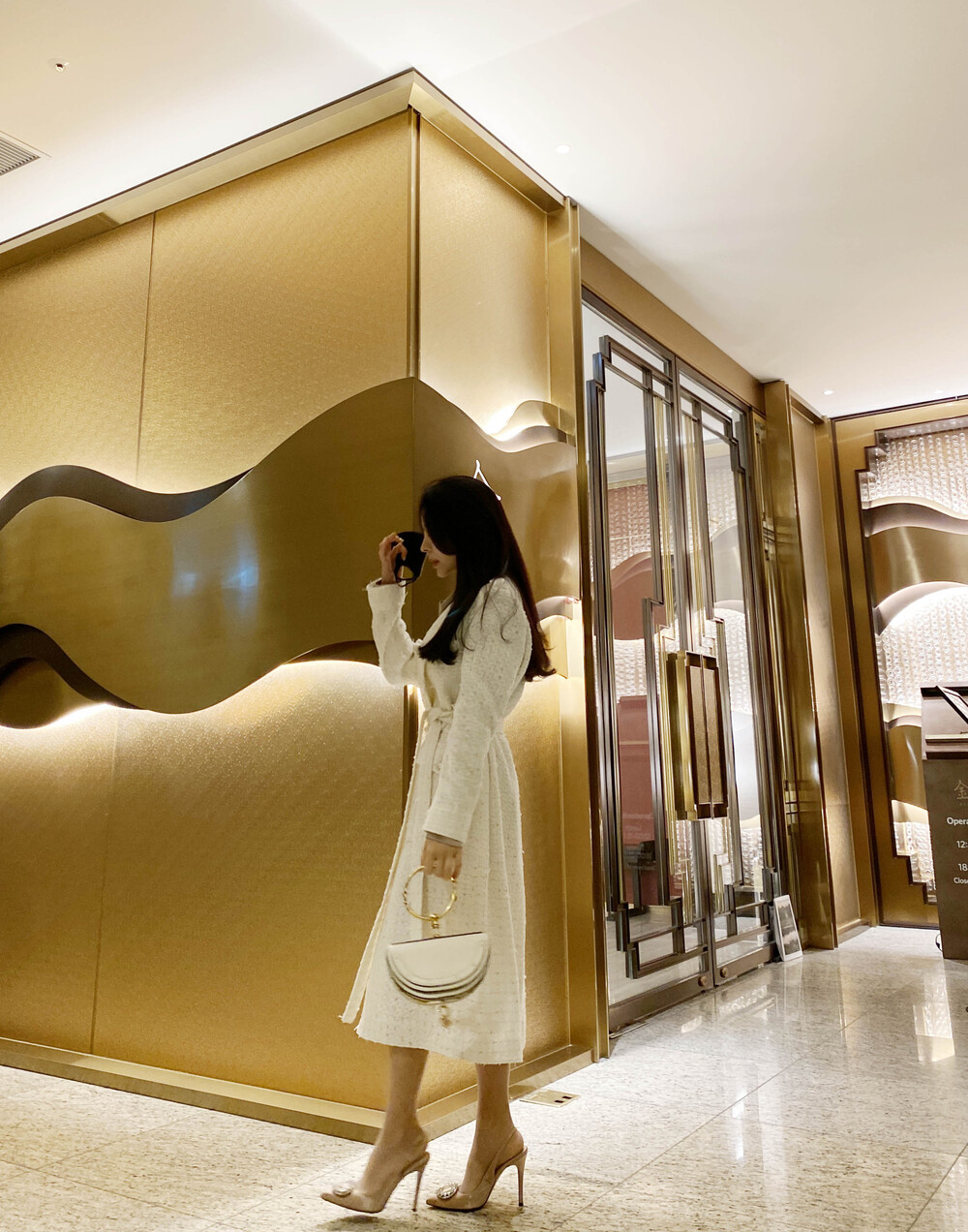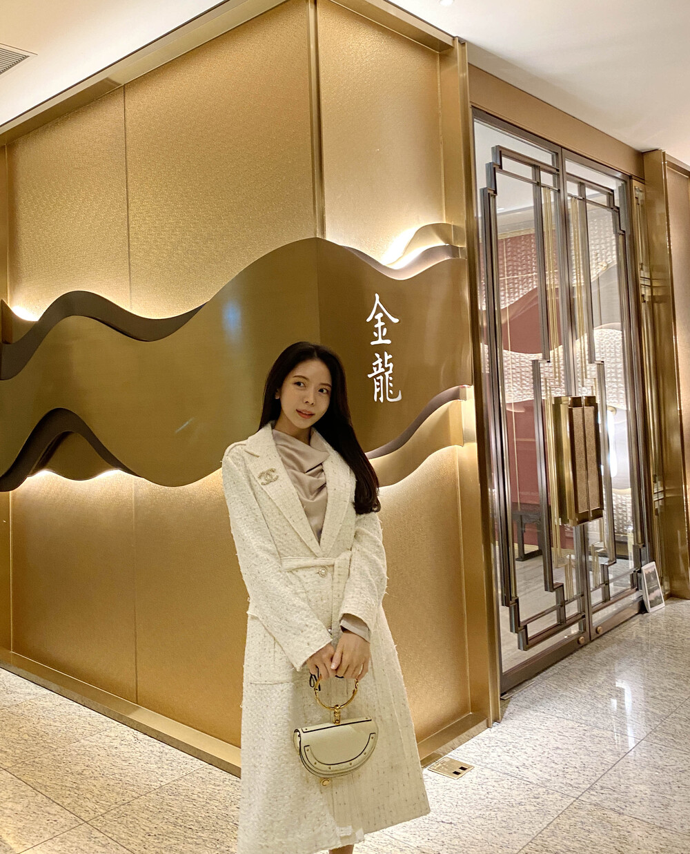 트위드 소재가 주는 클래식함과 페미닌한 무드를 살렸으며
