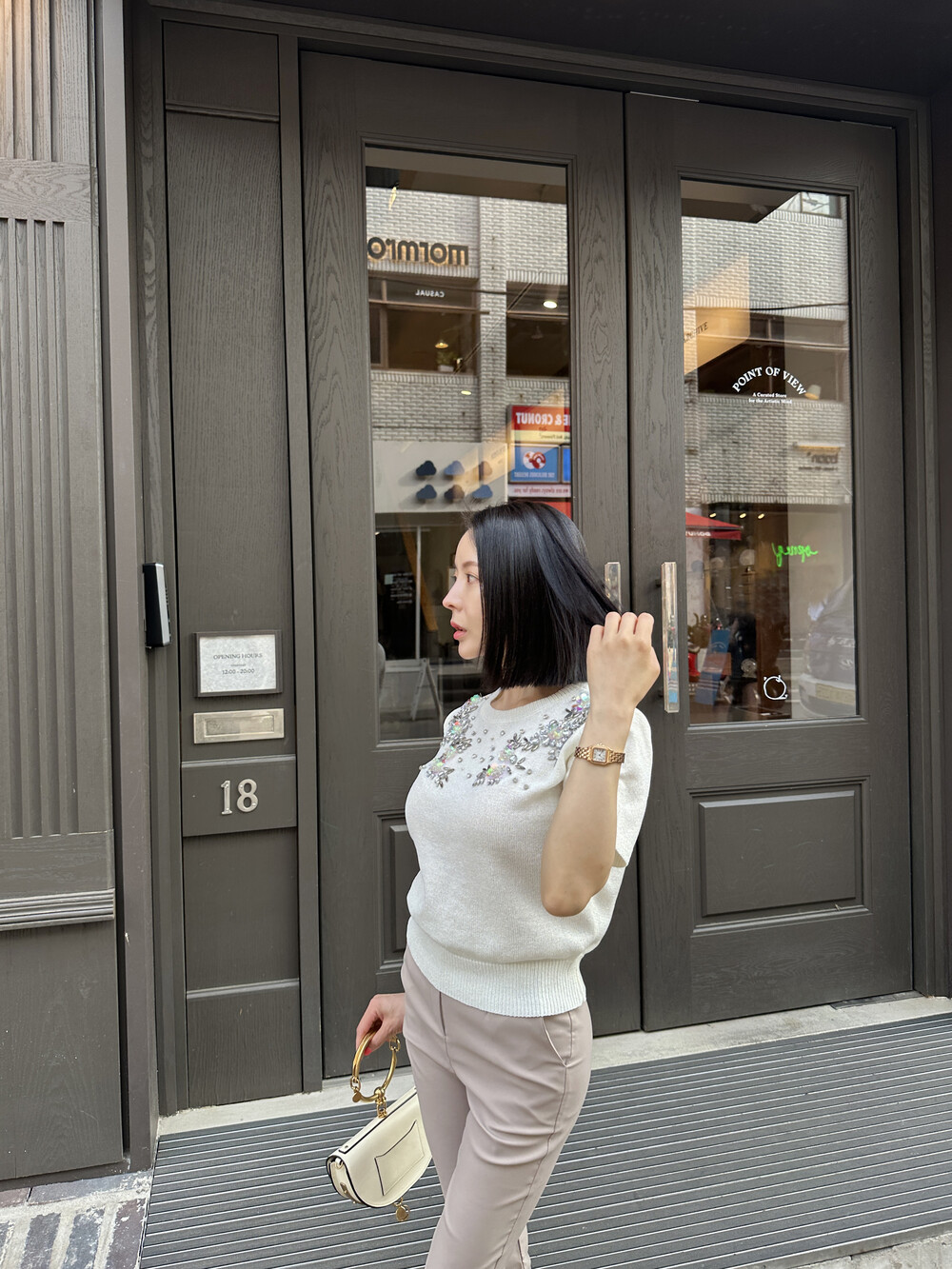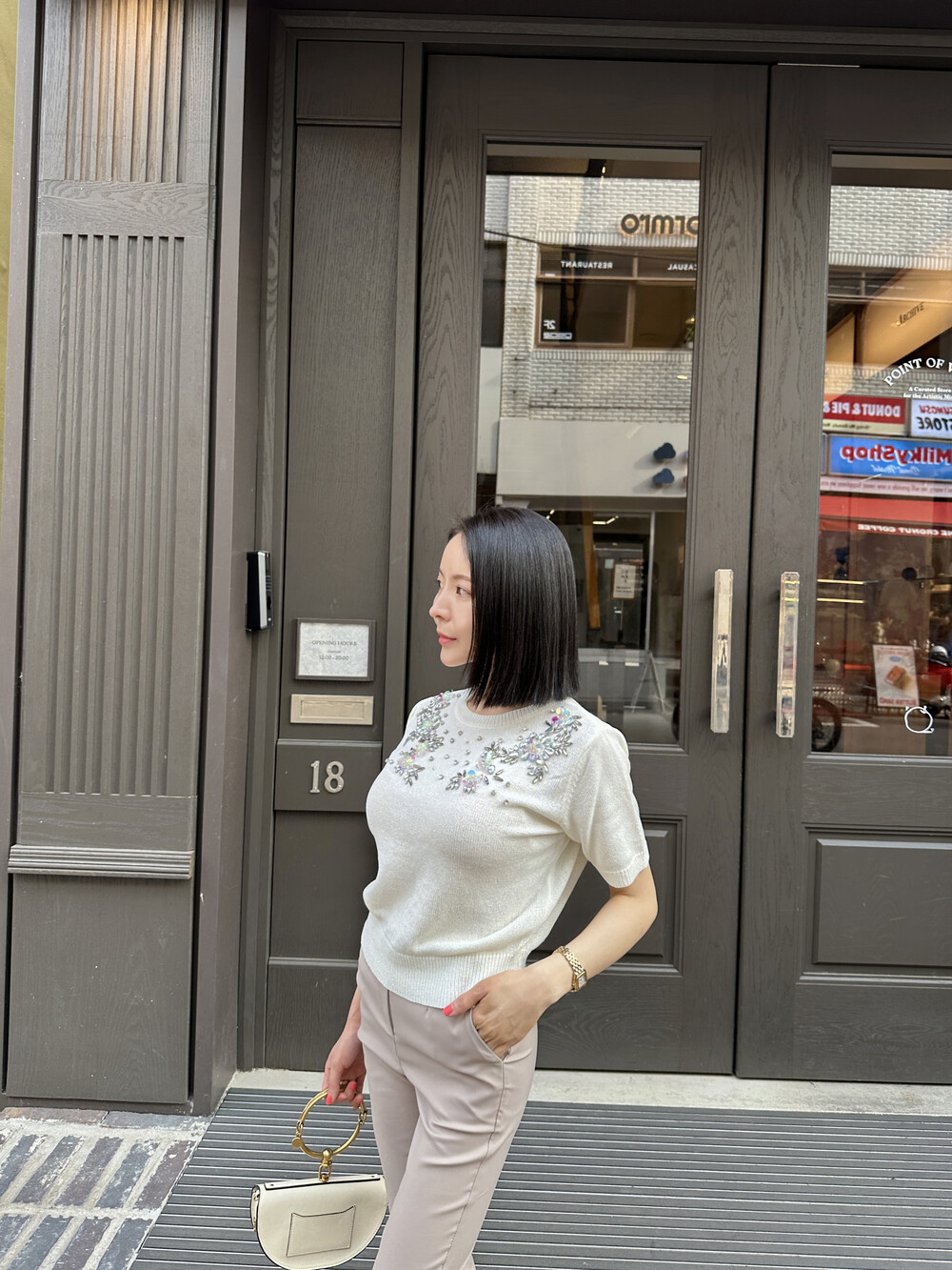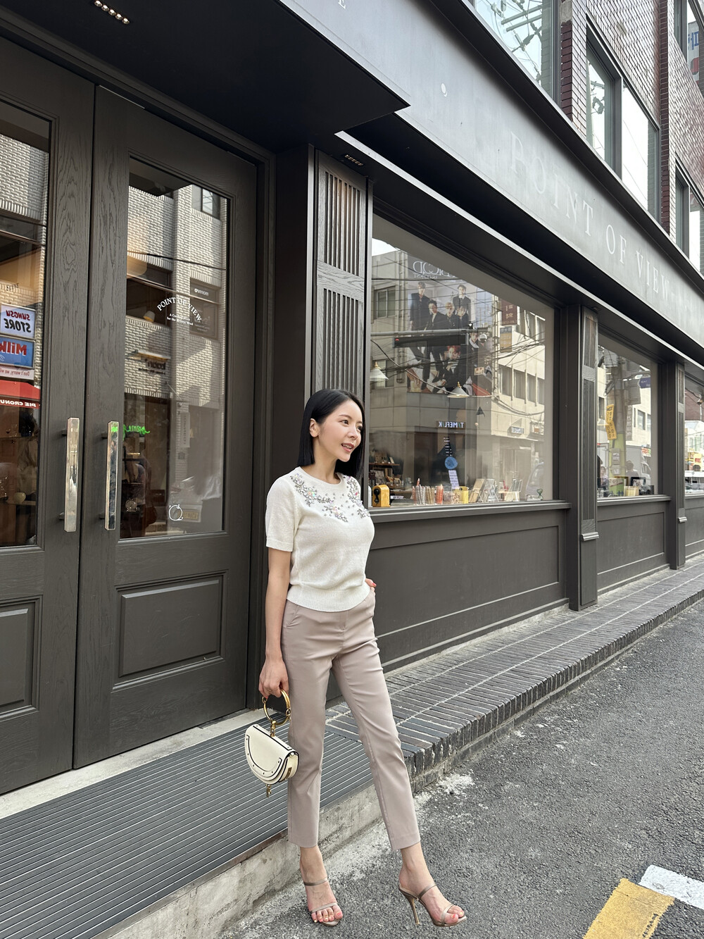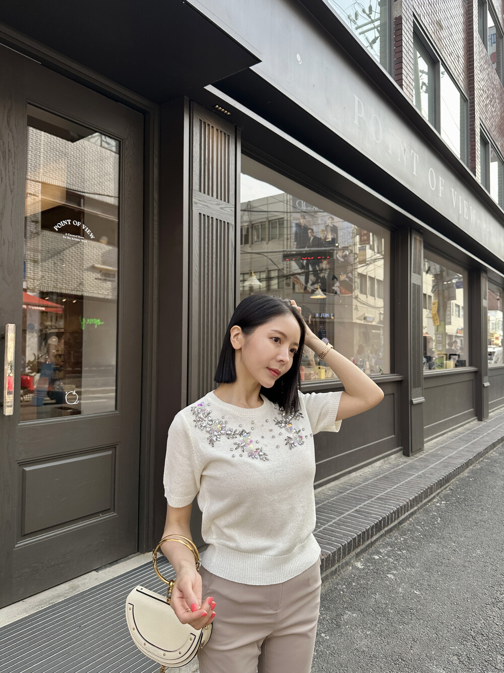 기본 팬츠나 스커트에 크리스탈 니트만 단독으로 입어도