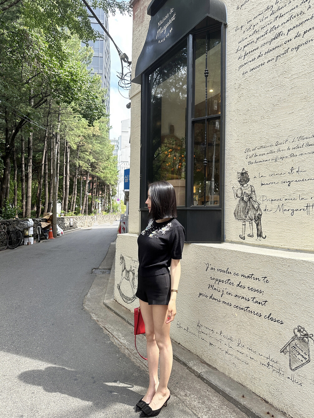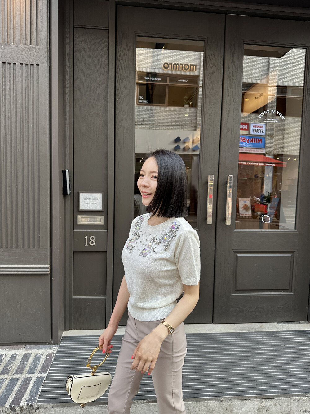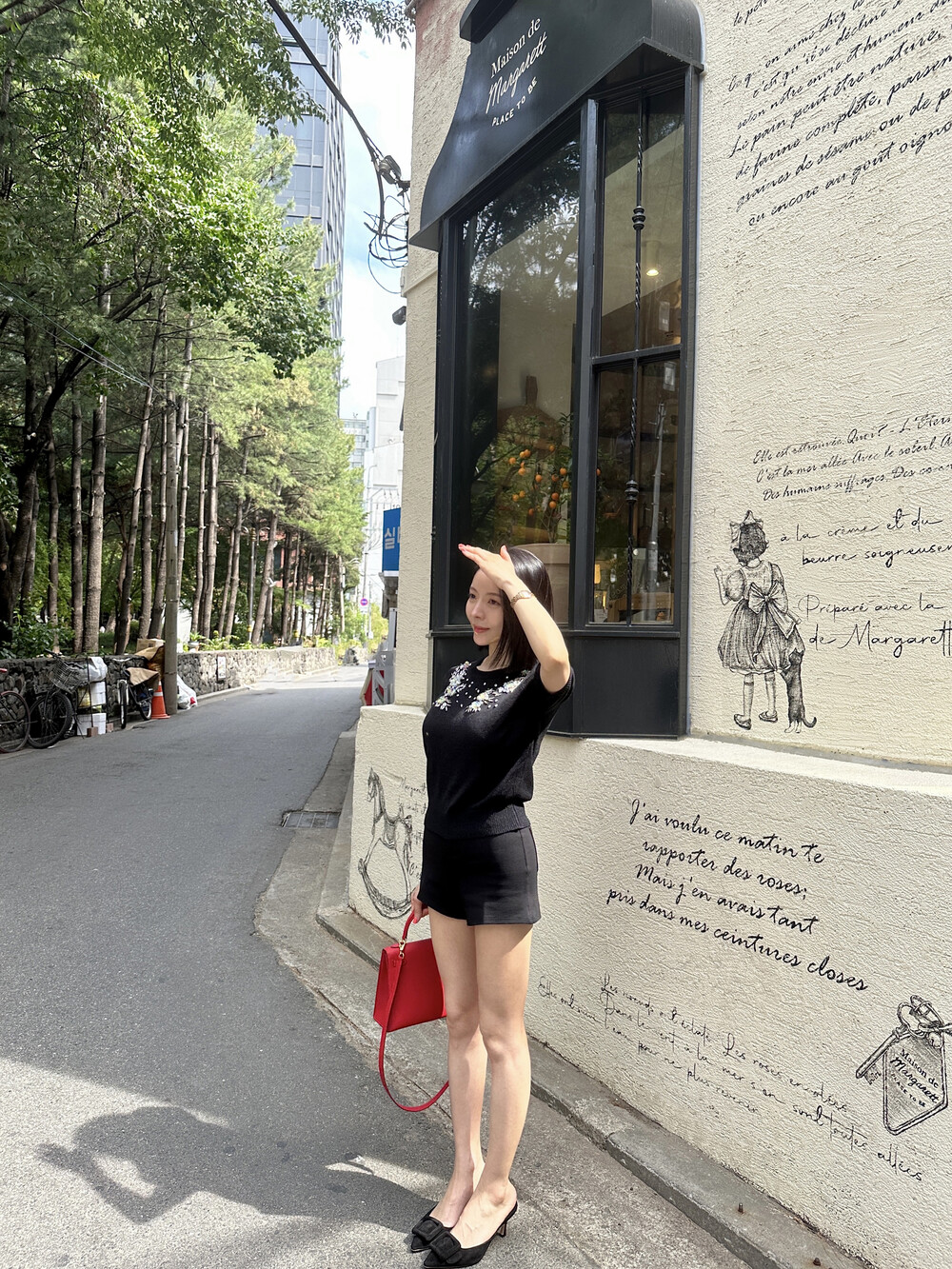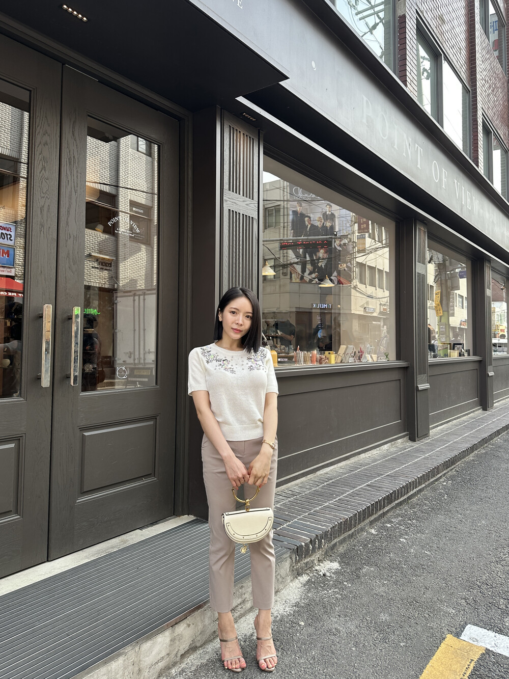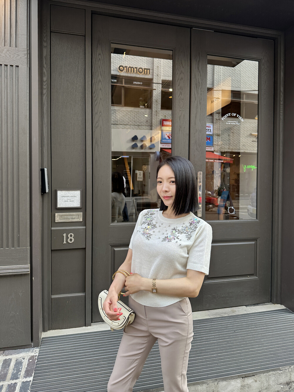 기본 팬츠나 스커트에 크리스탈 니트만 단독으로 입어도