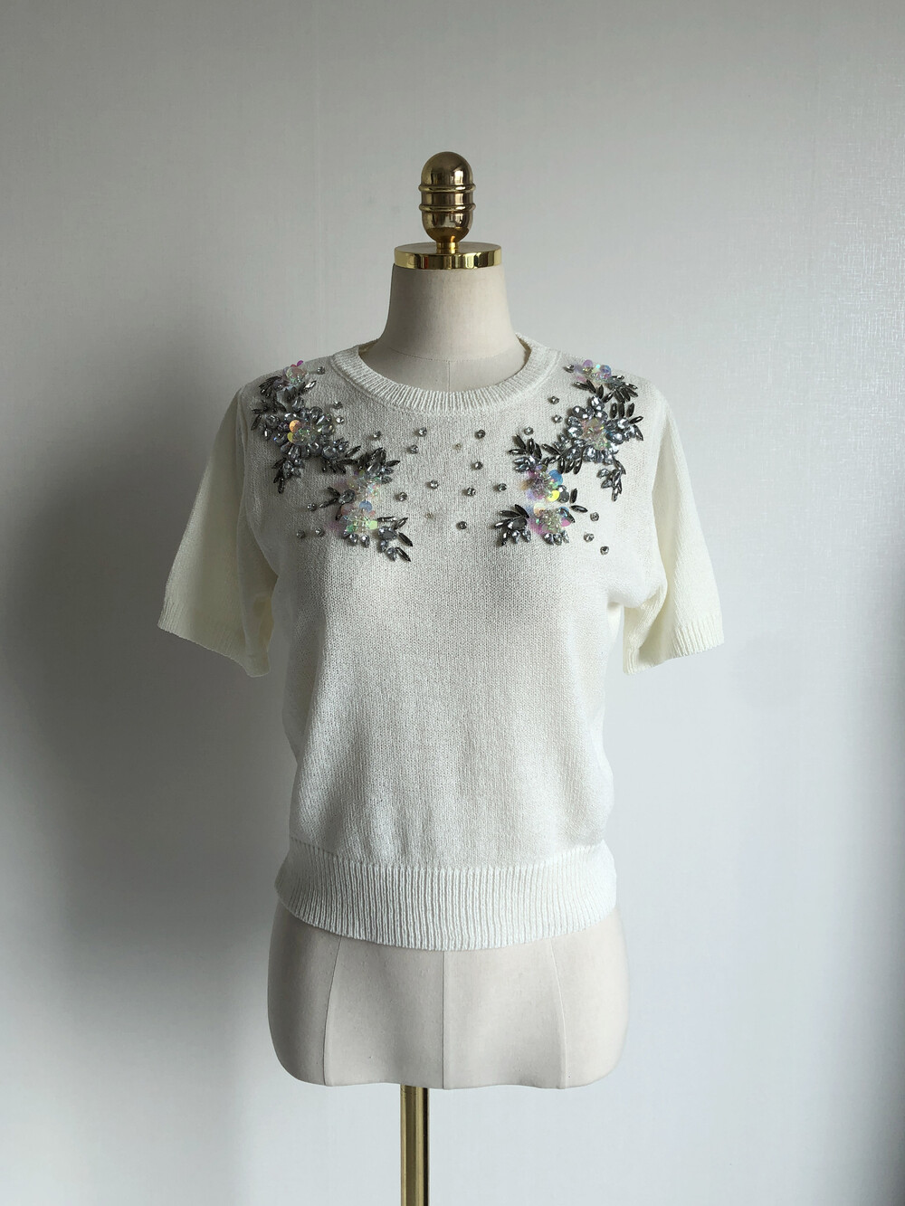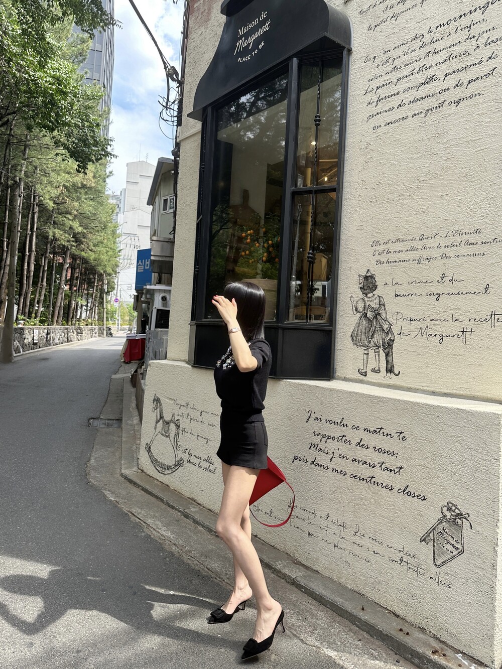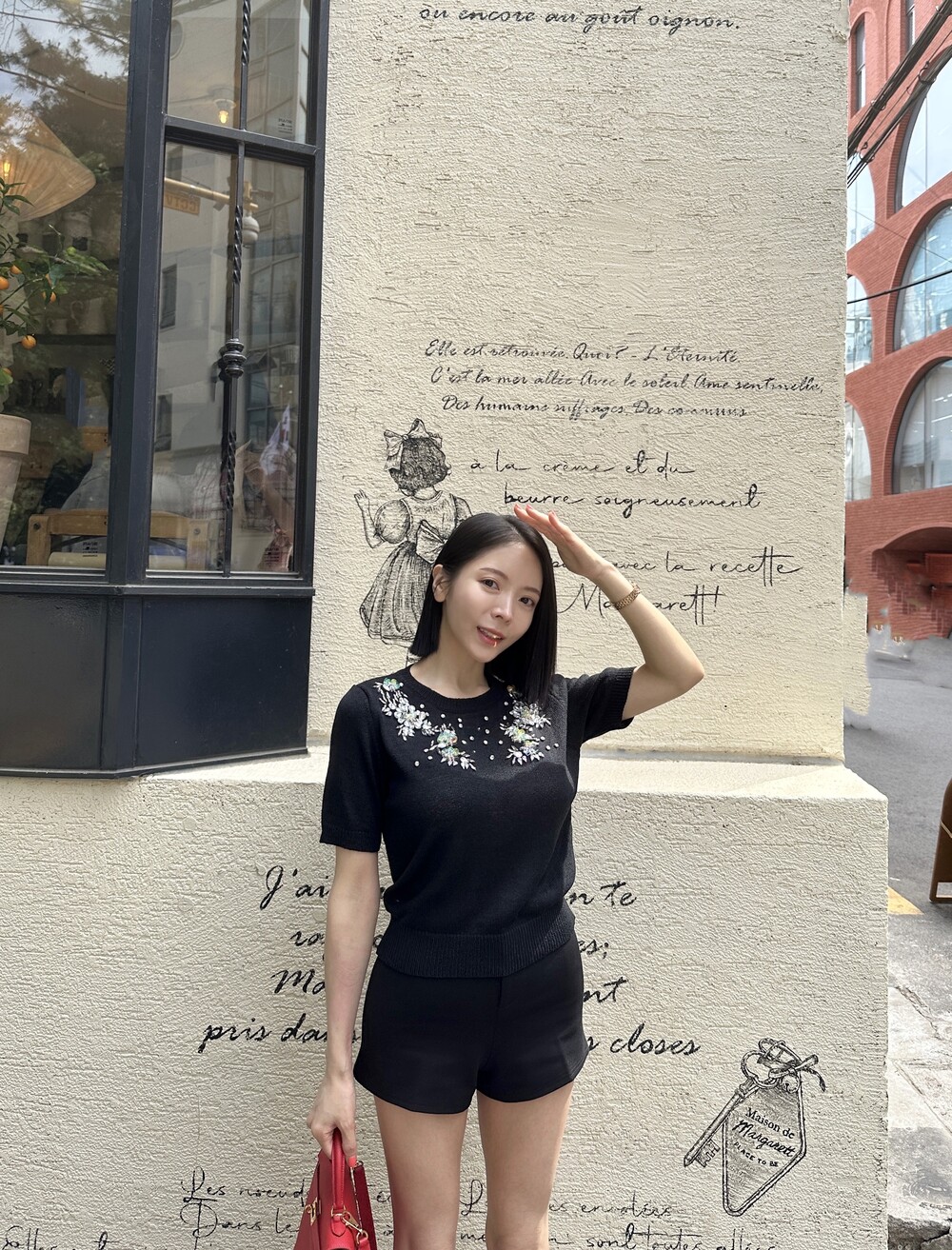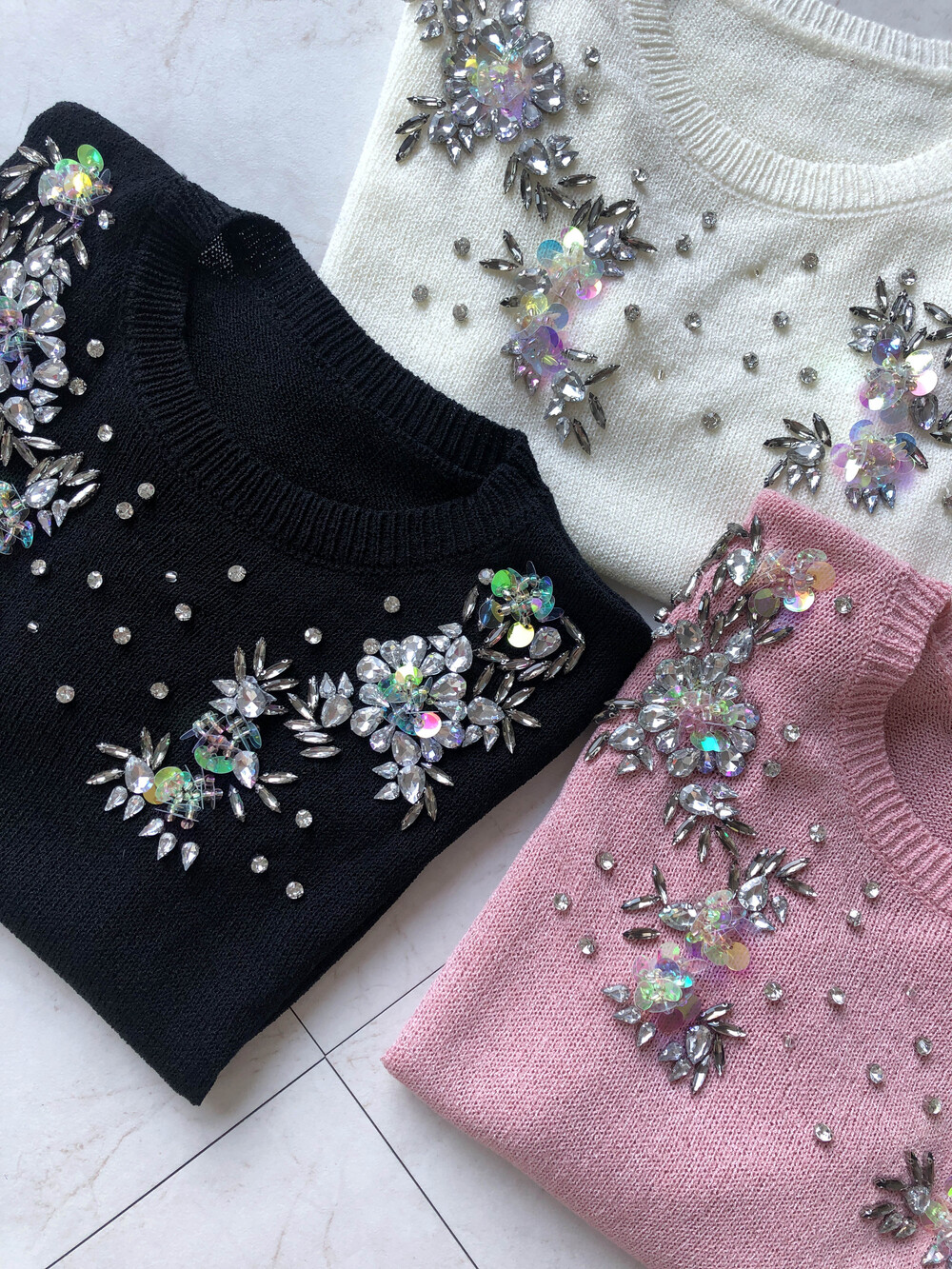 기본 팬츠나 스커트에 크리스탈 니트만 단독으로 입어도