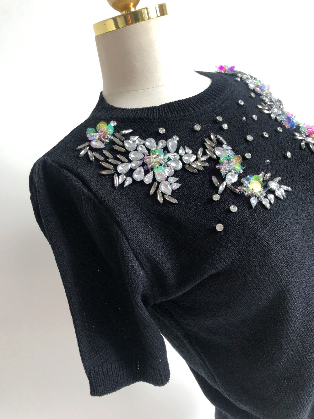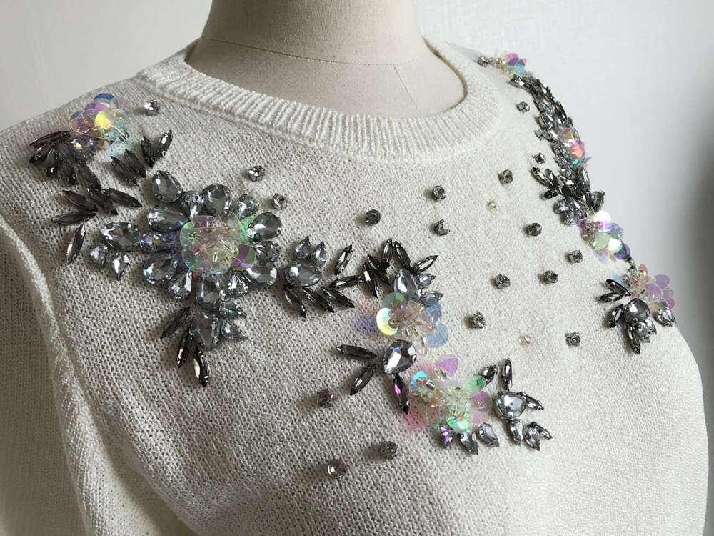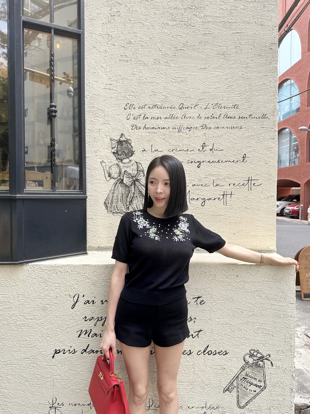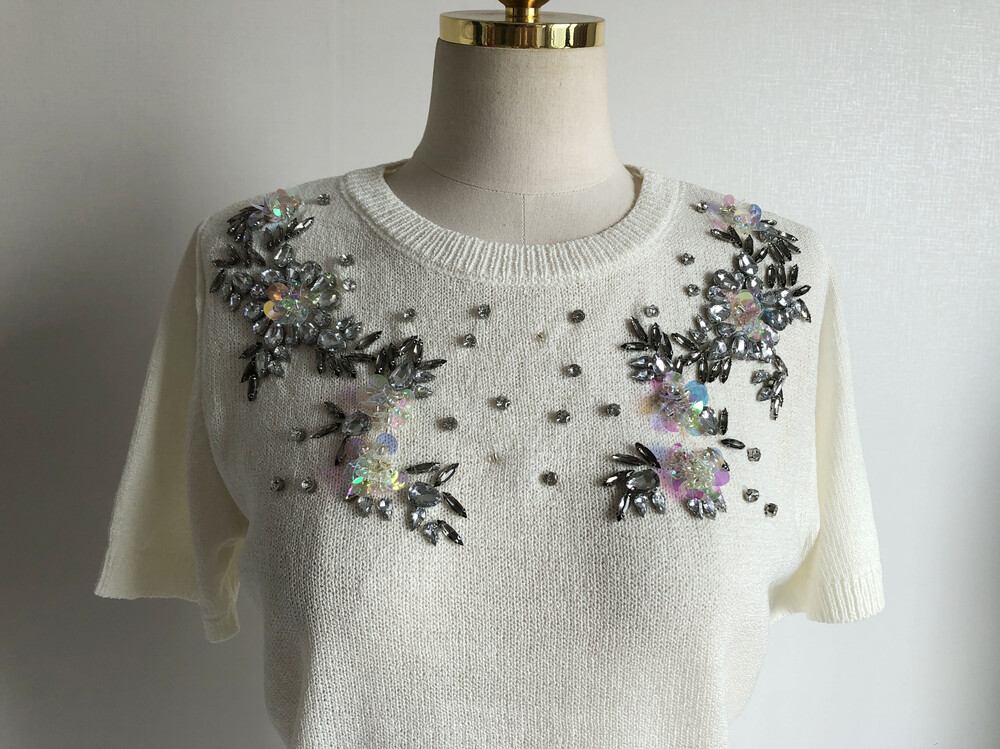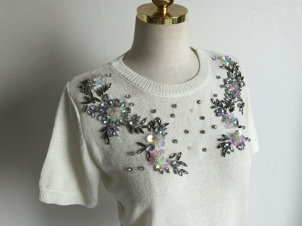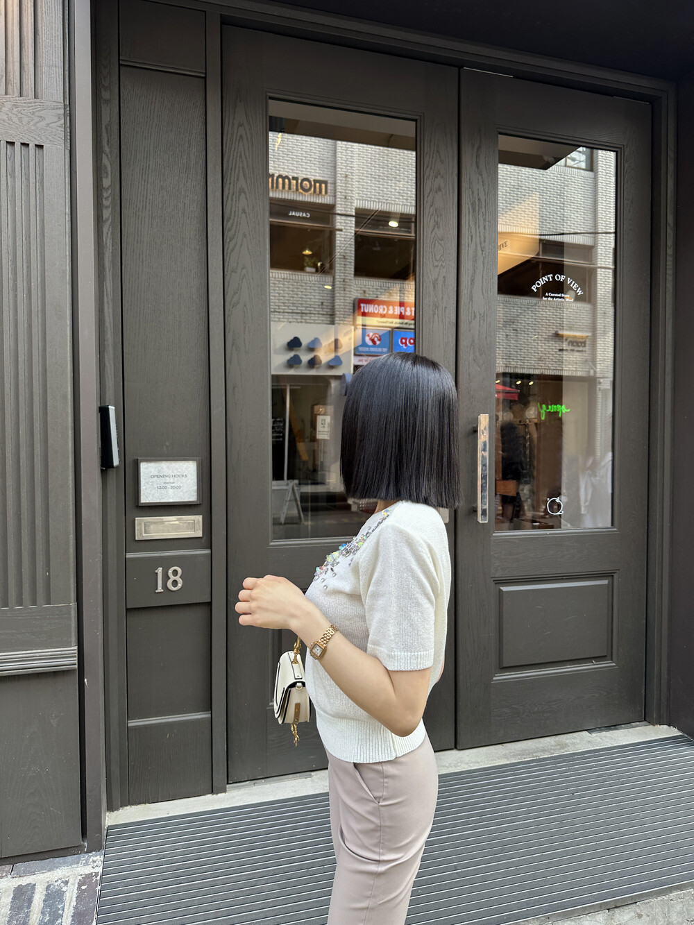 기본 팬츠나 스커트에 크리스탈 니트만 단독으로 입어도