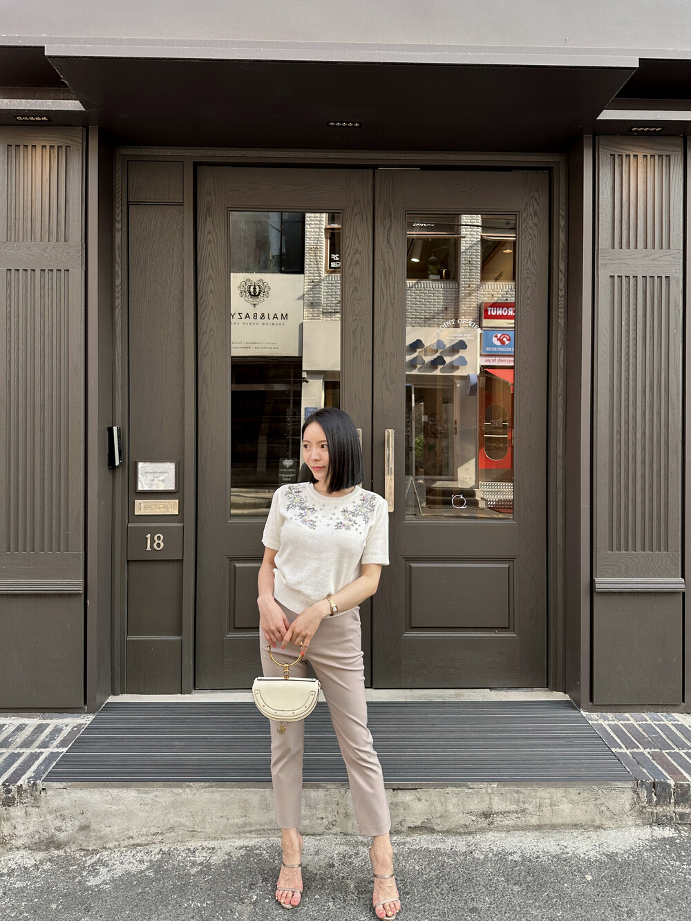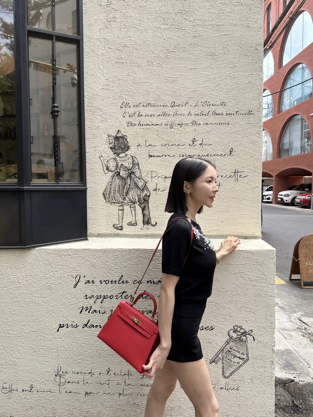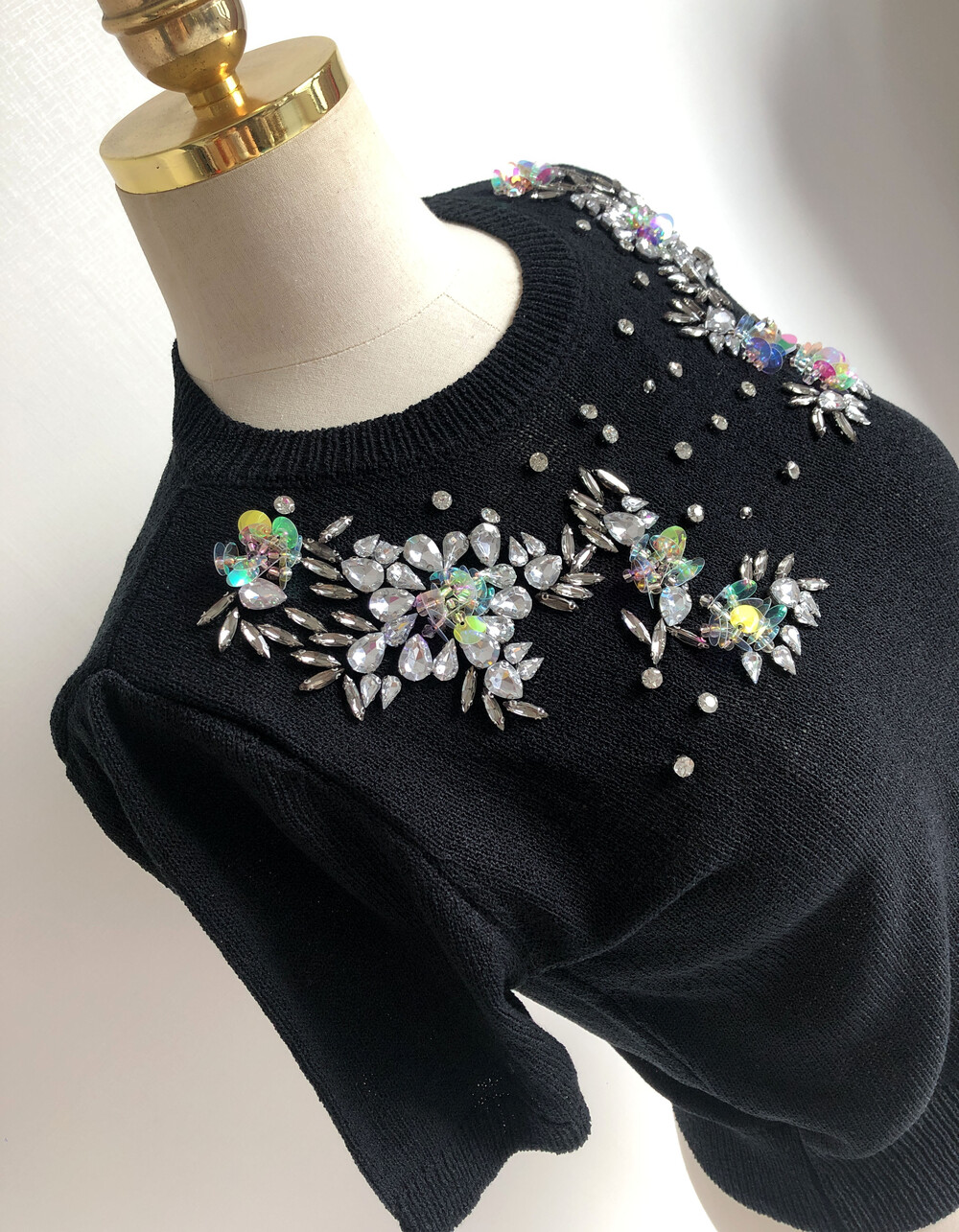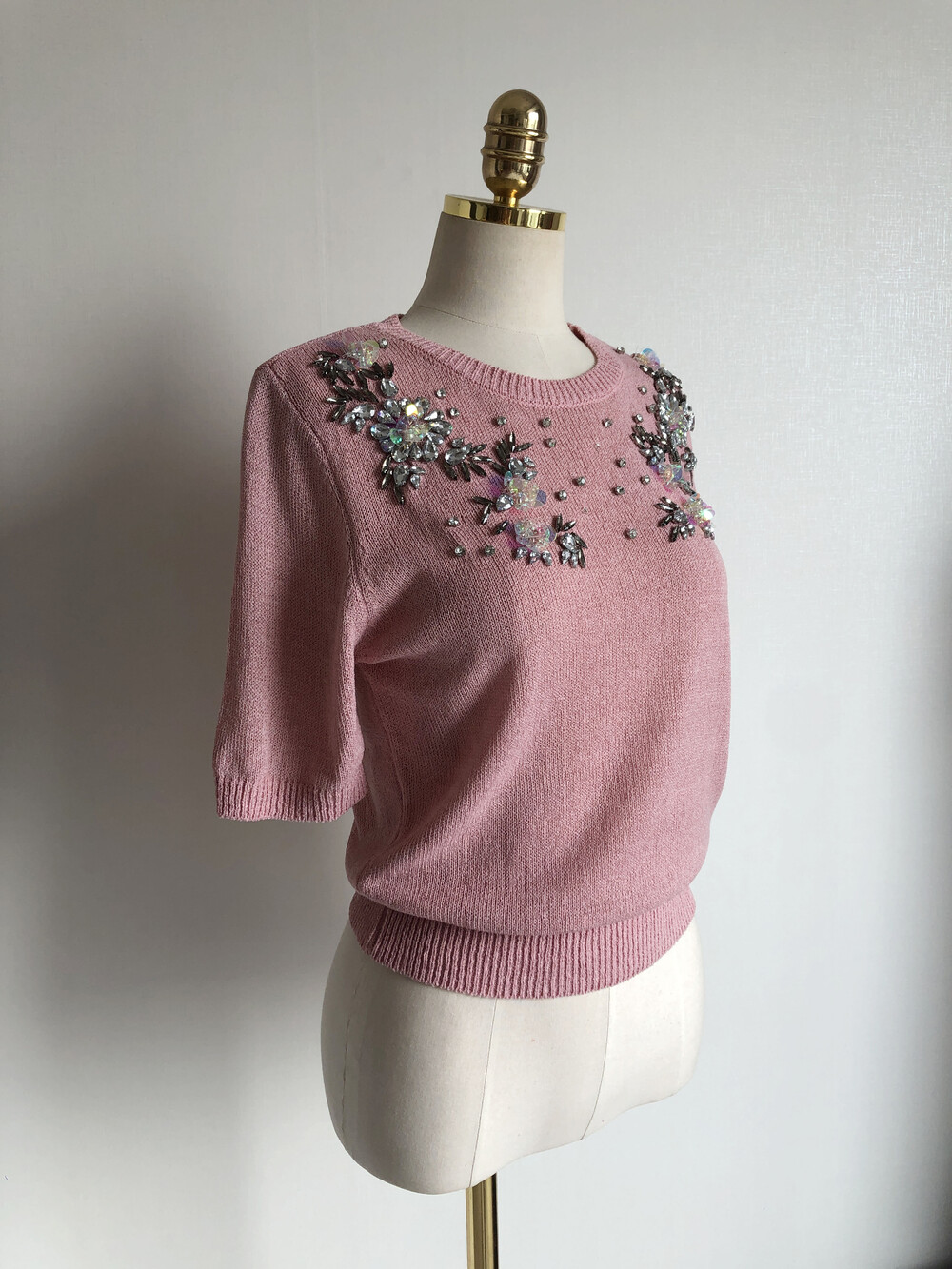 기본 팬츠나 스커트에 크리스탈 니트만 단독으로 입어도
