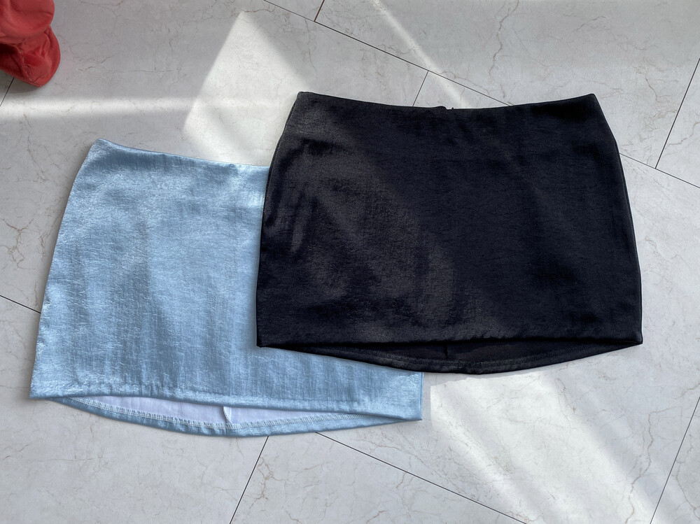 은은한 광택이 흐르는 고급 새틴 소재의 스커트입니다
