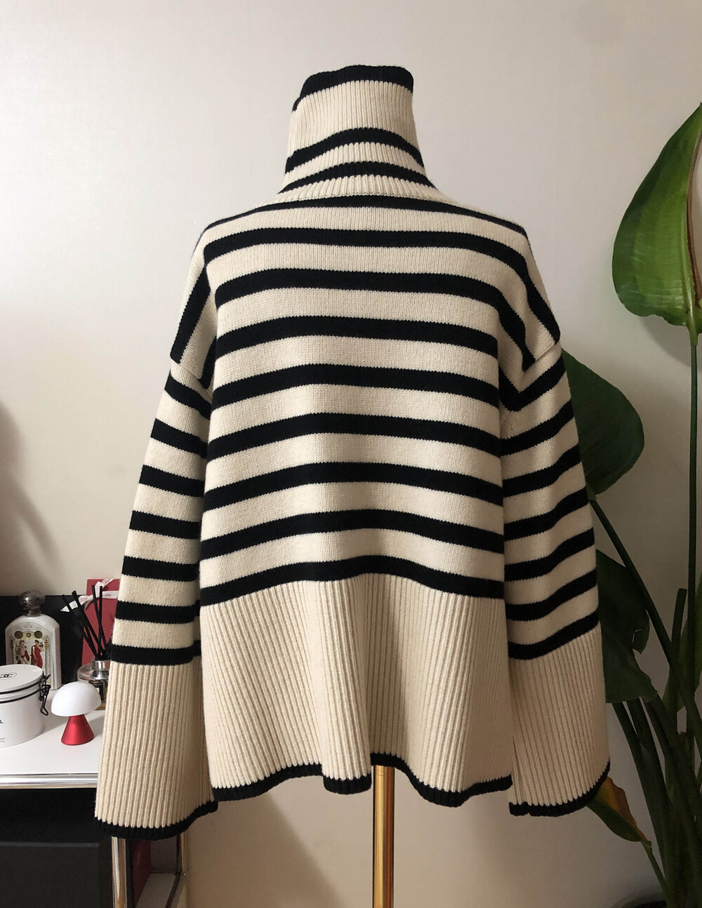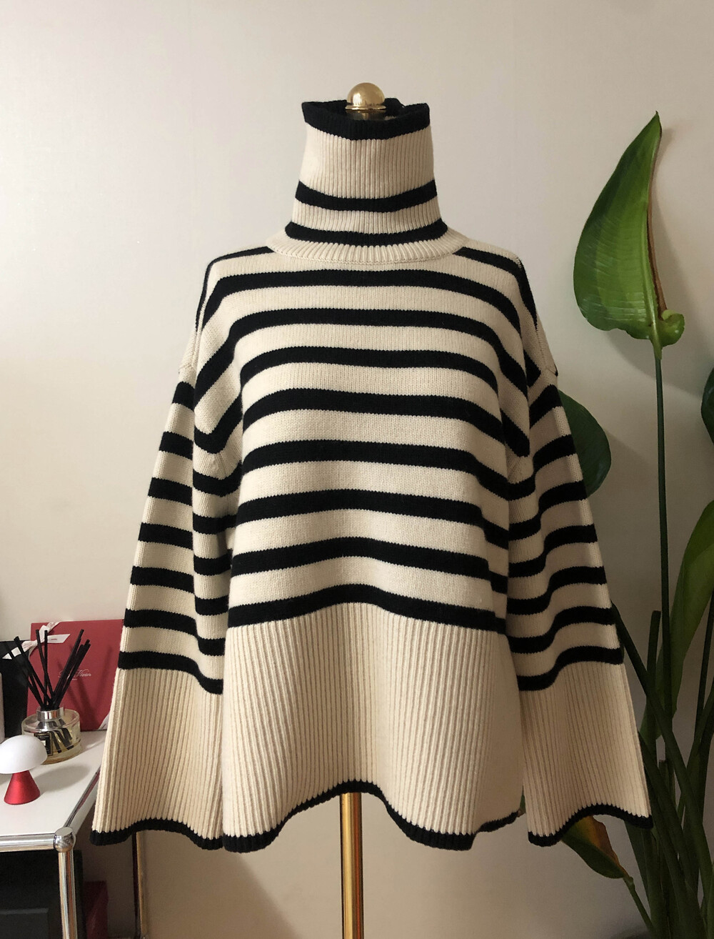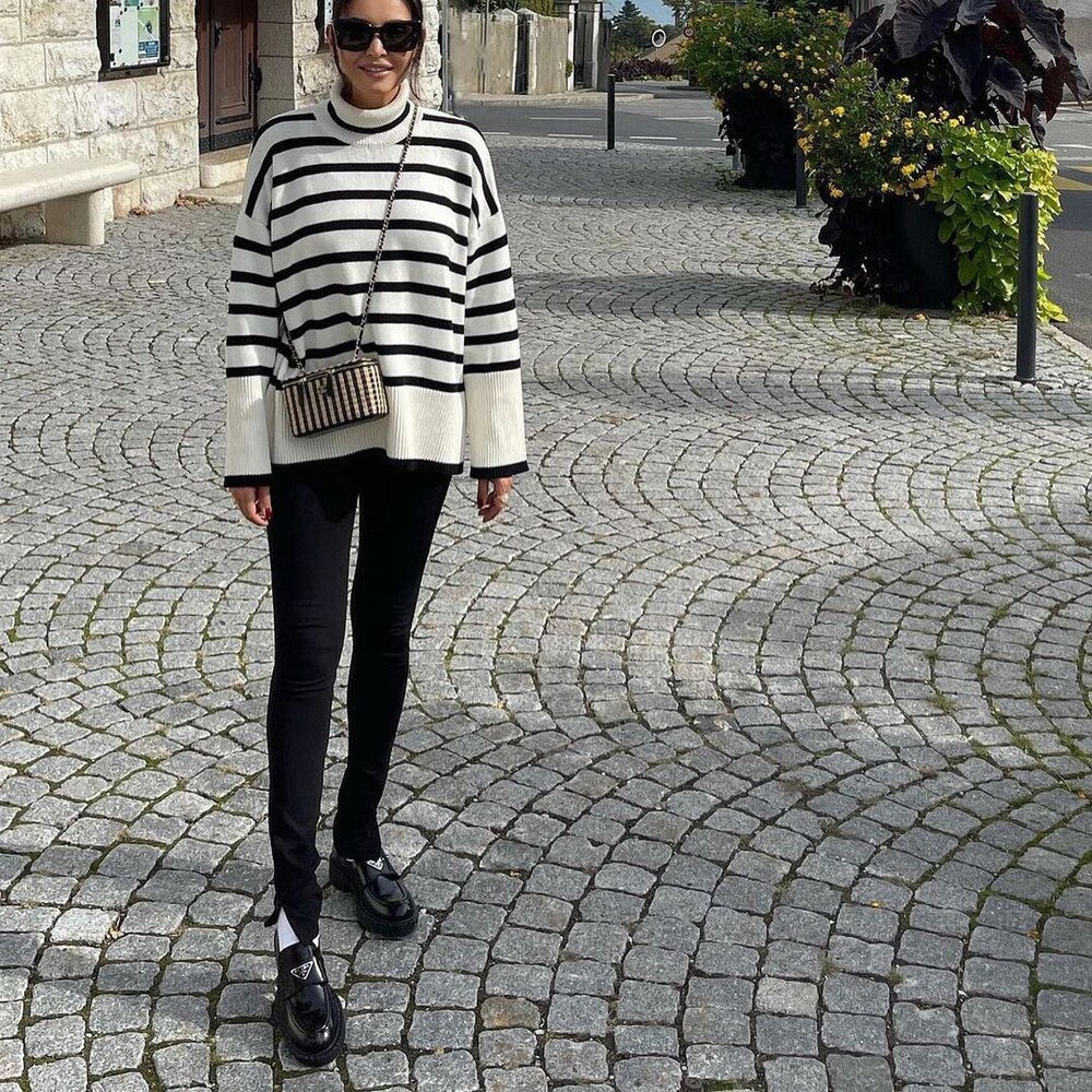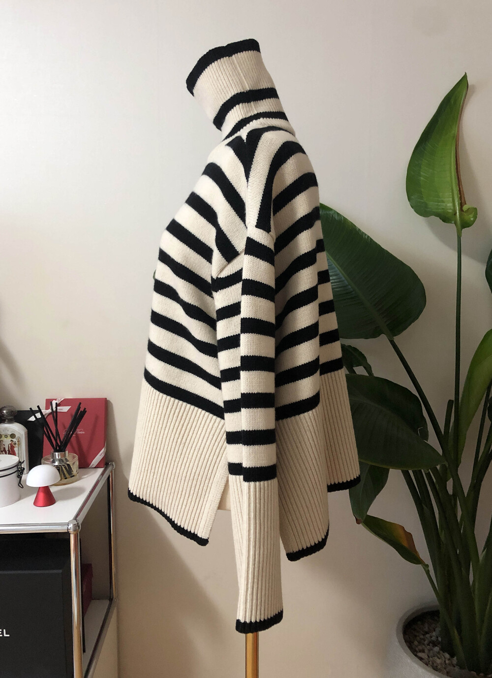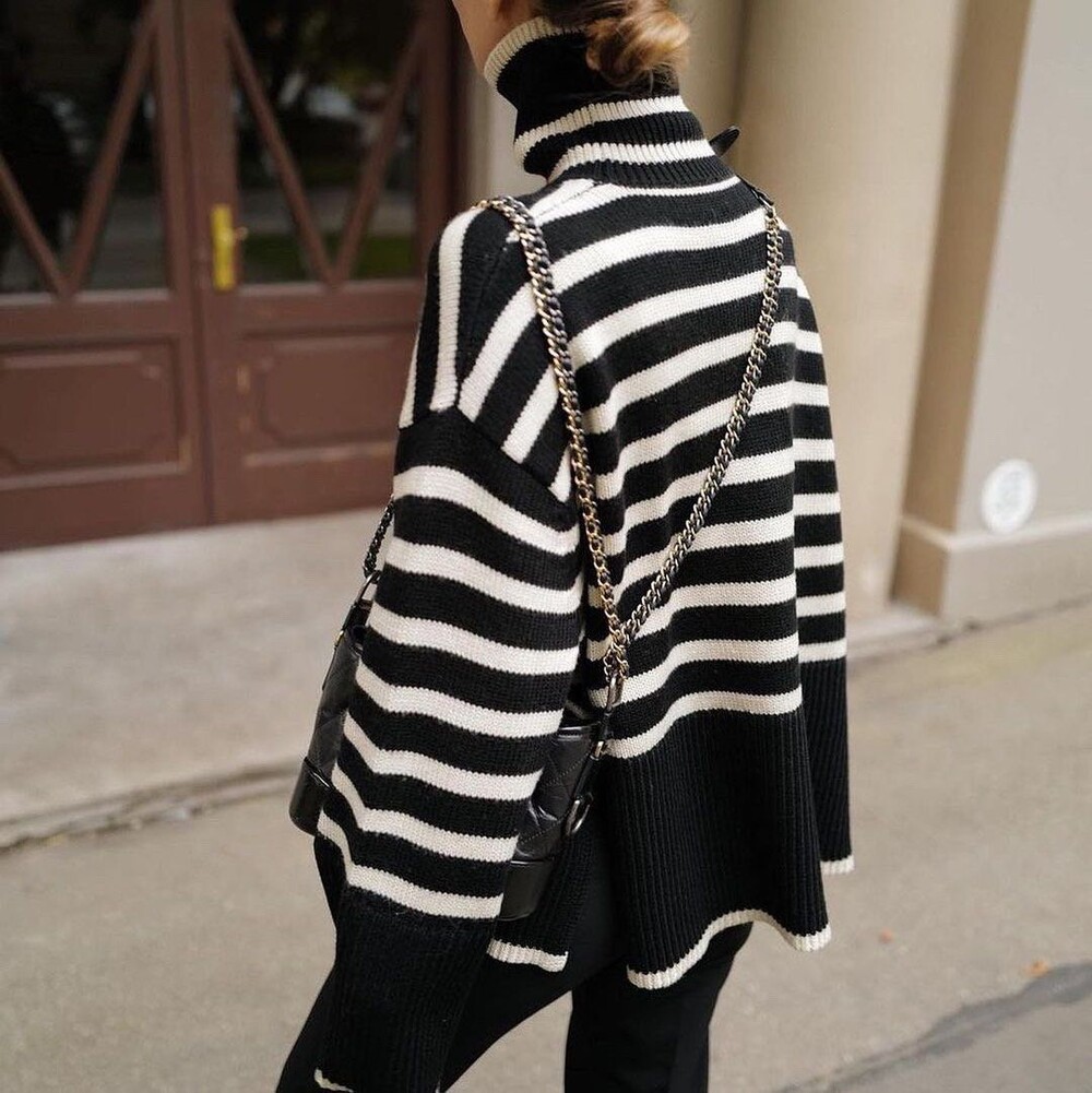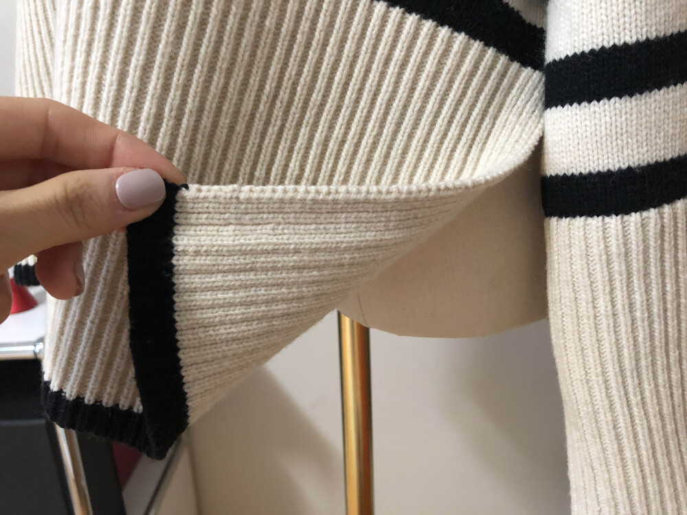 무심한듯 시크한 무드가 느껴지는 스트라이프 터틀넥니트입니다