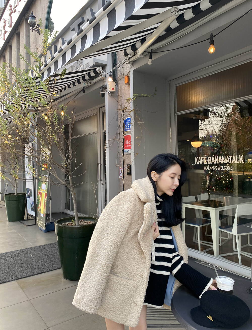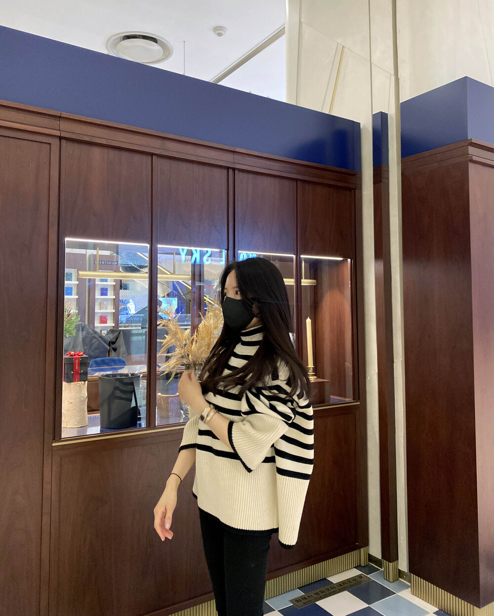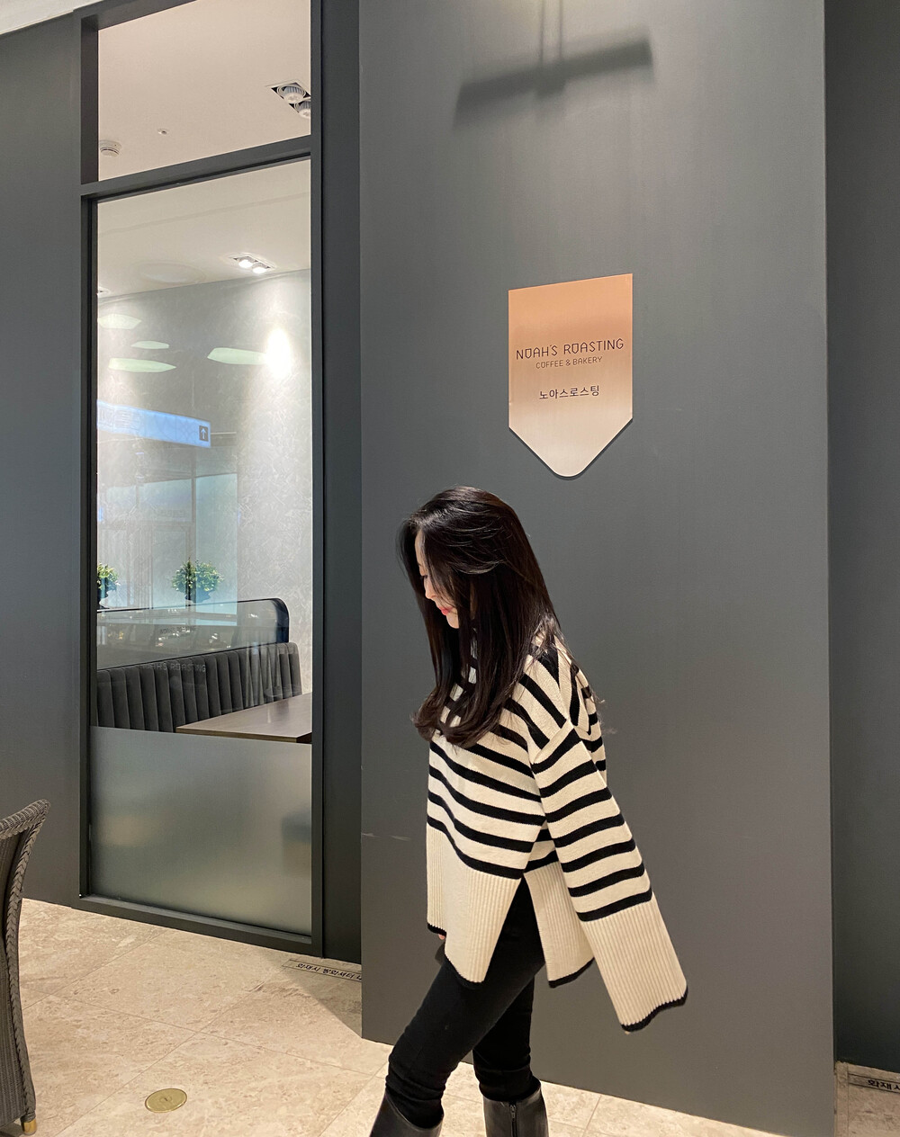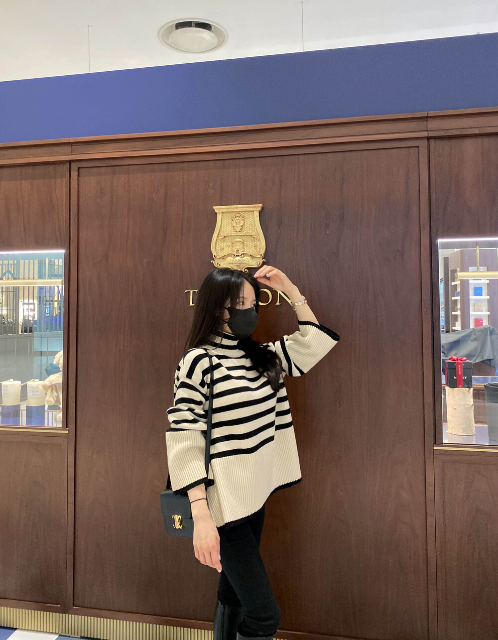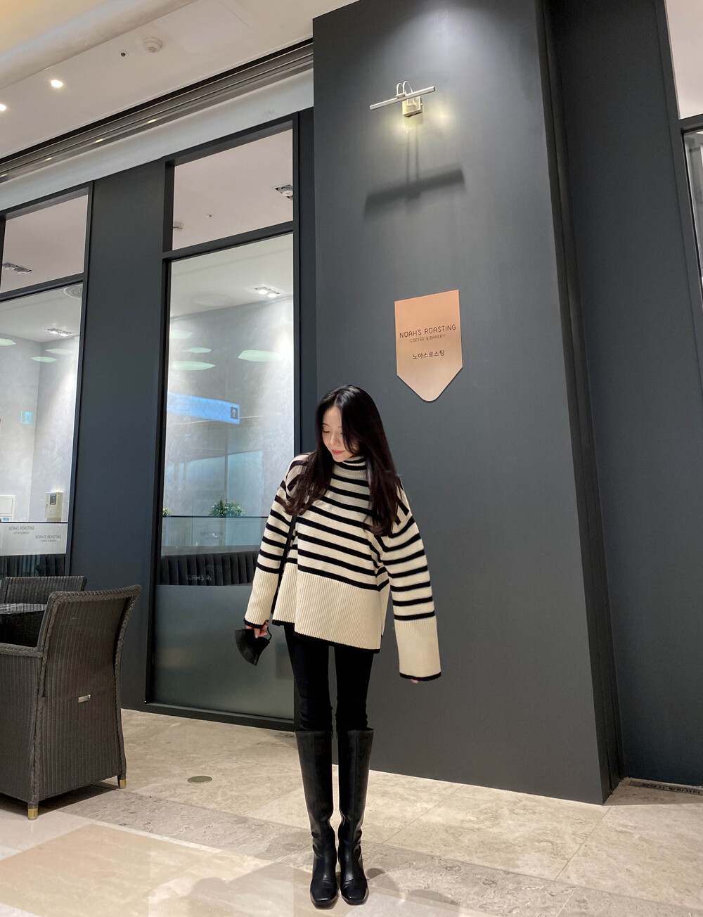 무심한듯 시크한 무드가 느껴지는 스트라이프 터틀넥니트입니다