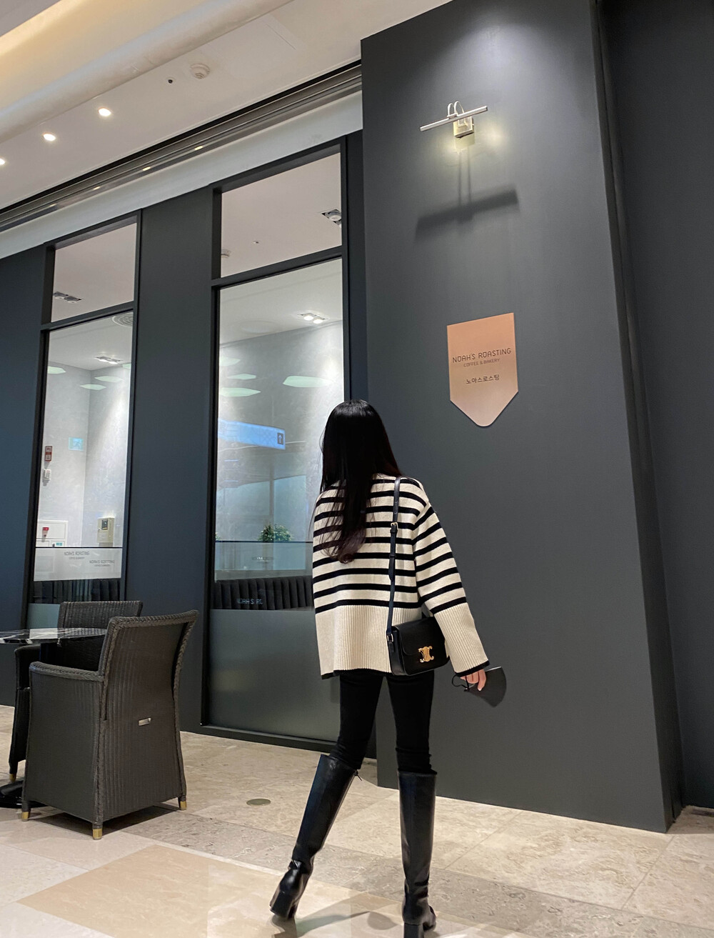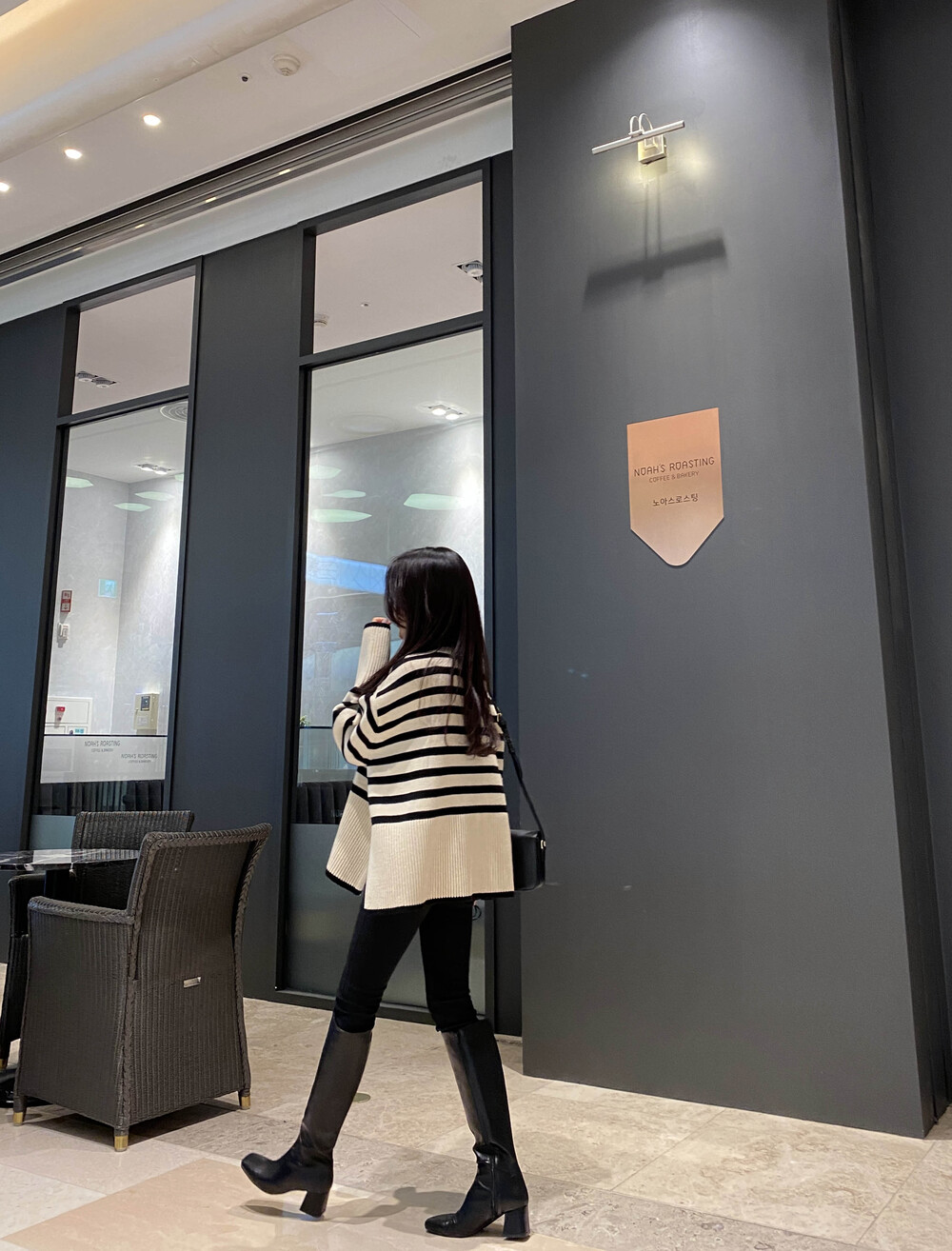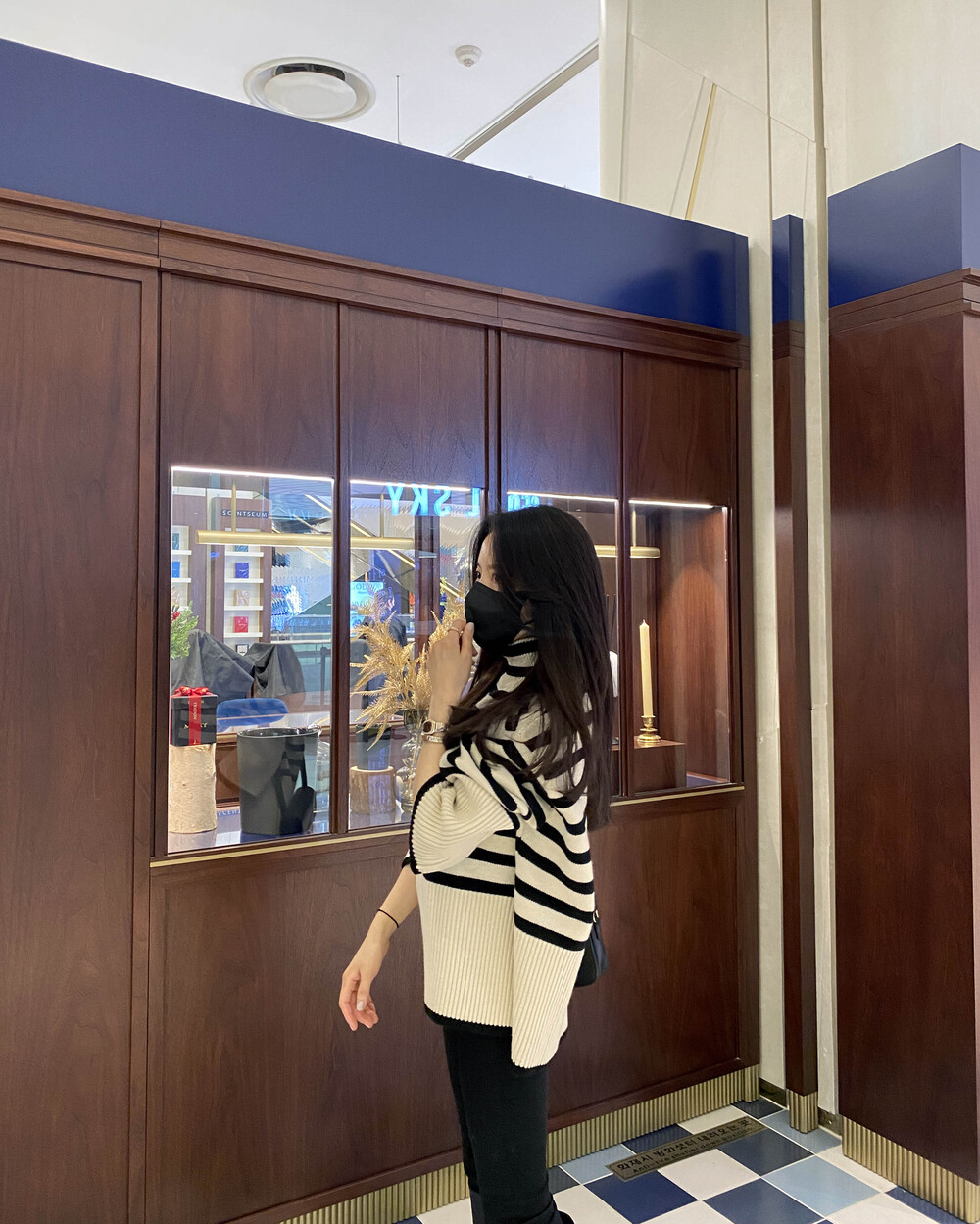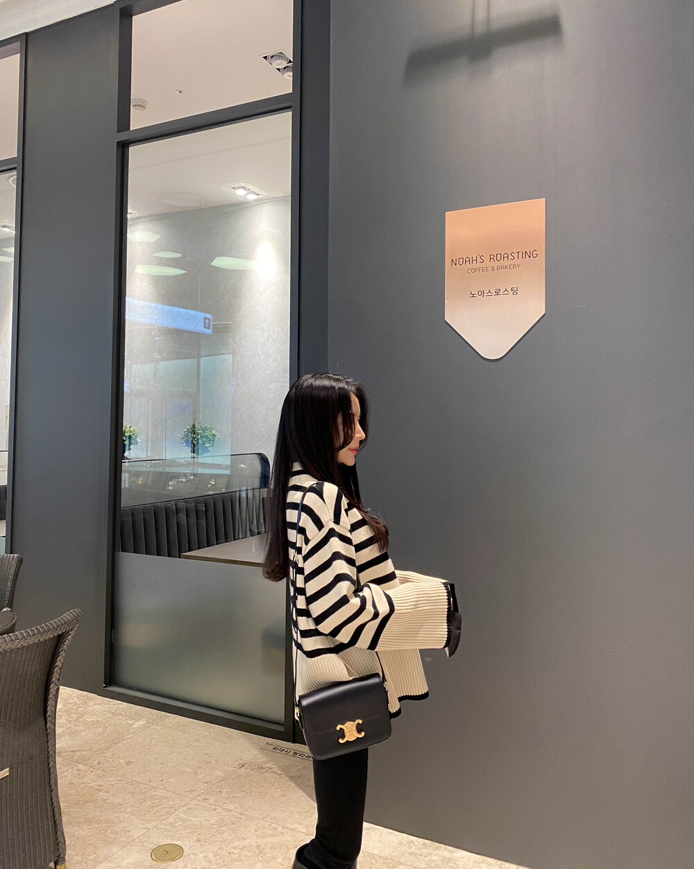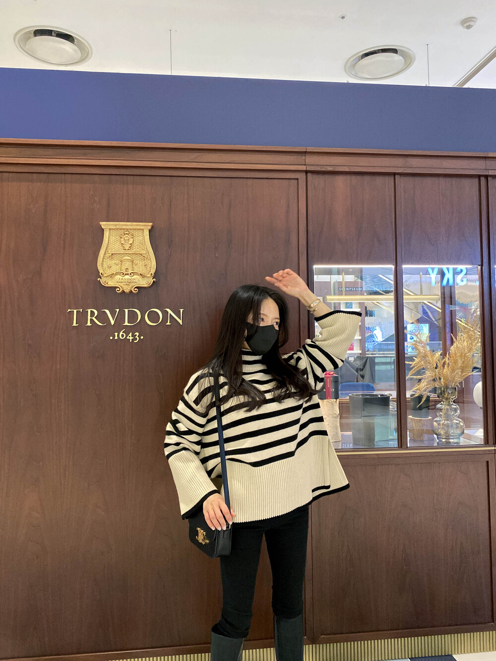 무심한듯 시크한 무드가 느껴지는 스트라이프 터틀넥니트입니다