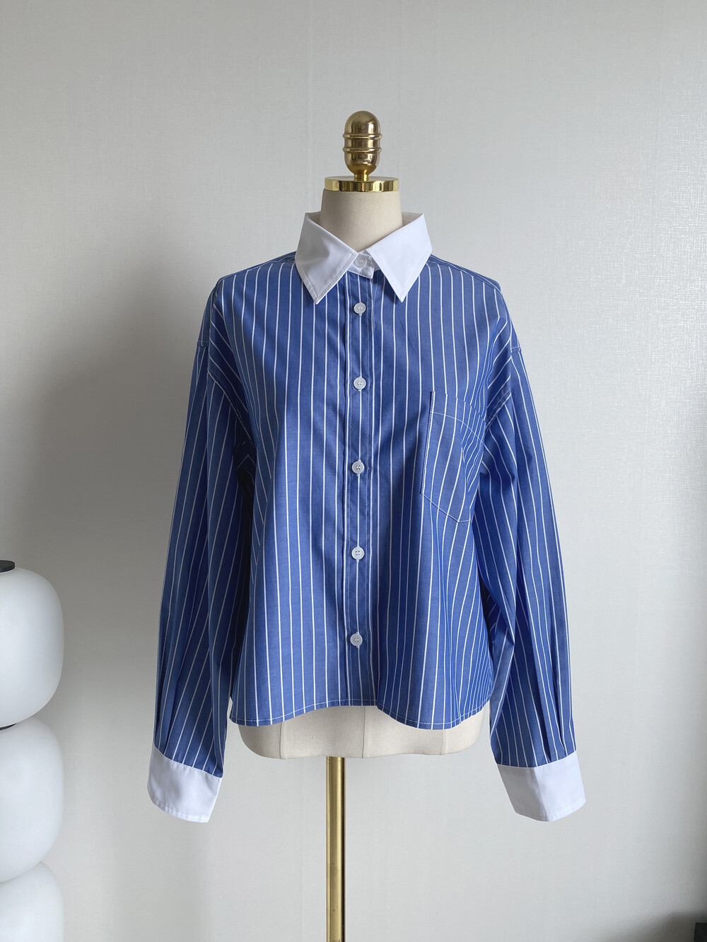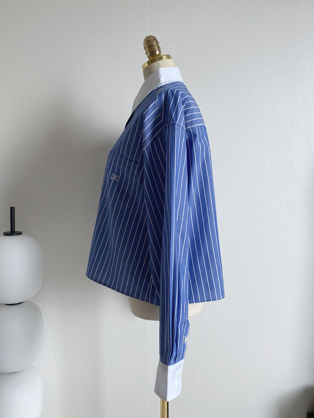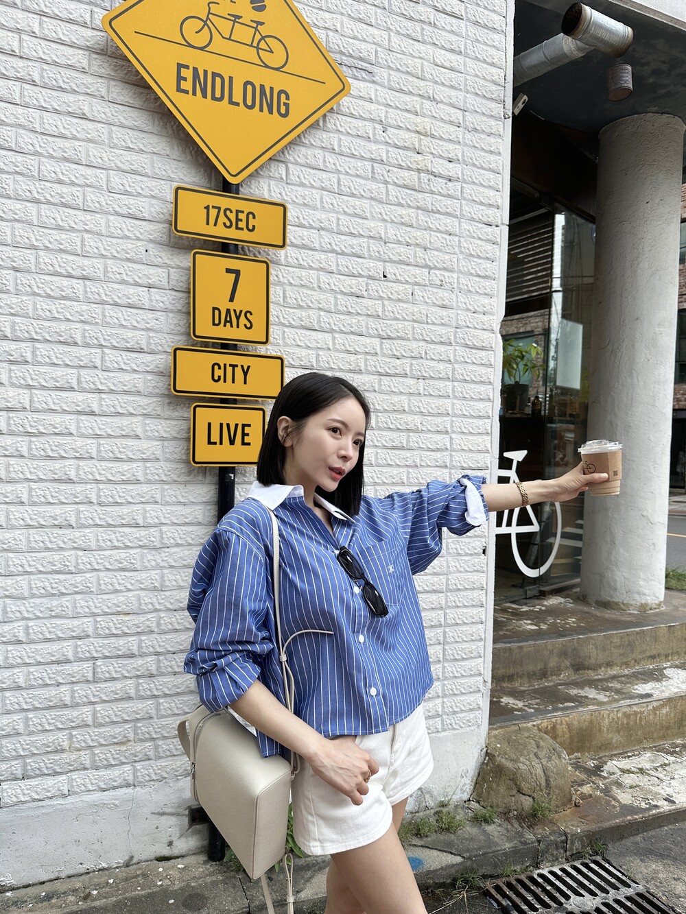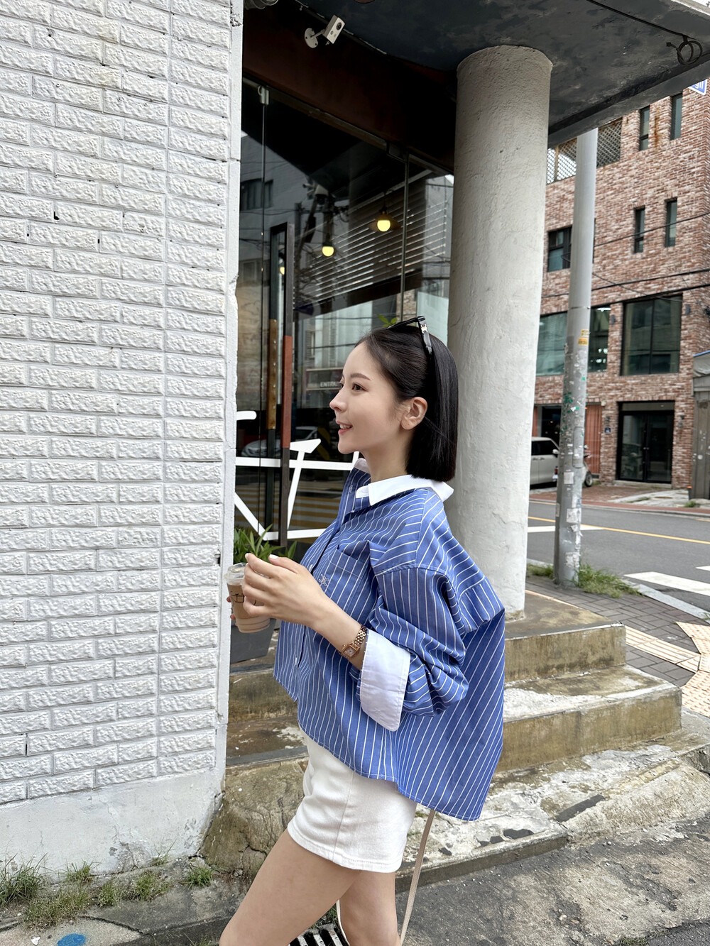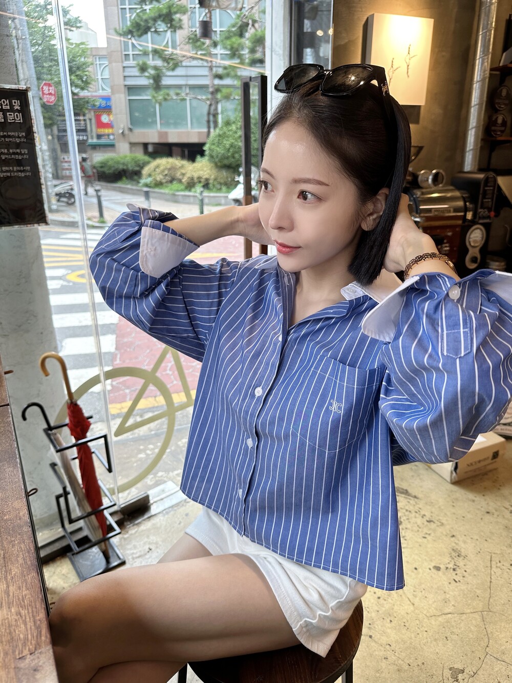 크롭한 기장감의 세련된 스트라이프 셔츠를 보여드릴게요