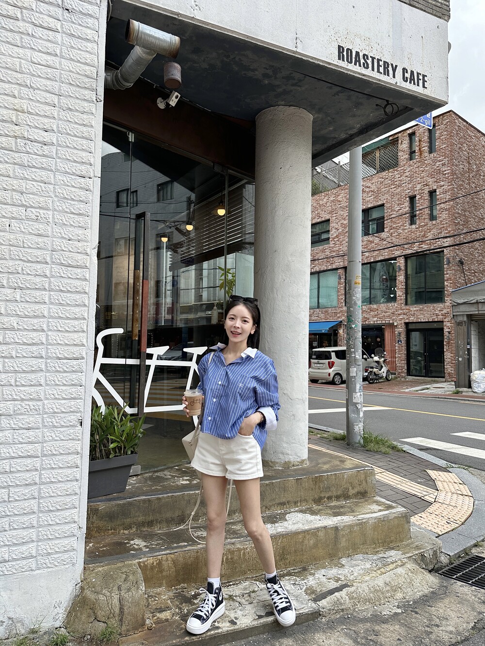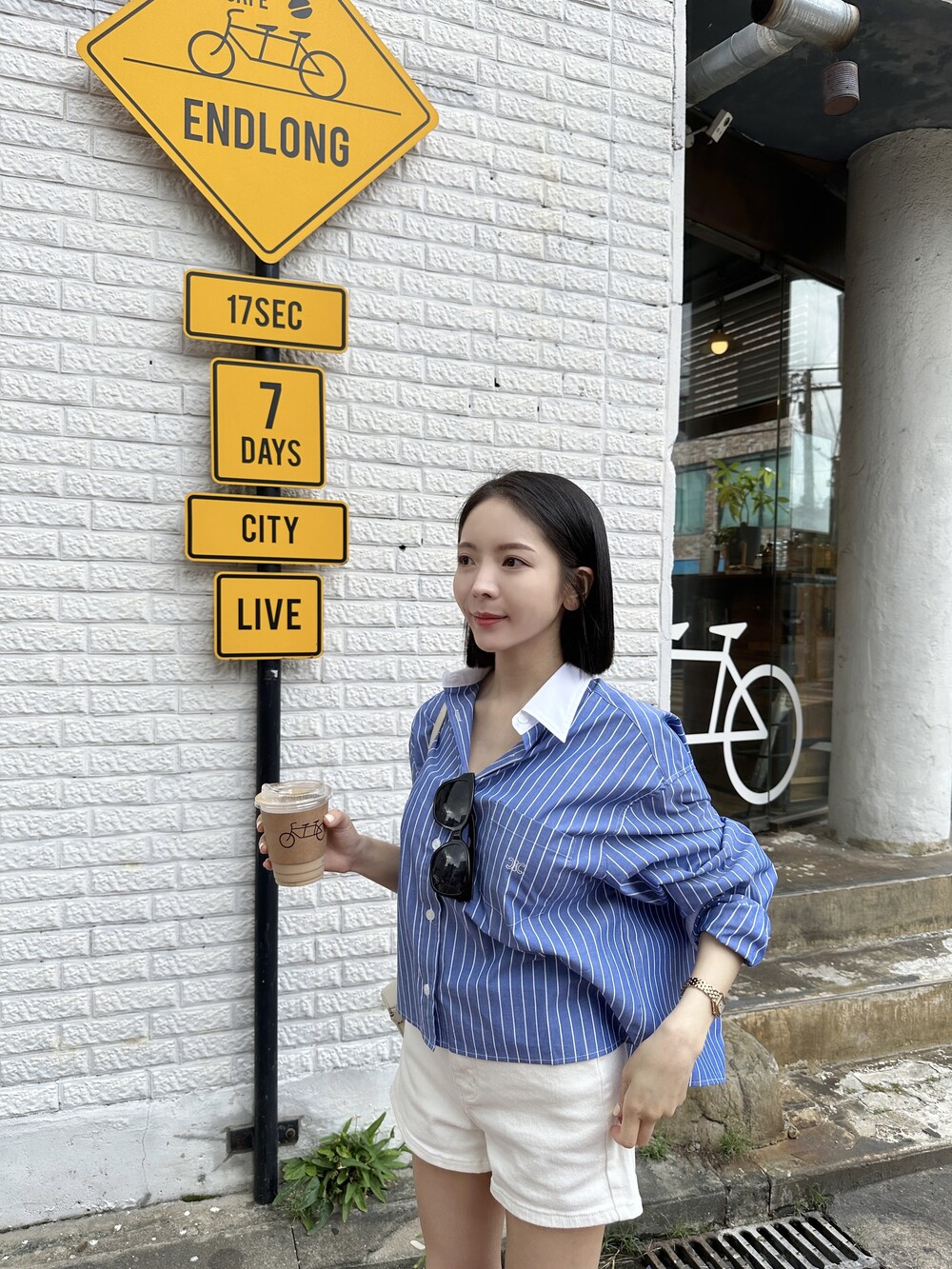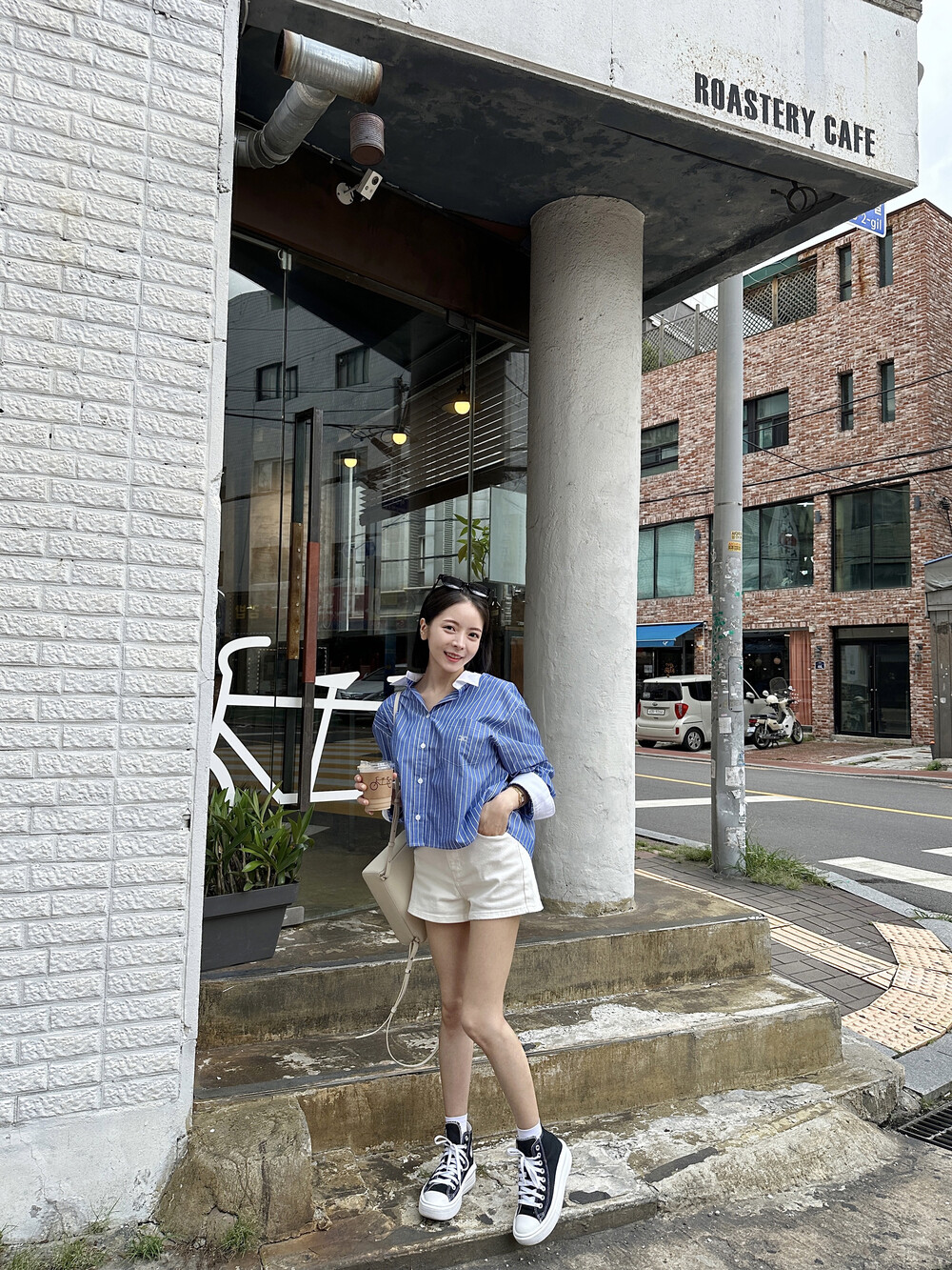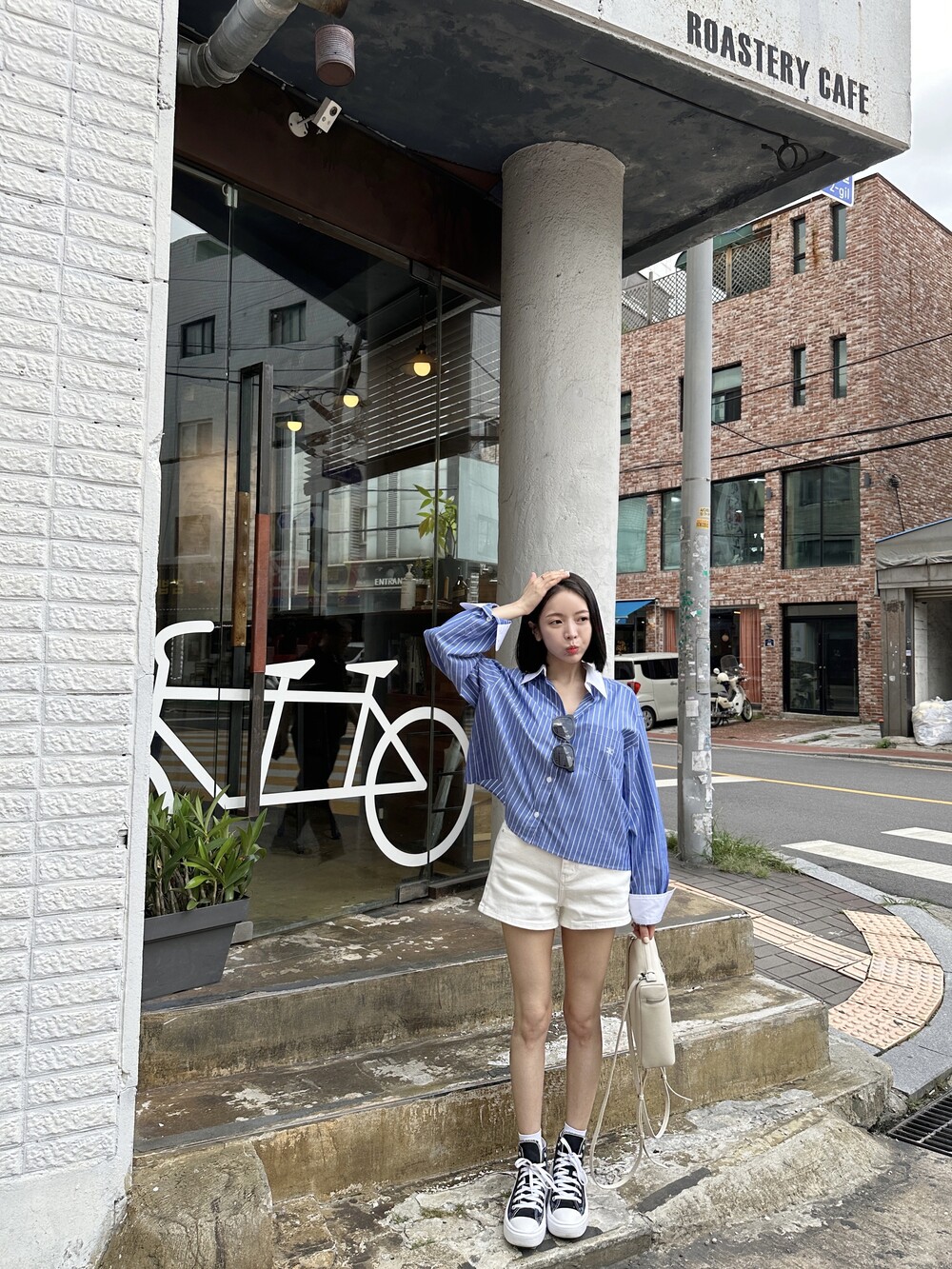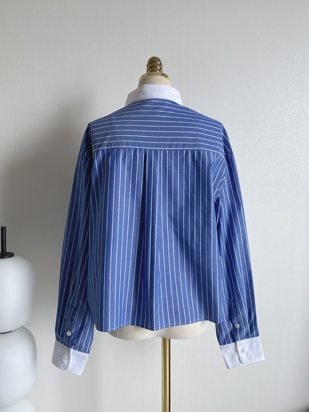 크롭한 기장감의 세련된 스트라이프 셔츠를 보여드릴게요