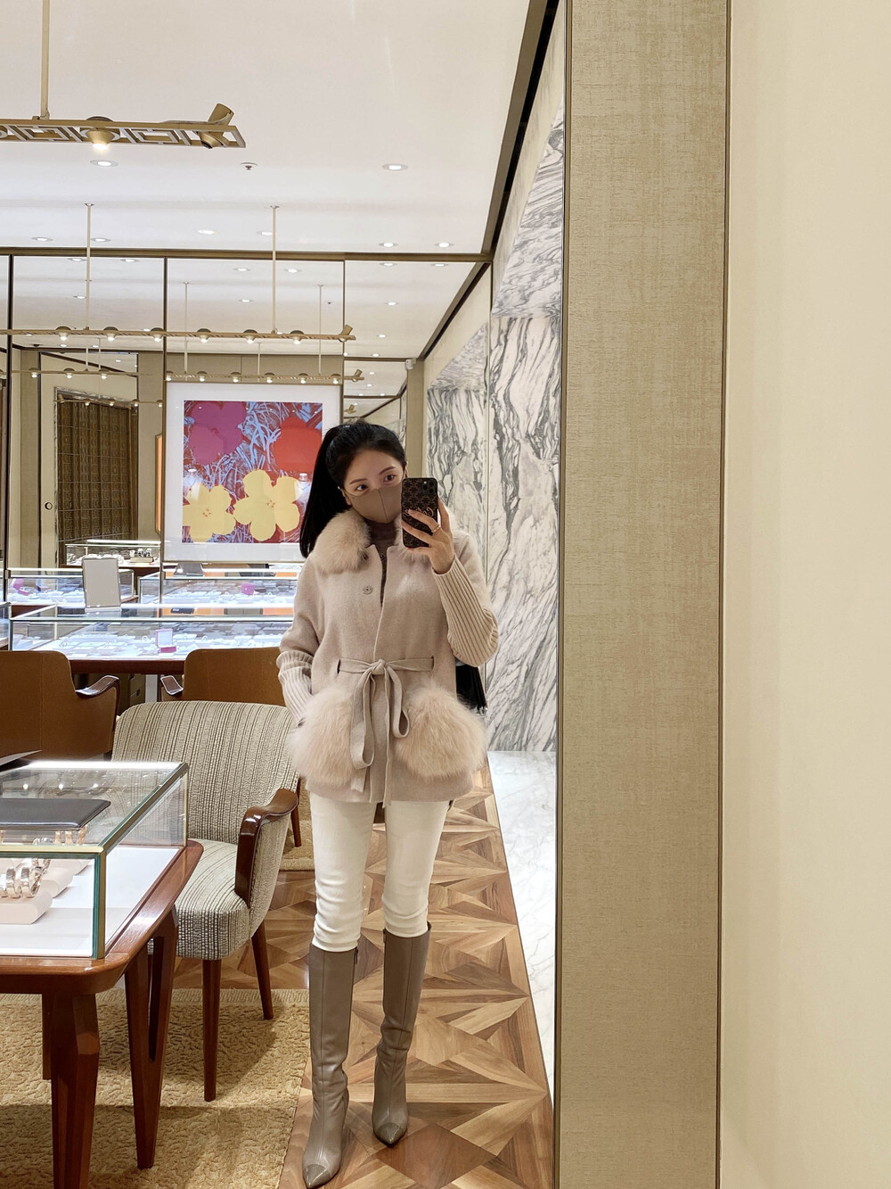 카라, 포켓부분에 리얼 폭스가 달려있어 더욱 고급스러운 느낌을 전해주어요
