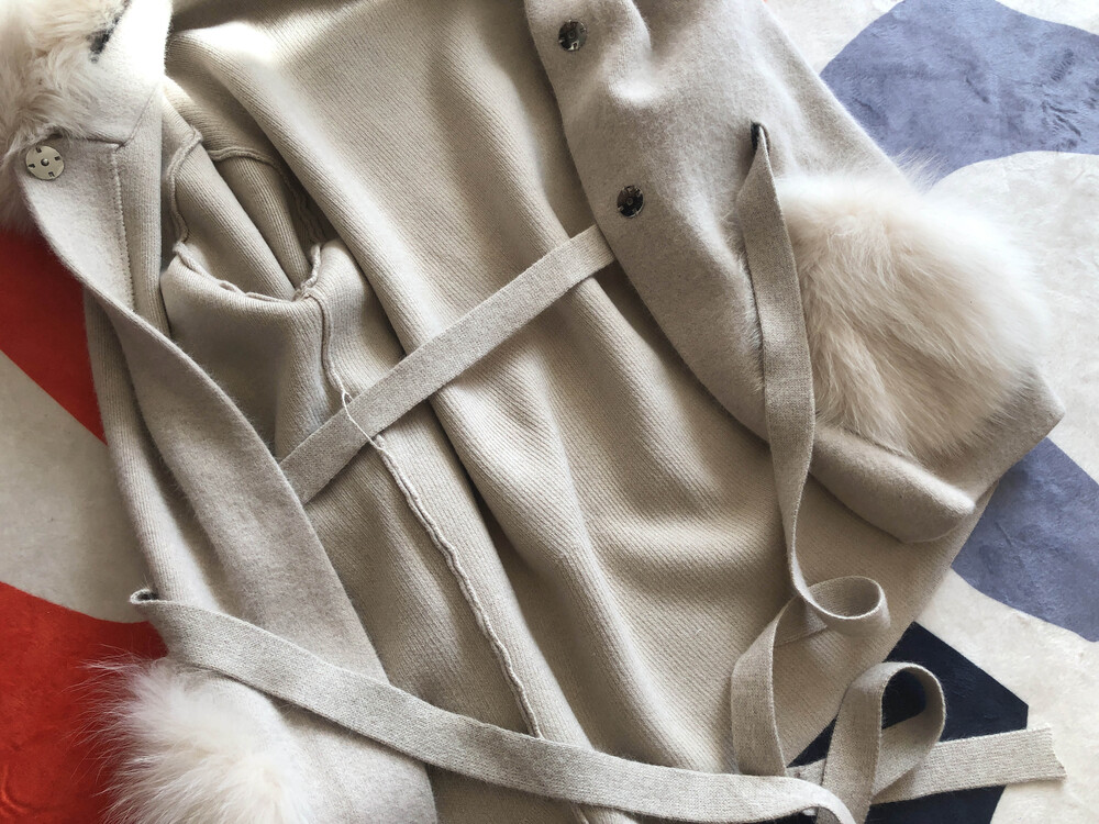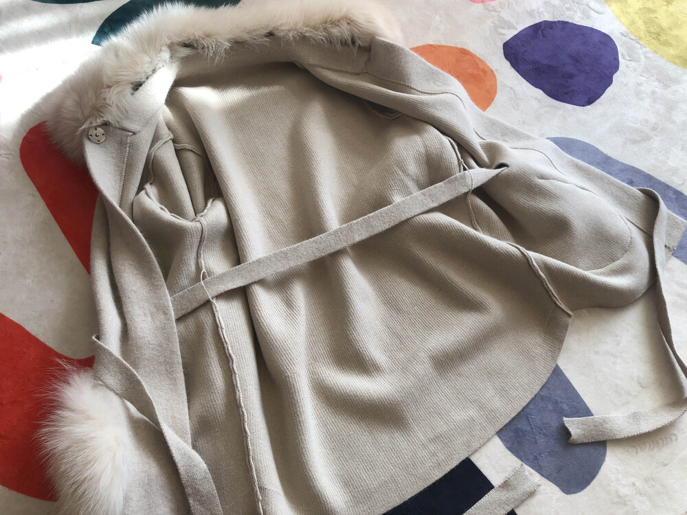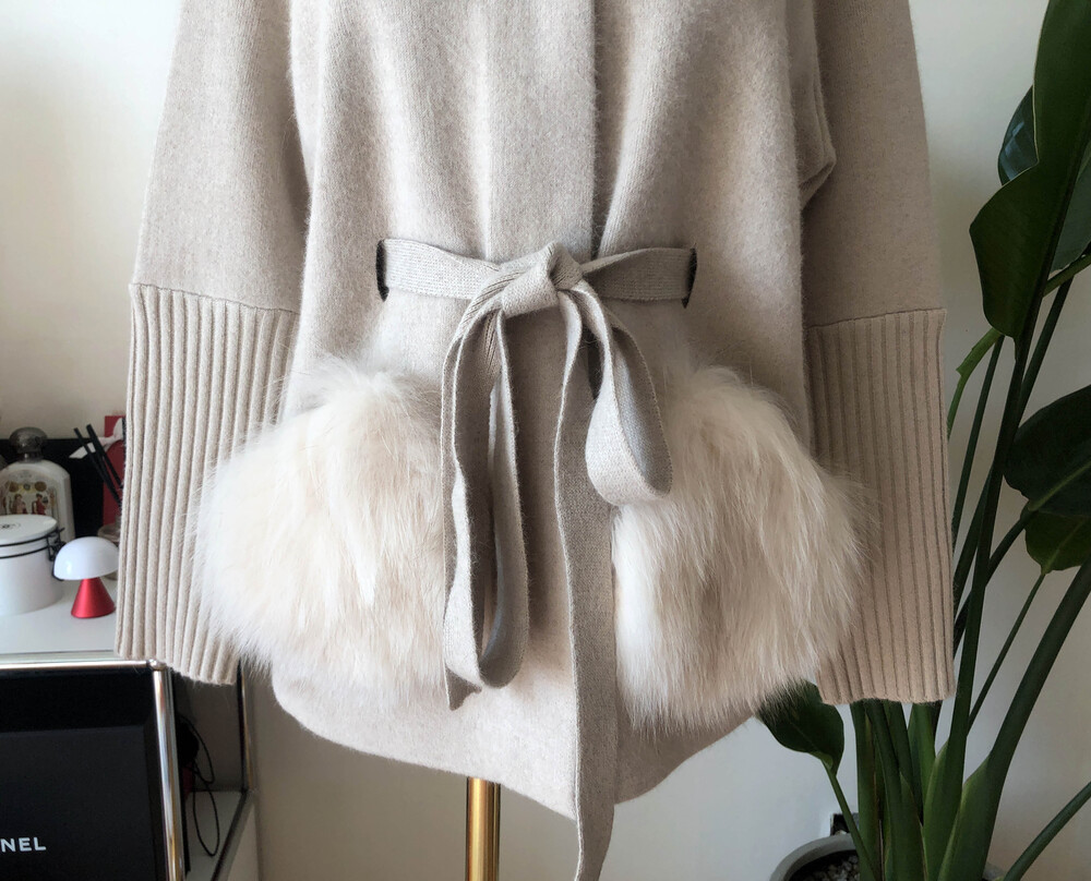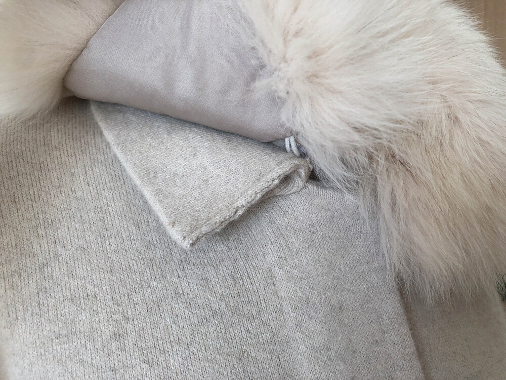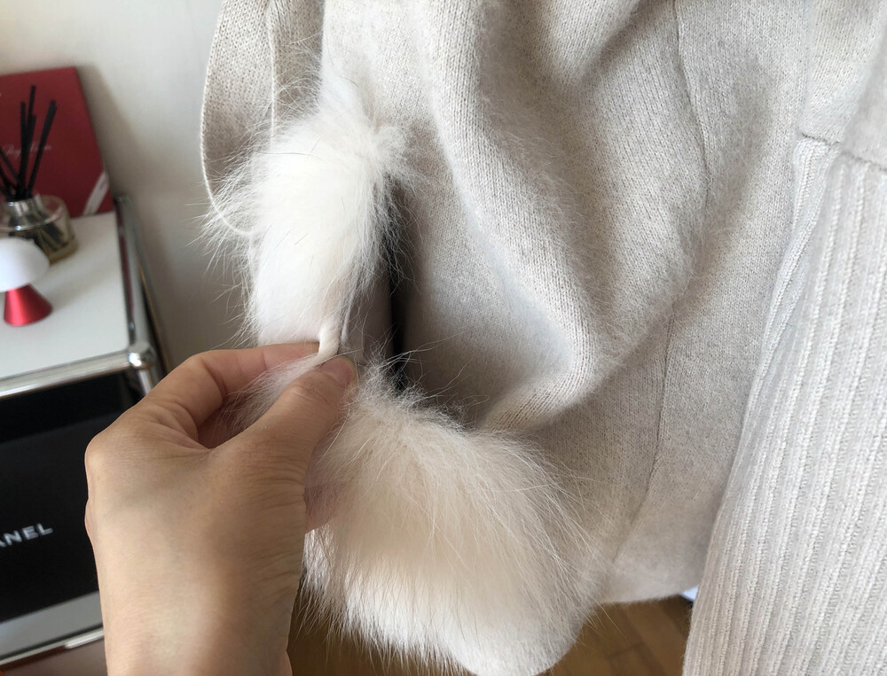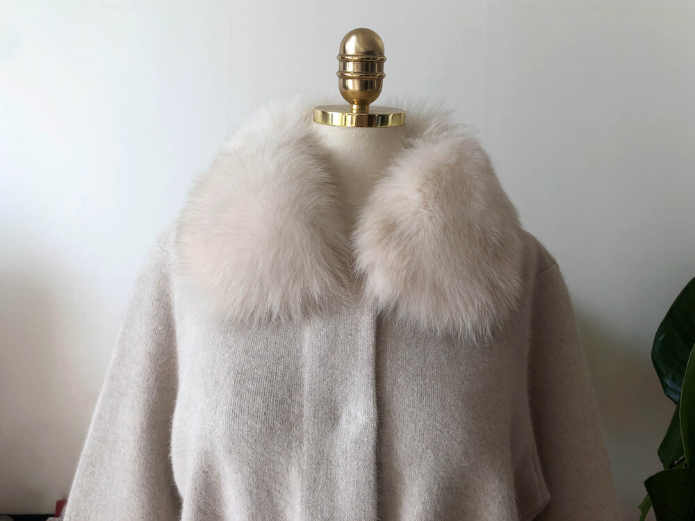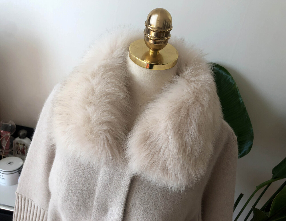 가볍고 포근한 울캐시 혼방 소재의 따뜻하게 착용할 수 있는 폭스 니트 자켓입니다