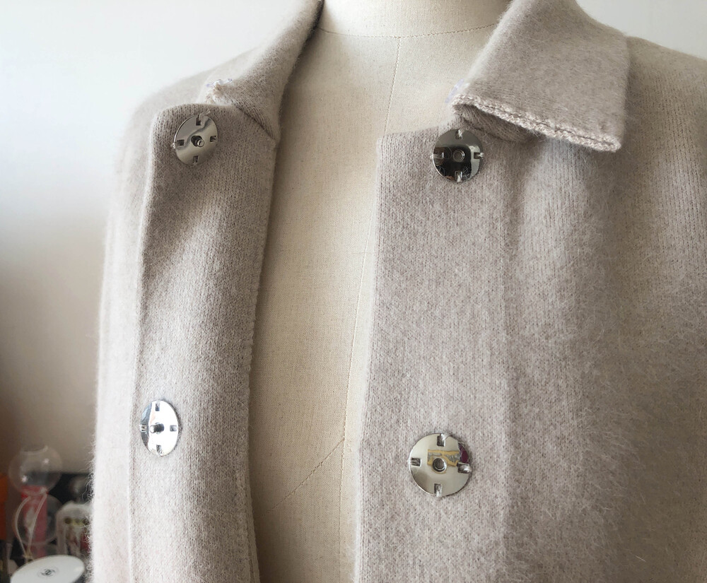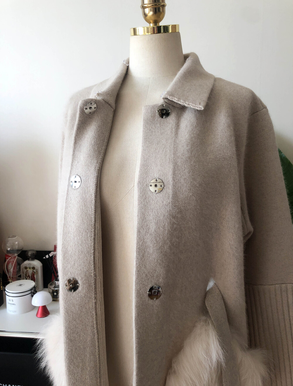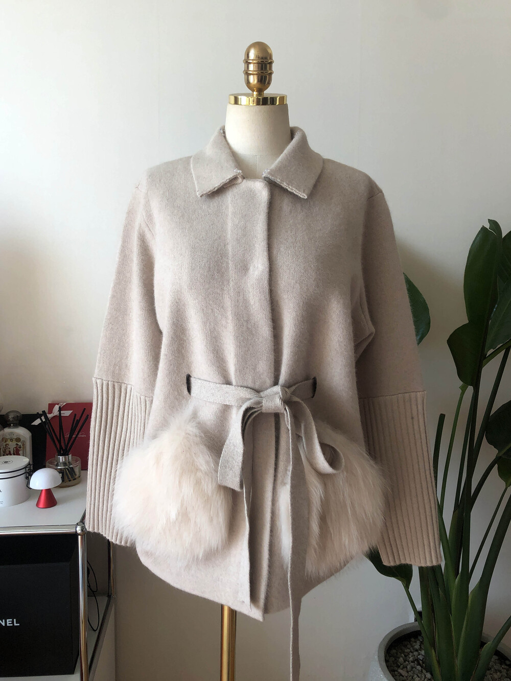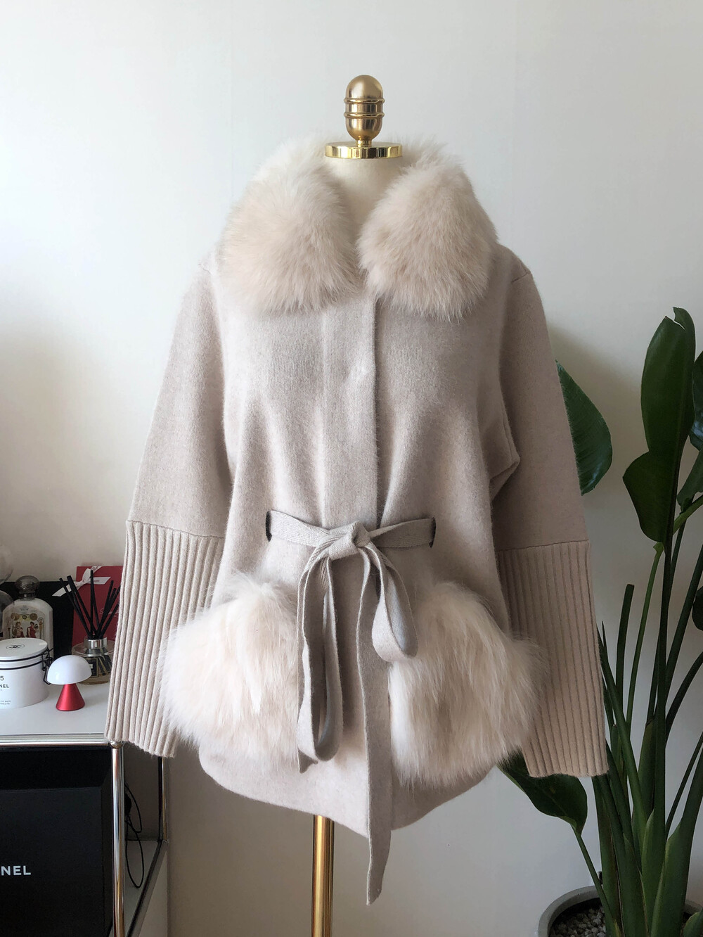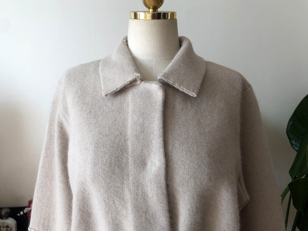 가볍고 포근한 울캐시 혼방 소재의 따뜻하게 착용할 수 있는 폭스 니트 자켓입니다