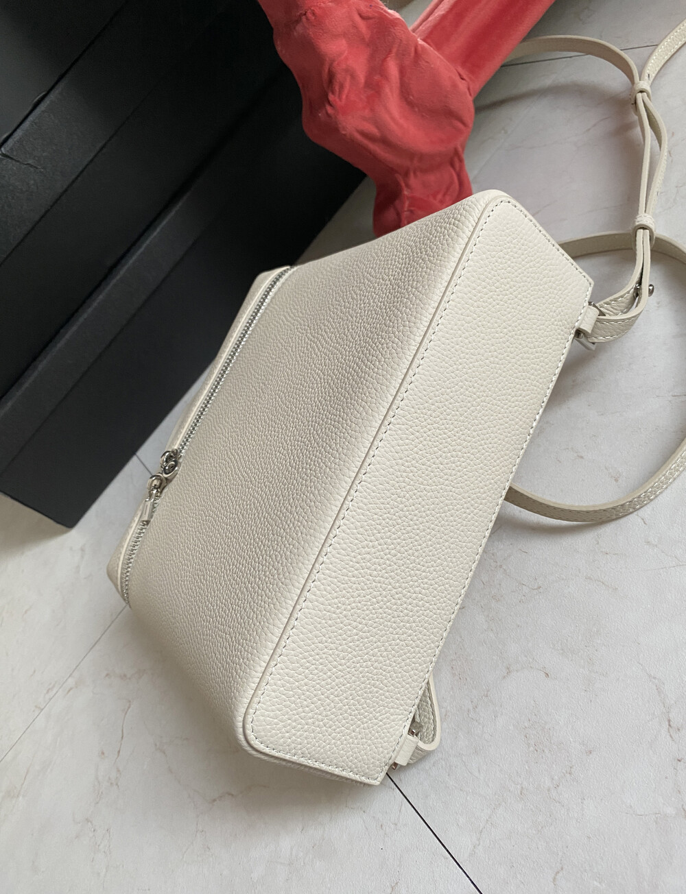 컴팩트한 사각형 모양의 포켓 백팩 디자인입니다.