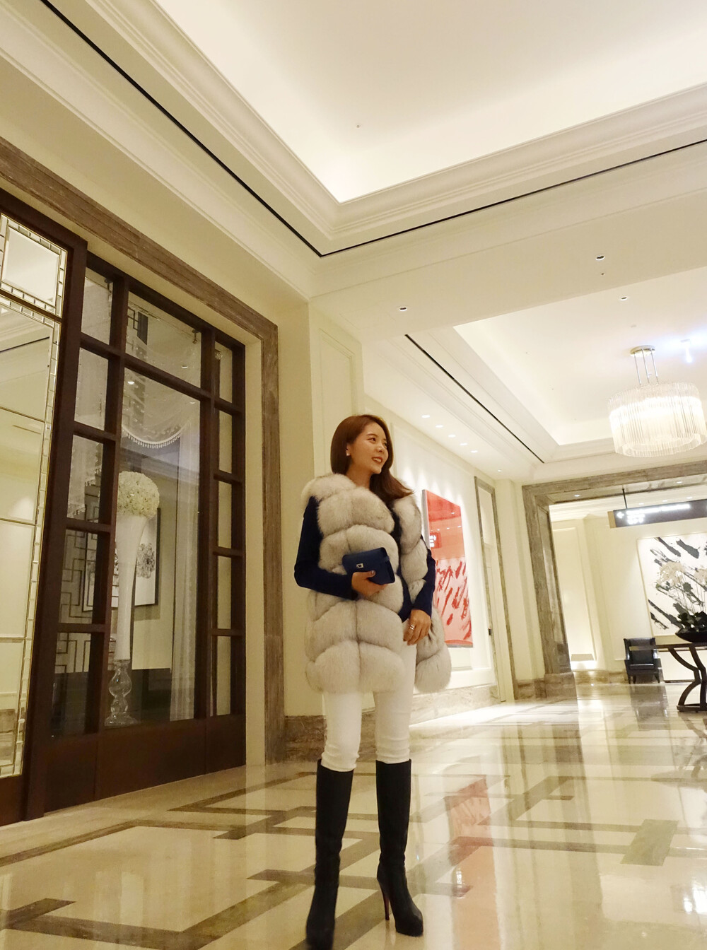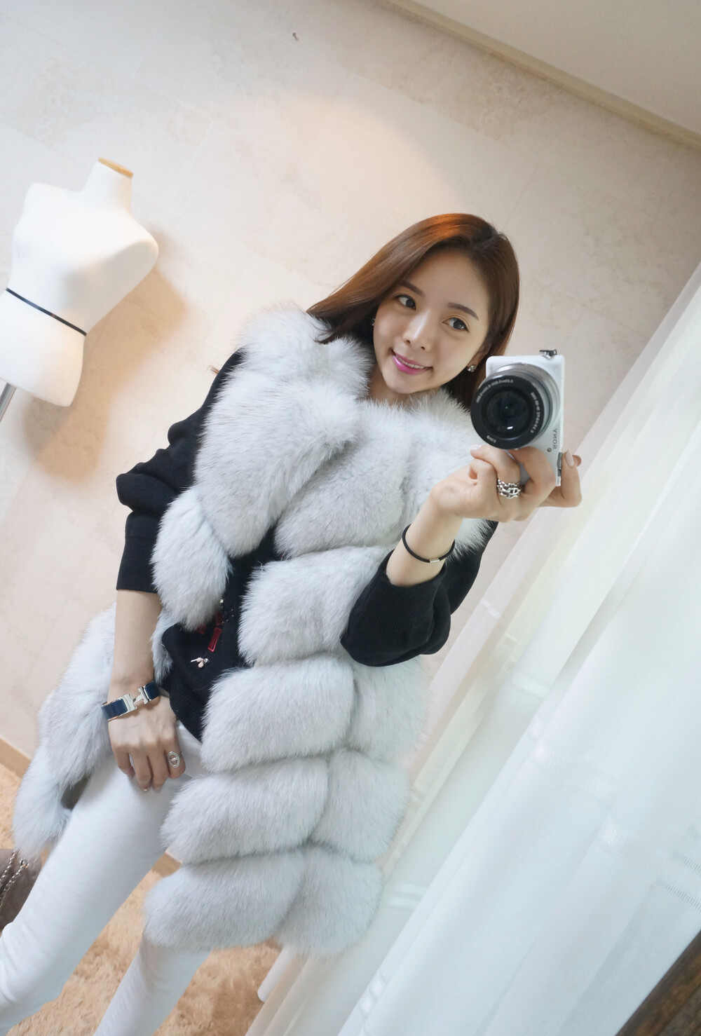 그리고! 블랙니트 입었을때 화이트퍼 입으면 옷에 묻어납니다