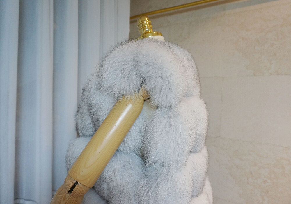 받아보시고 헤어드라이기로 퍼를 아래에서 위로 바람을 쐬어준 후 거꾸로 뒤집어서 팡팡 털어주세요