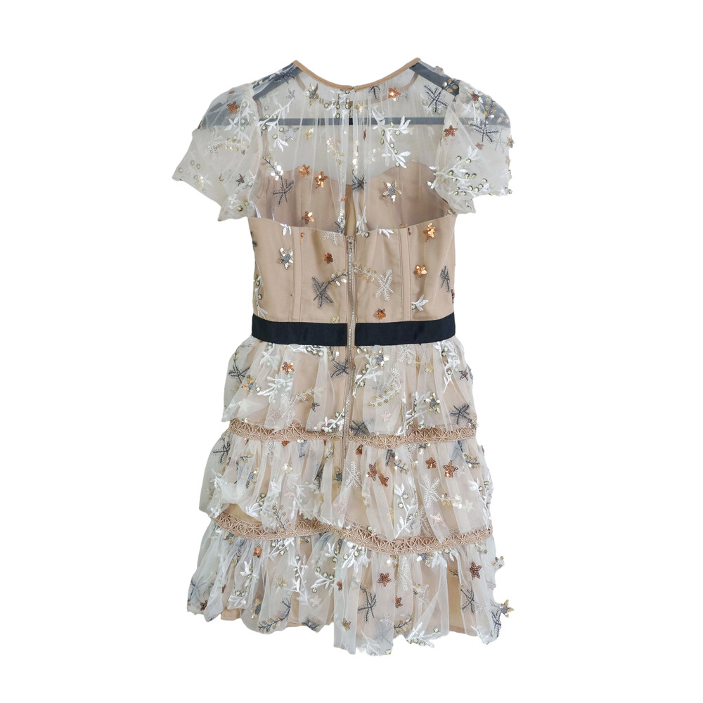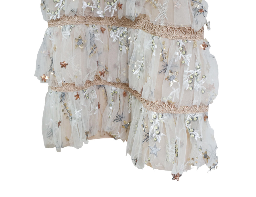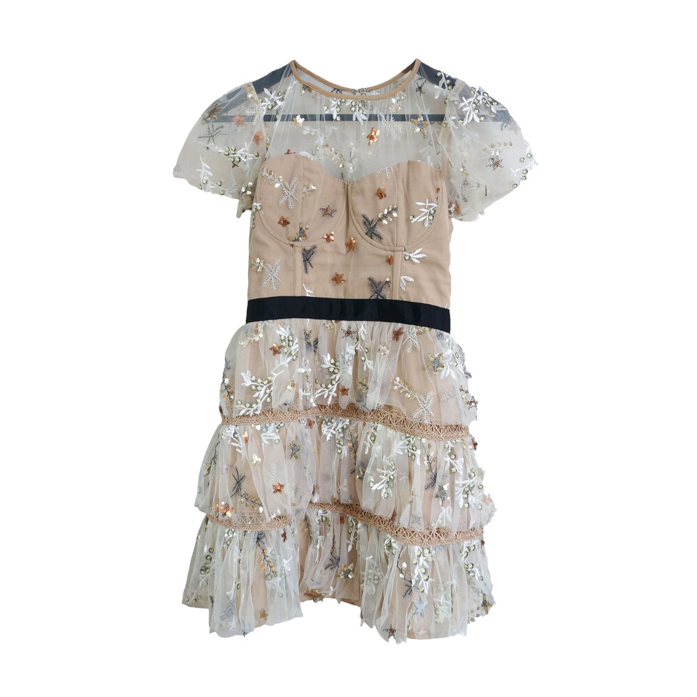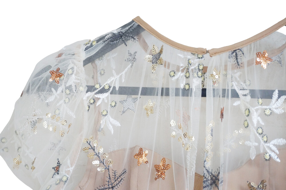 스팽글과 자수가 수놓아져있는 레이스 원단으로