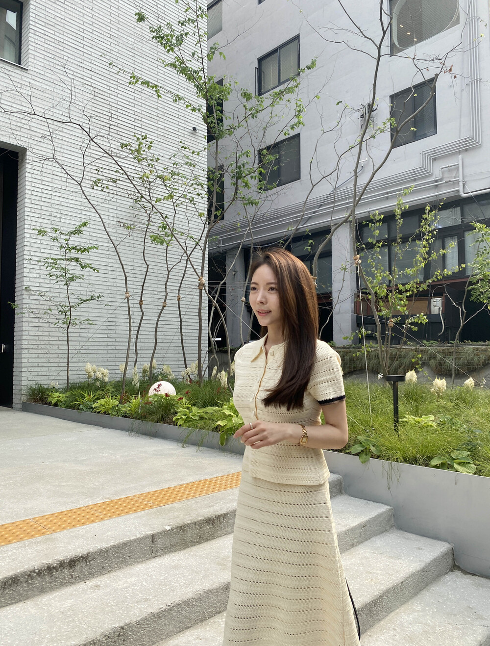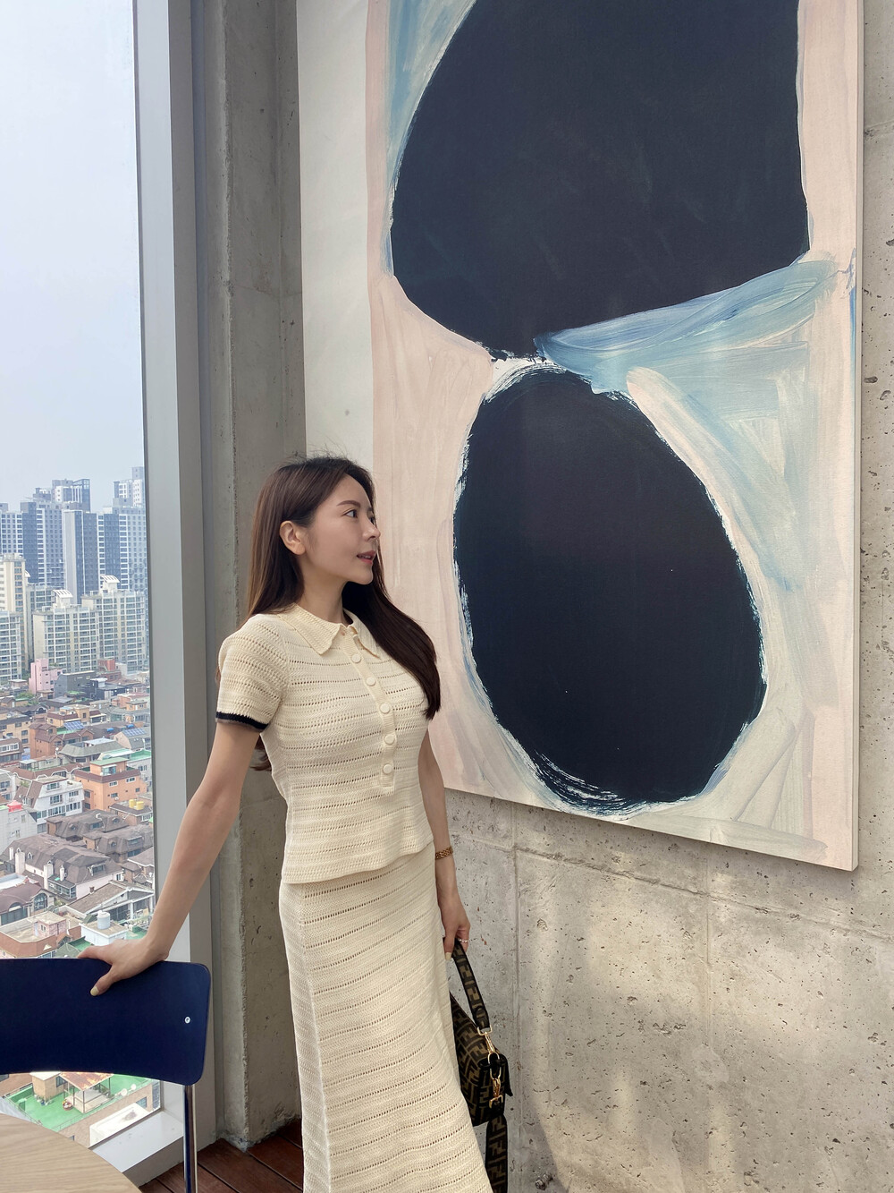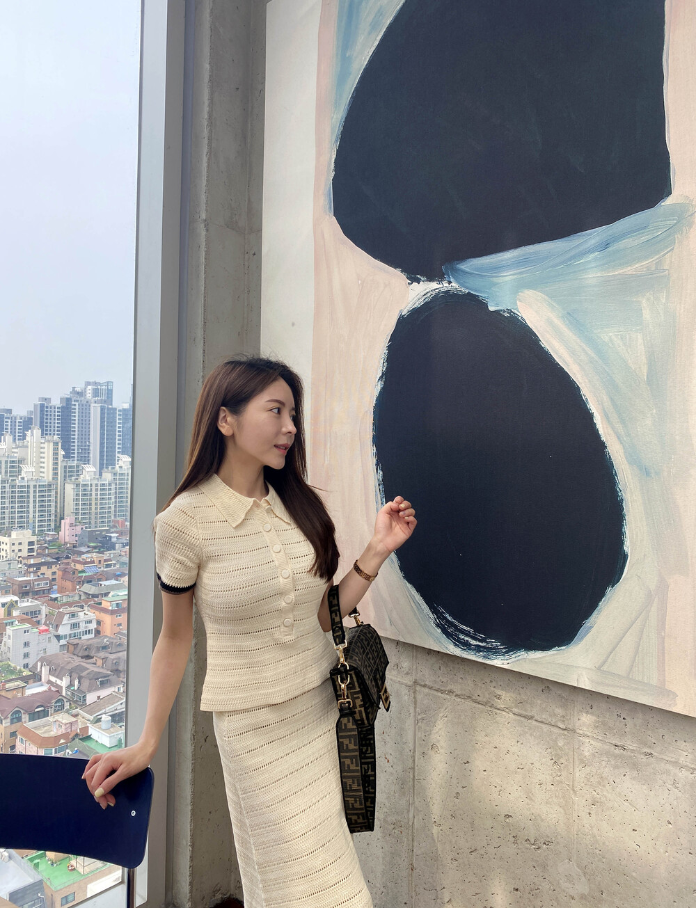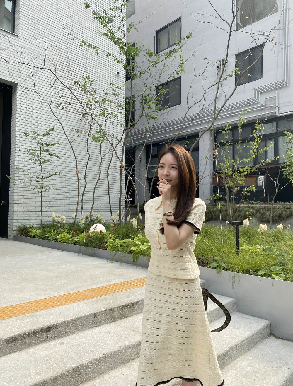 스커트는 미디 기장으로 단아한 기장감으로 부담없이 착용하기 좋아요