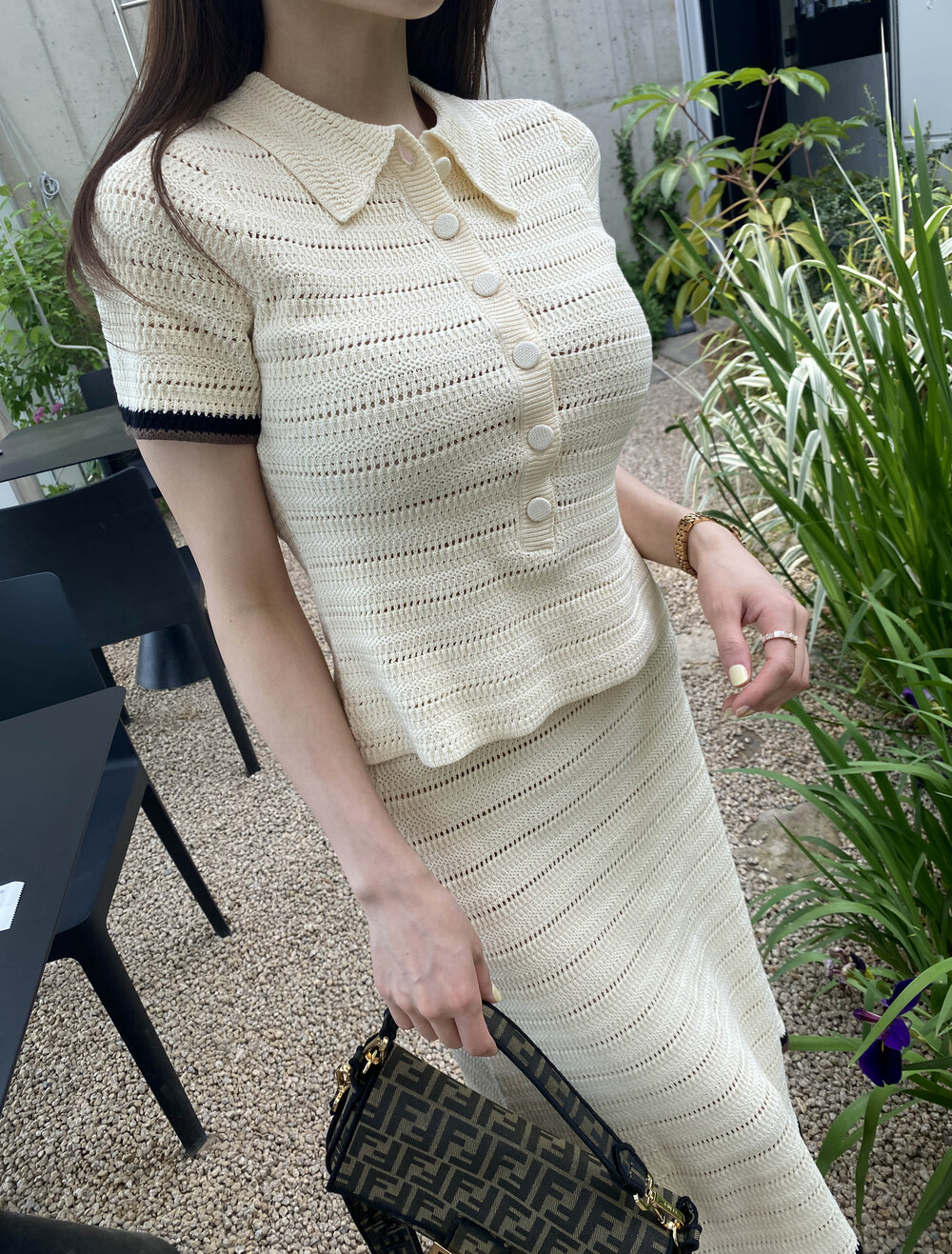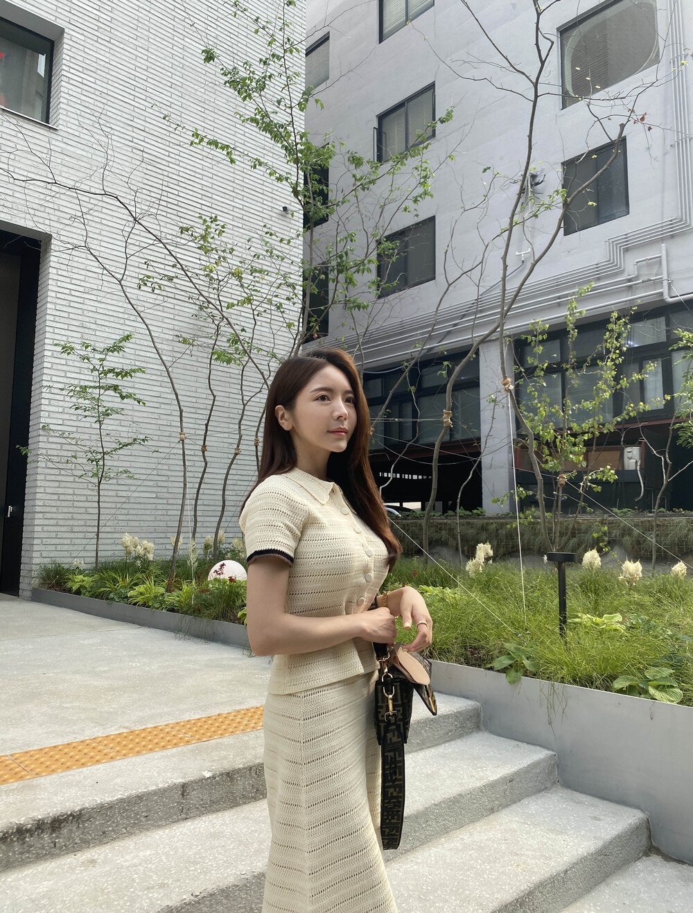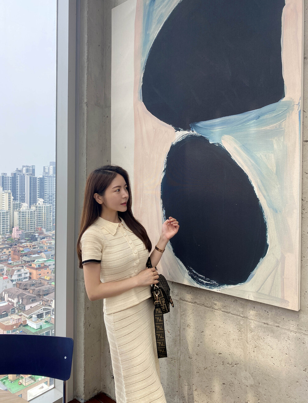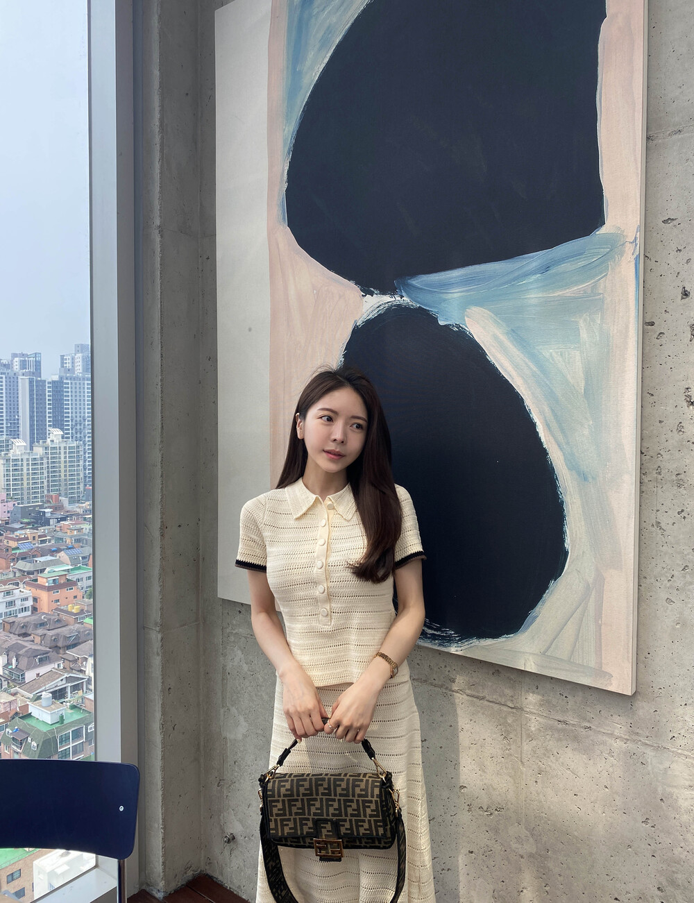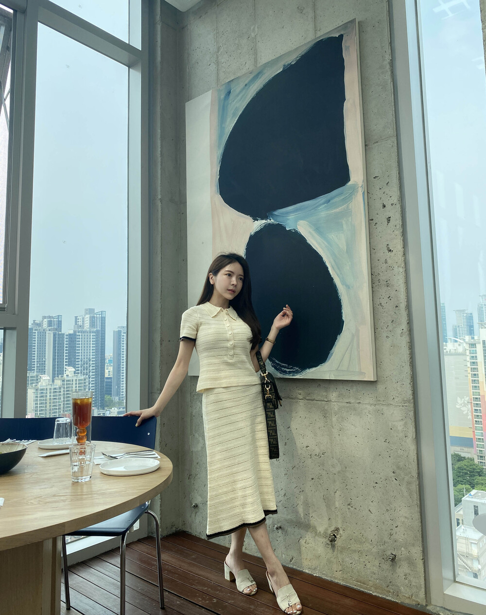 스커트는 미디 기장으로 단아한 기장감으로 부담없이 착용하기 좋아요