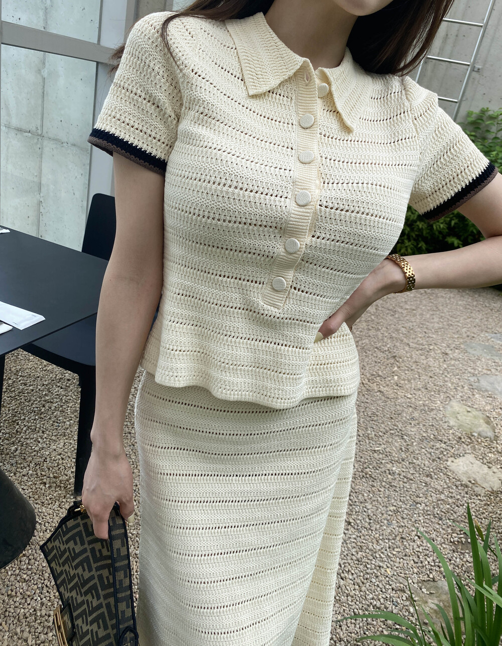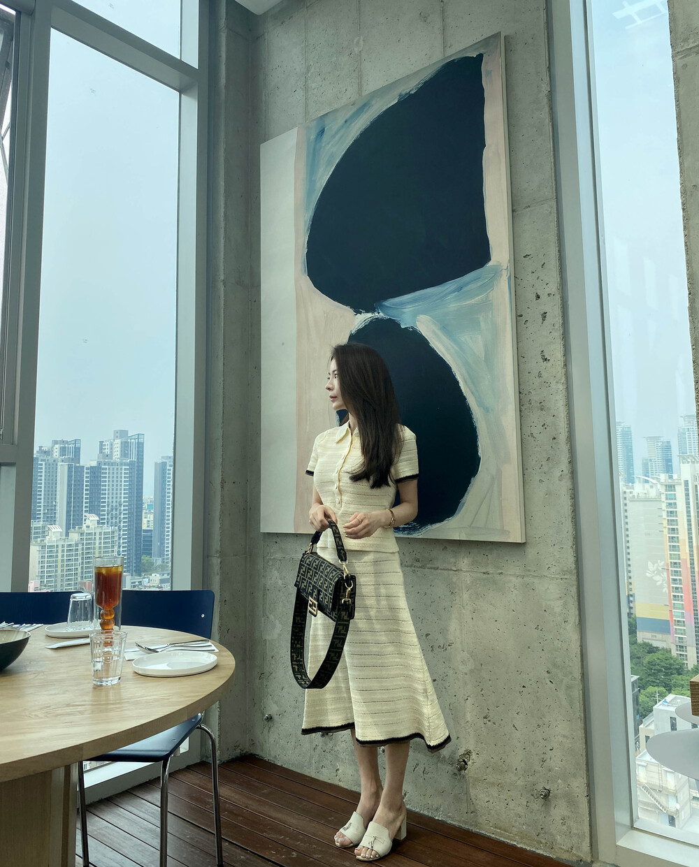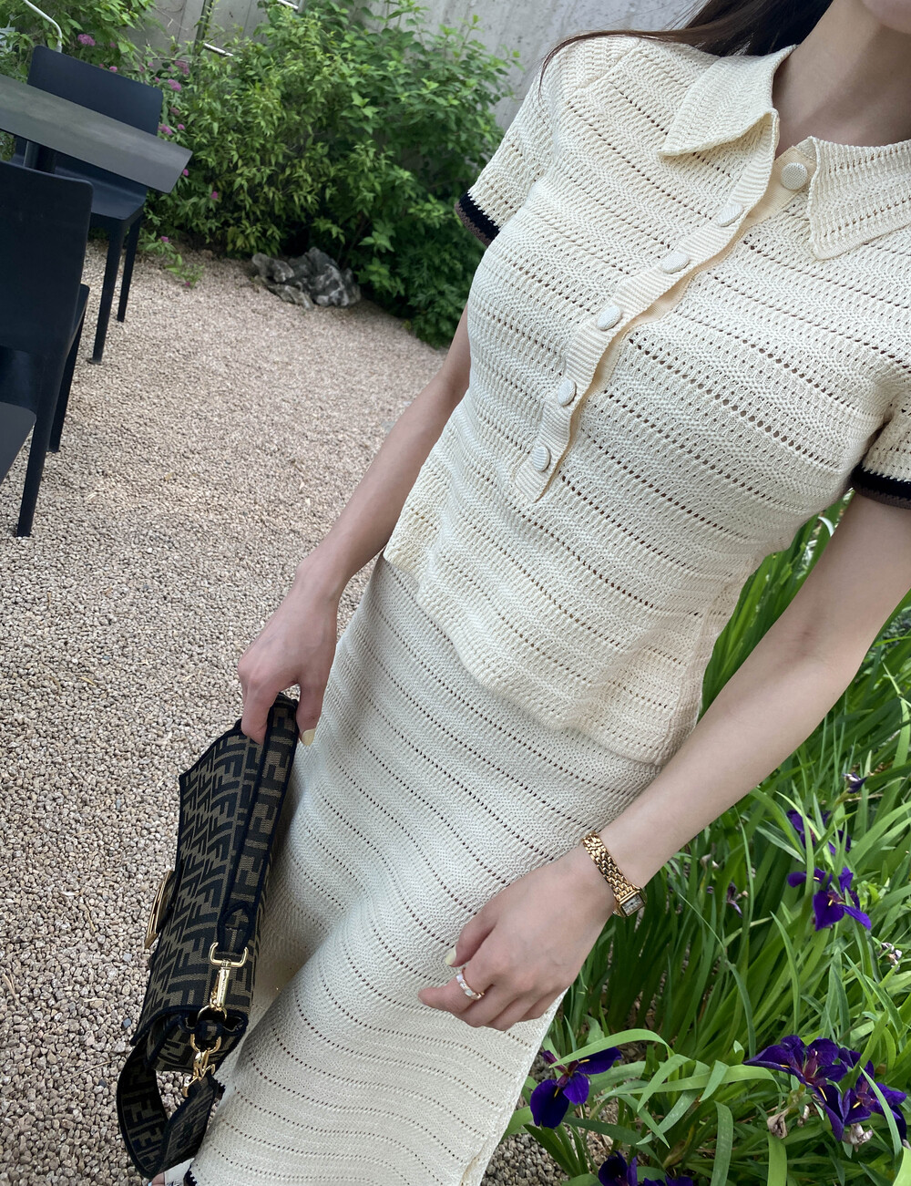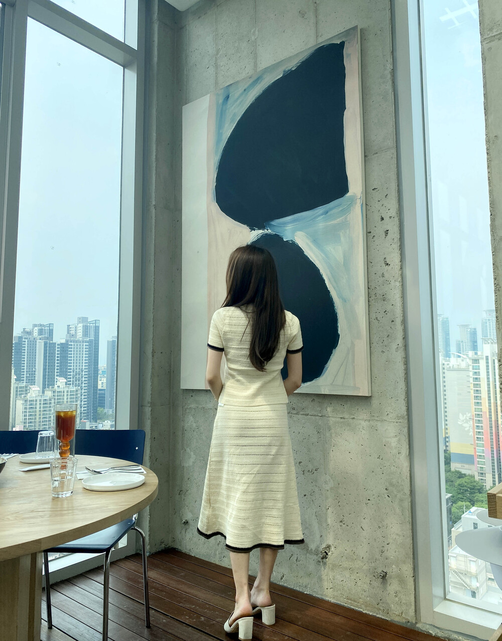 스커트는 미디 기장으로 단아한 기장감으로 부담없이 착용하기 좋아요