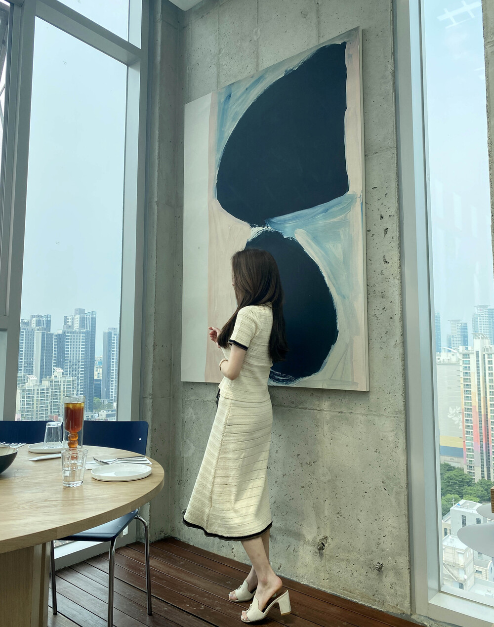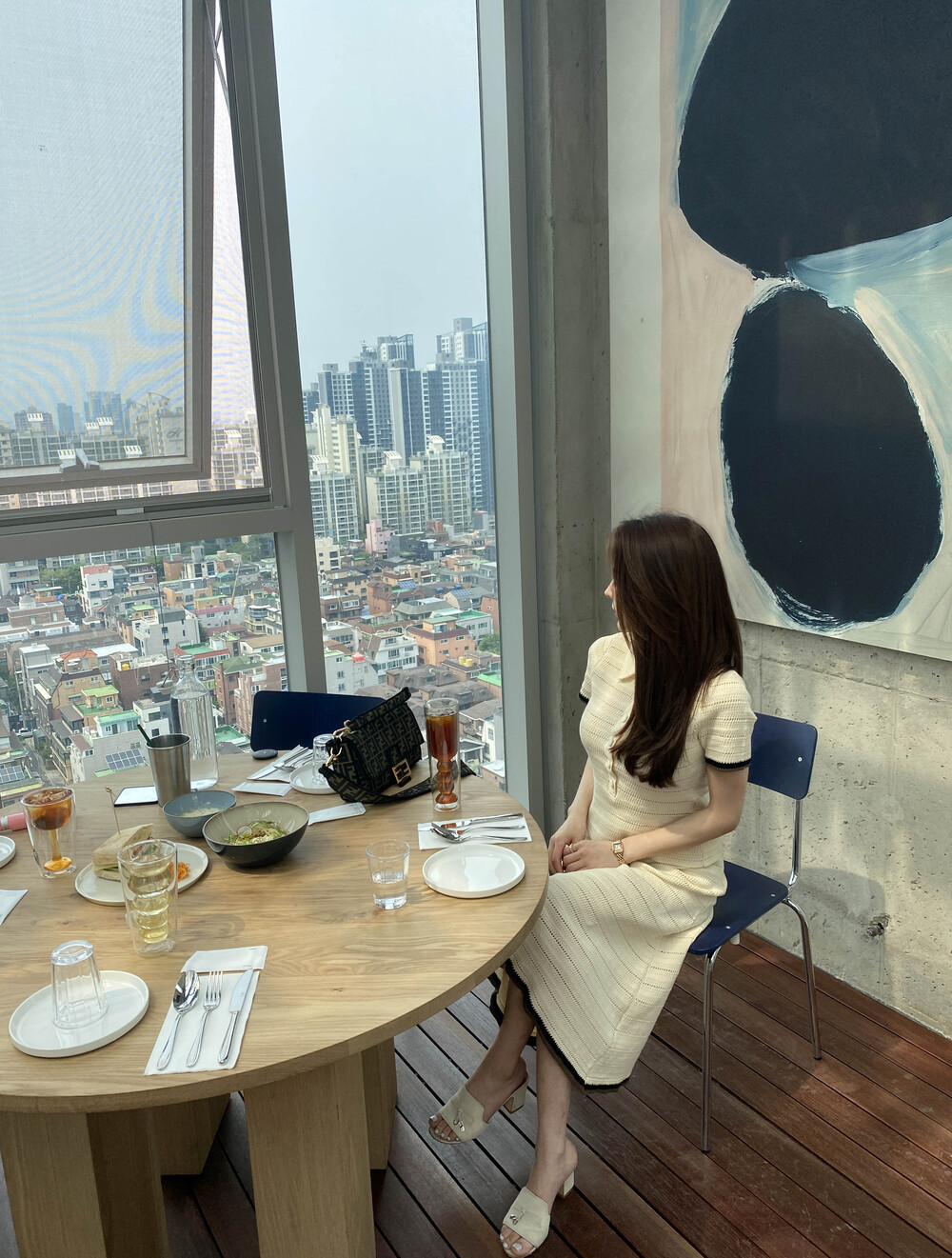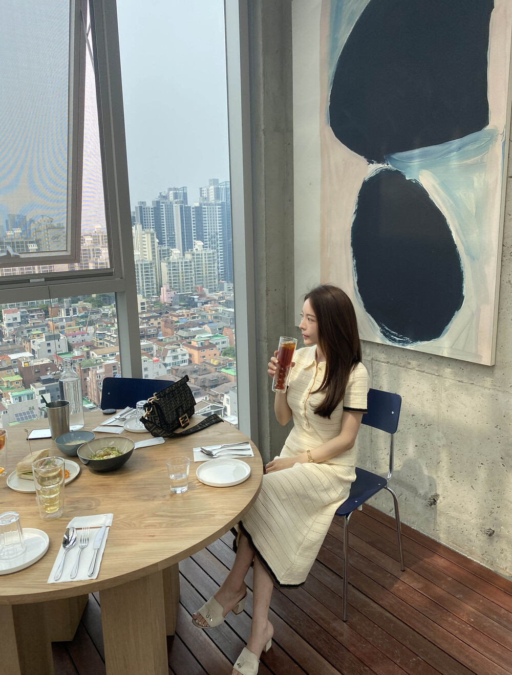 카라넥의 니트탑으로 짧은 기장감이라 다리가 길어보이더라구요ㅎㅎ