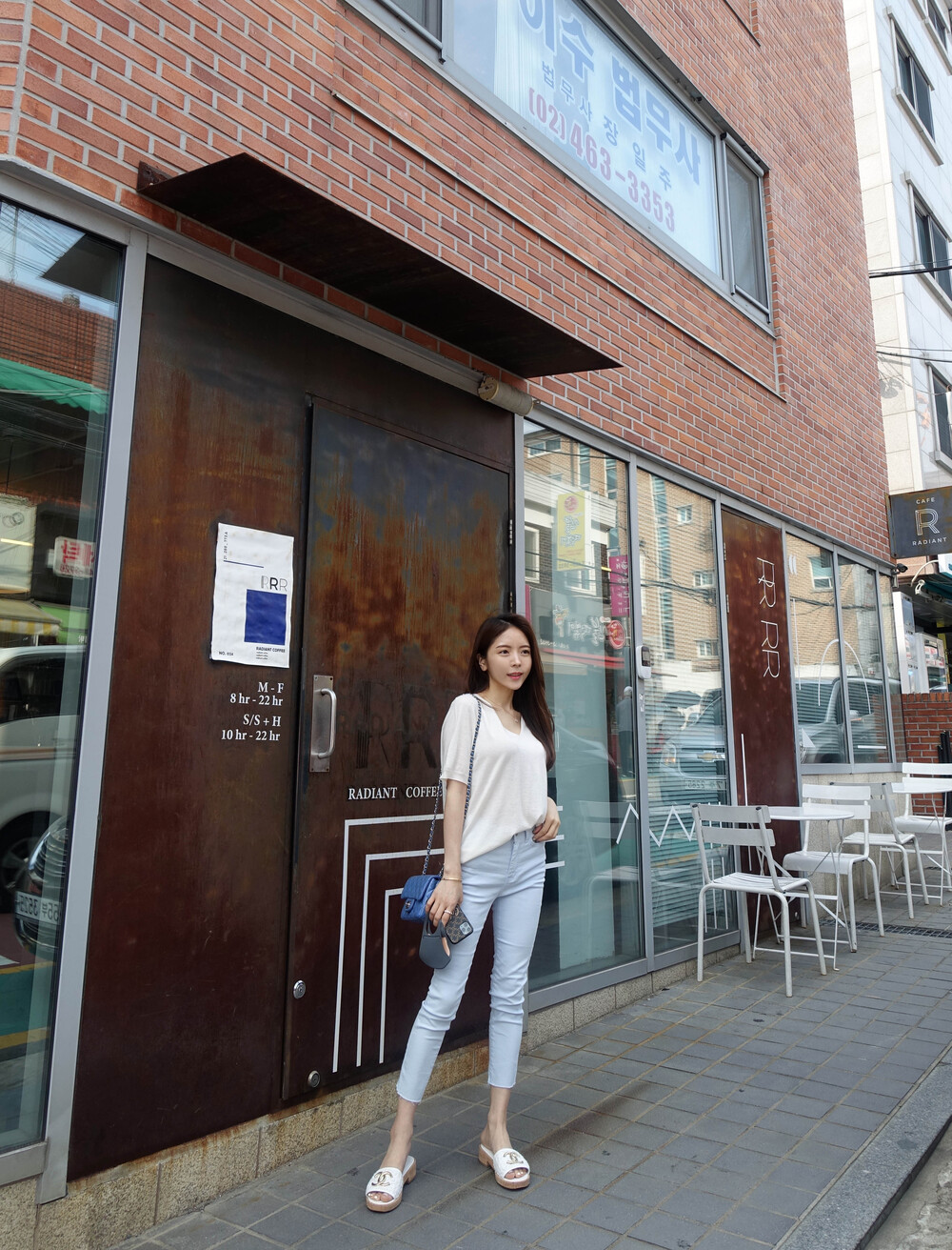 8부 기장으로 기존 슬림해진보다 기장이 짧은편입니다