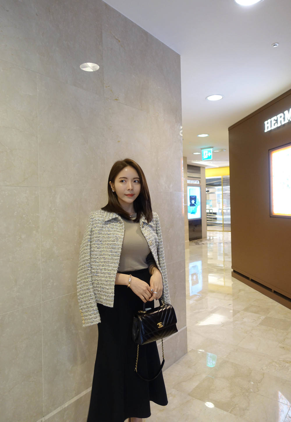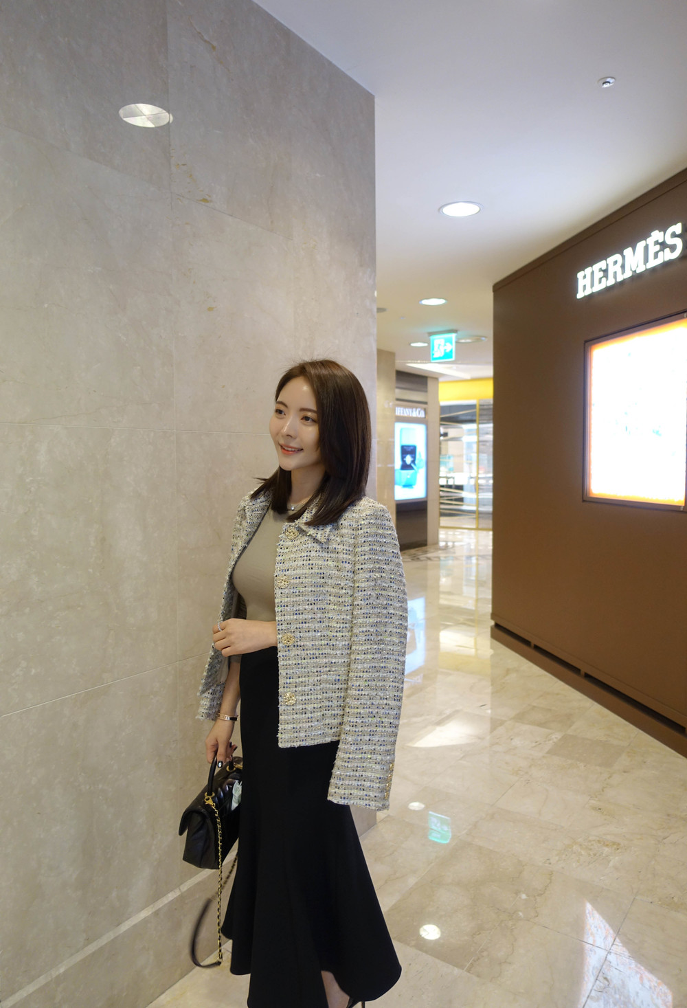 고급 트위드 원단을 사용하여 시중에서 볼 수 없는 트위드로 소장가치를 높였으며