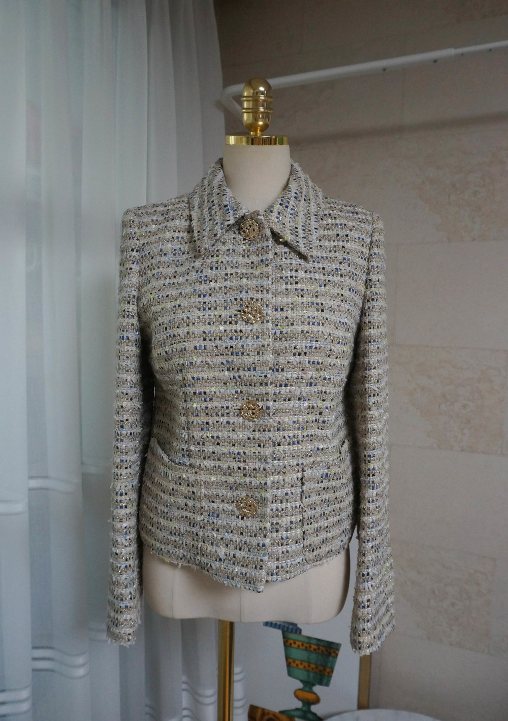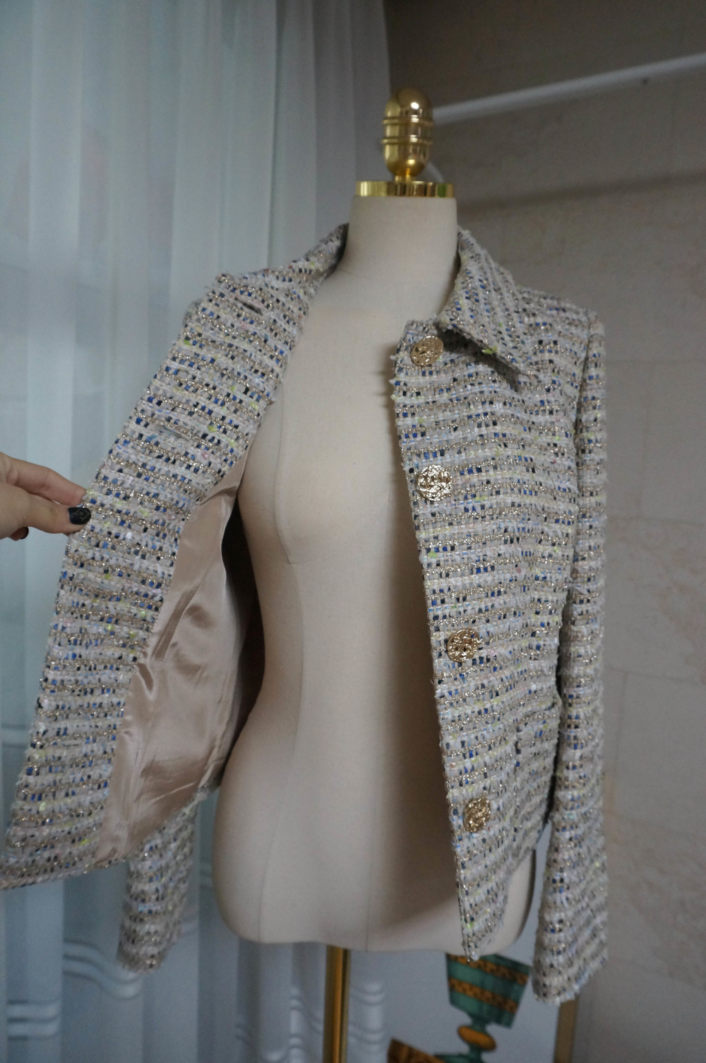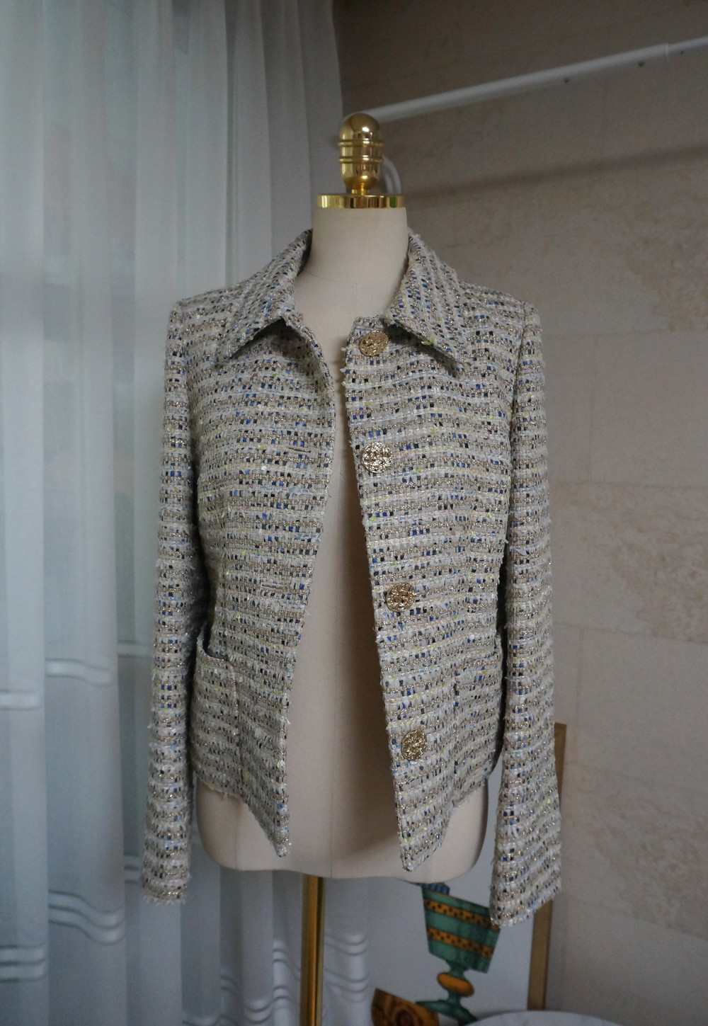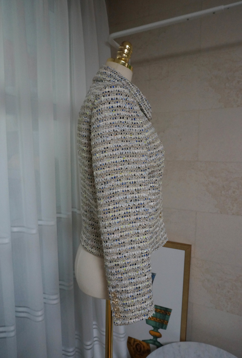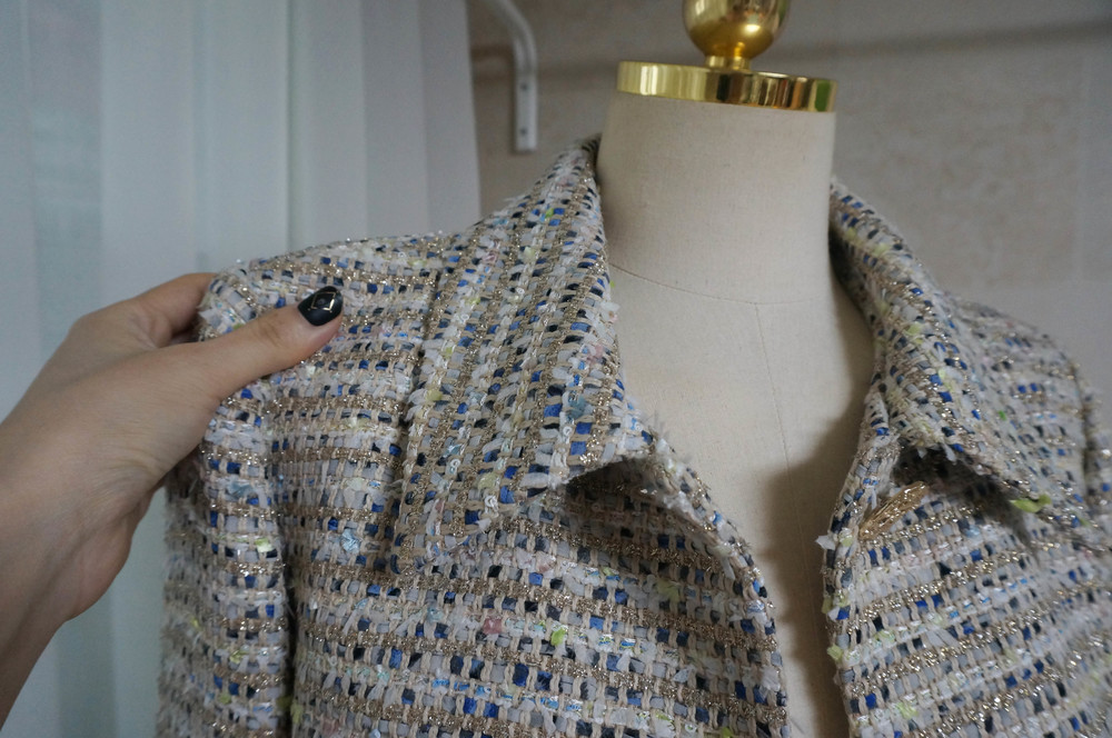 트위드에 금사가 섞여있어 더욱 빛이나며 컬러조합이 노블해보이지 않아서