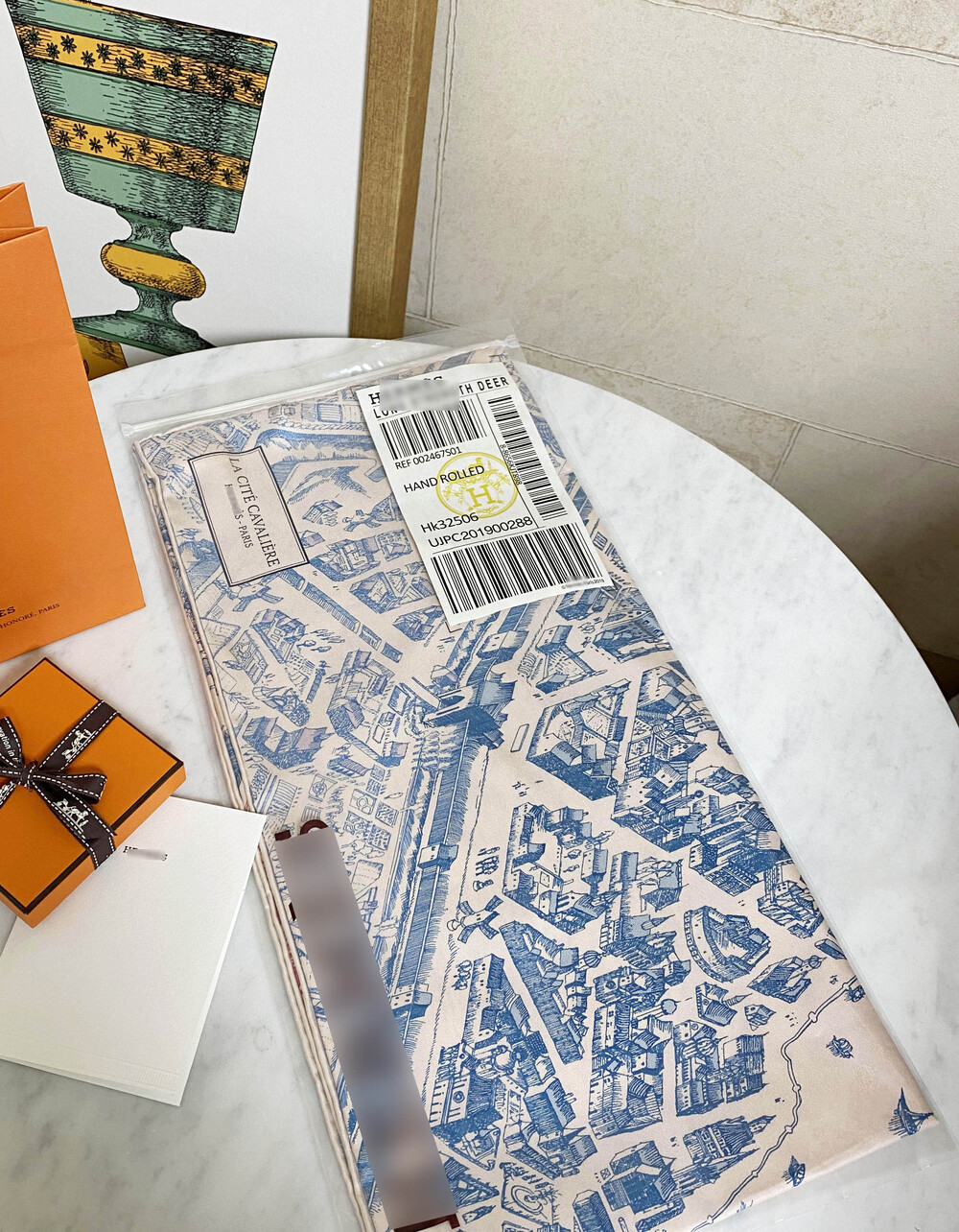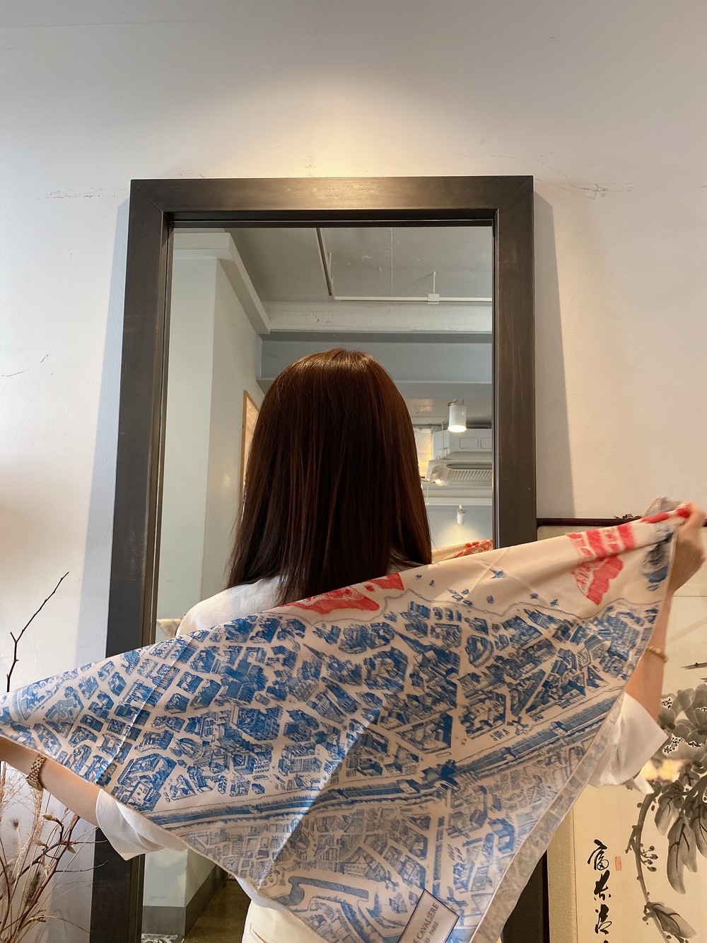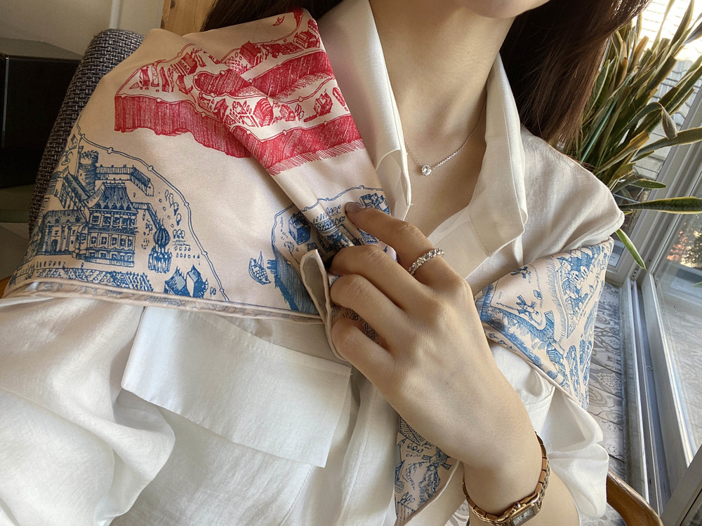 스카프 끝처리는 핸드메이드 헤밍 방식으로