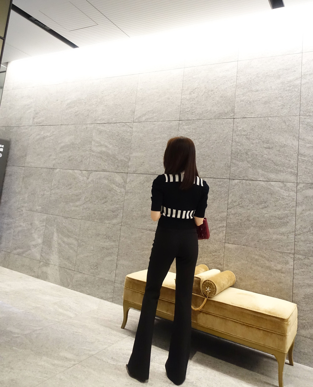 착용했을때 몸에 착 감기는 느낌과 다리가 매우 길어보이는 부츠컷 라인이예요