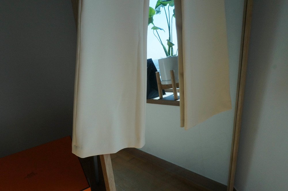 허리 안쪽 부분에는 라인테잎을 달아 옷걸이에 걸어도 옷에 손상이 가지않게 안감까지 신경썻어요
