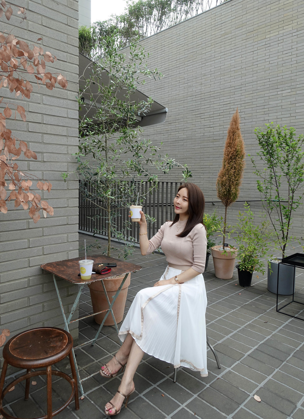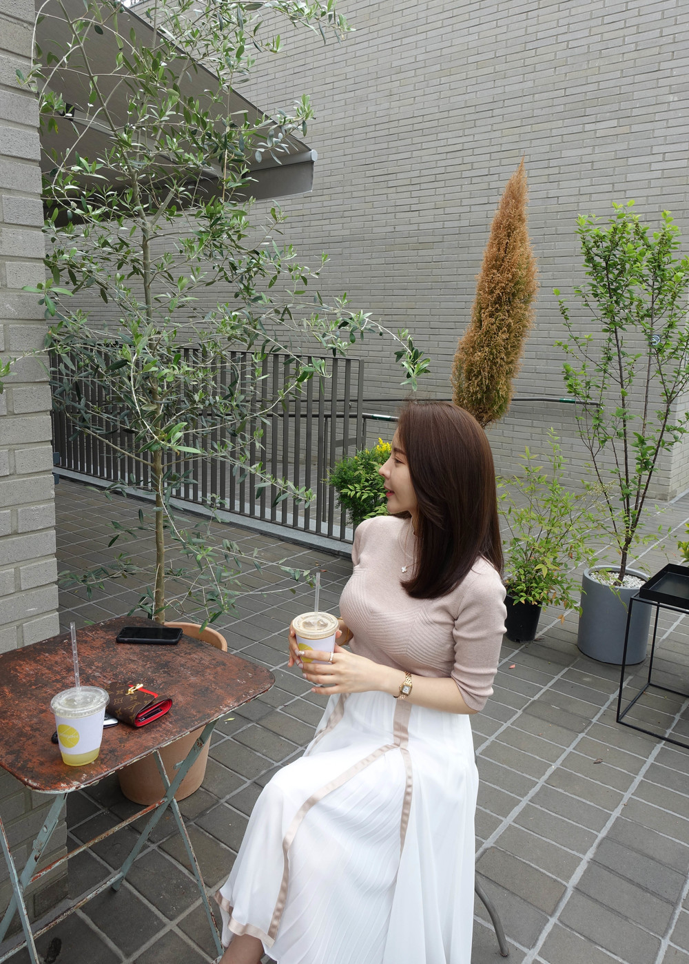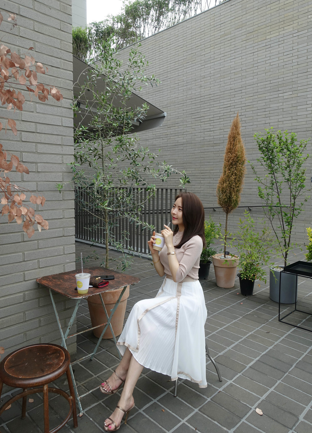 가장 겉감에는 트임이 있어 안감에 플리츠 스커트가 살짝살짝 보이는게 특징이예요