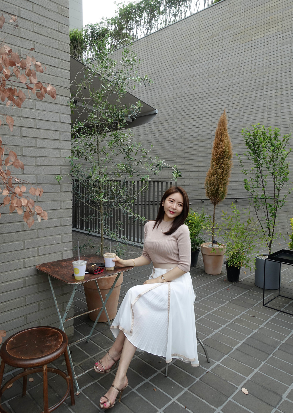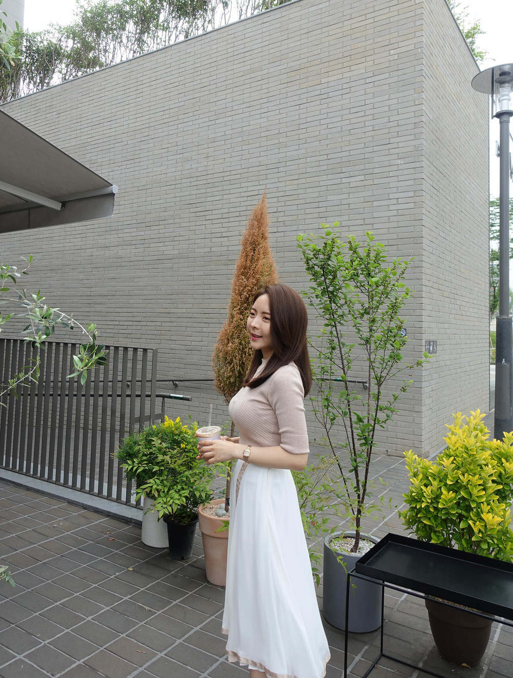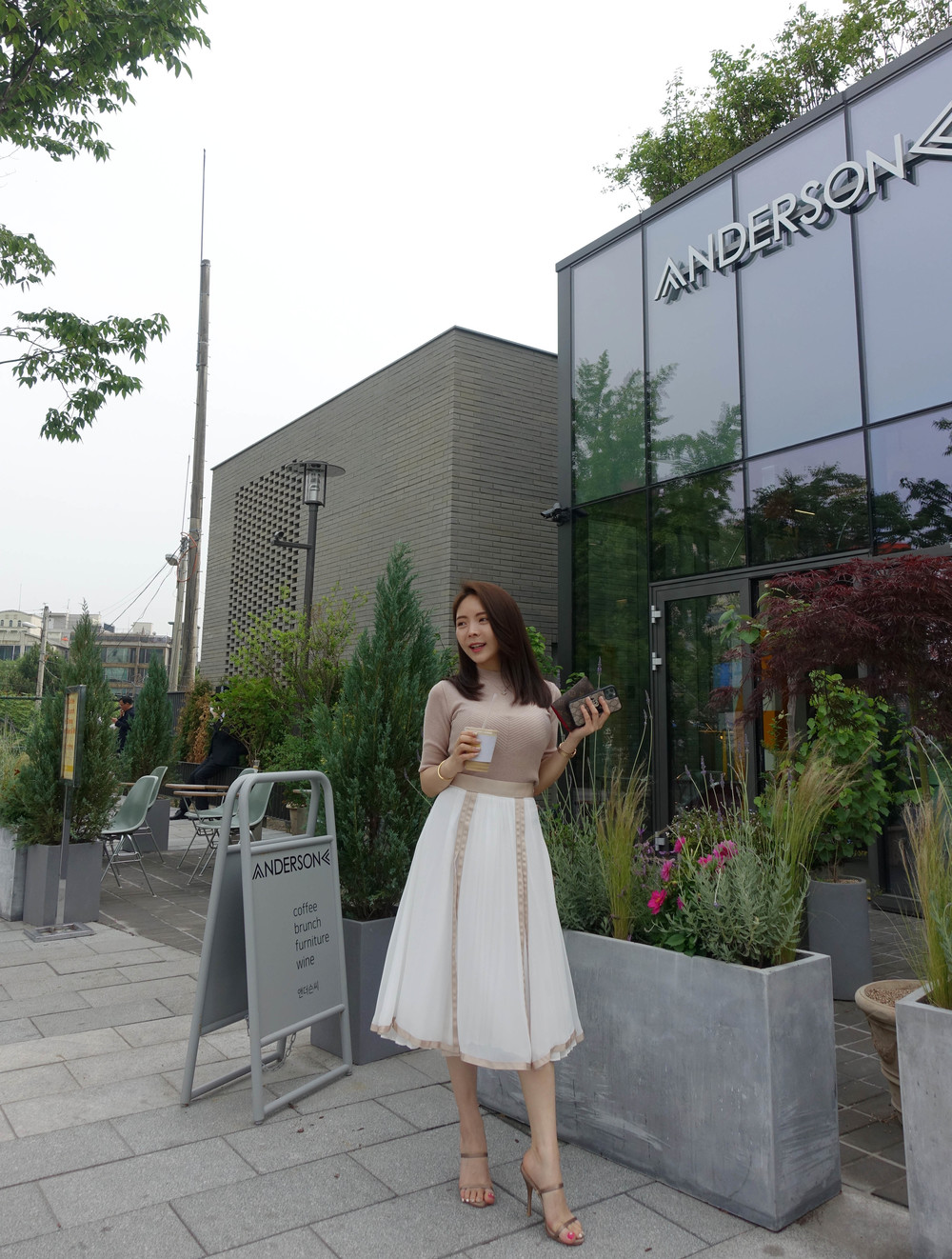 가장 겉감에는 트임이 있어 안감에 플리츠 스커트가 살짝살짝 보이는게 특징이예요