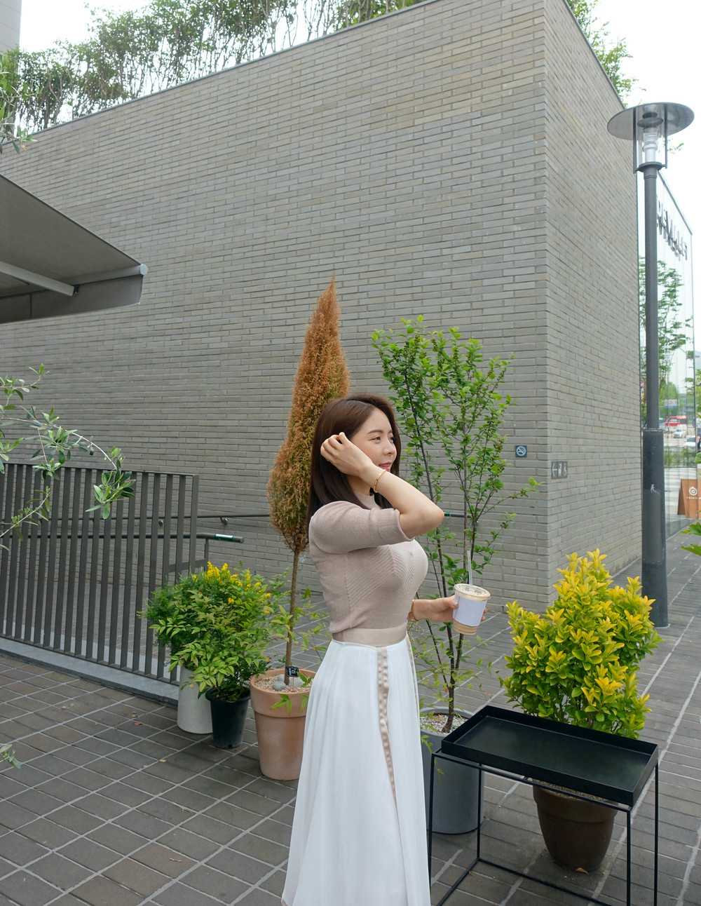 A라인으로 떨어지며 살랑살랑~ 여리여리해 보이고 여신 느낌나는 스커트예요