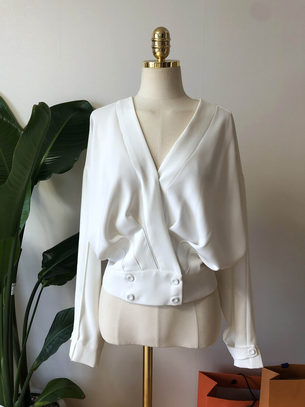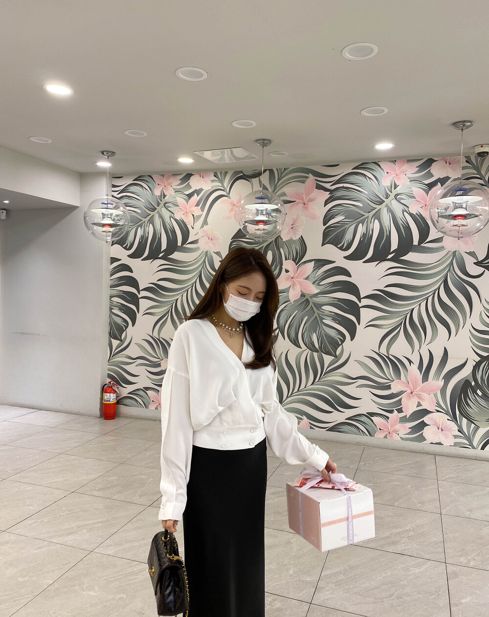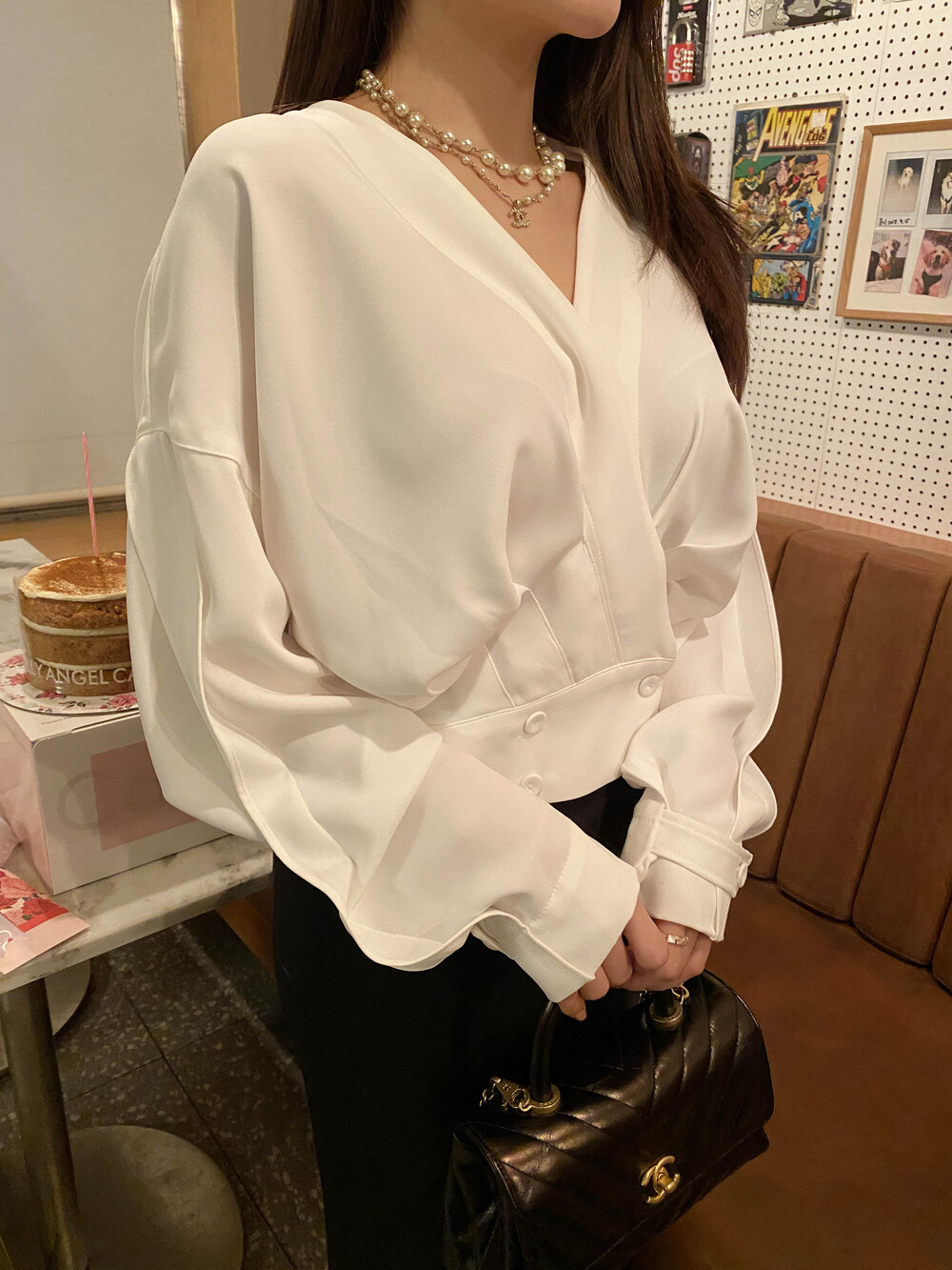 여자의 실루엣을 최대한 예뻐보이게 잘 살려주는 드라마틱한 블라우스라고 할 수 있어요