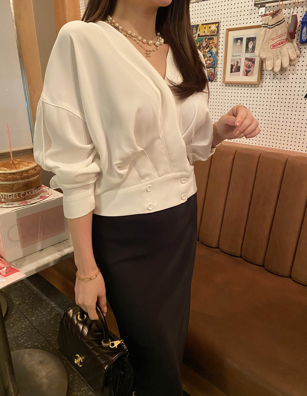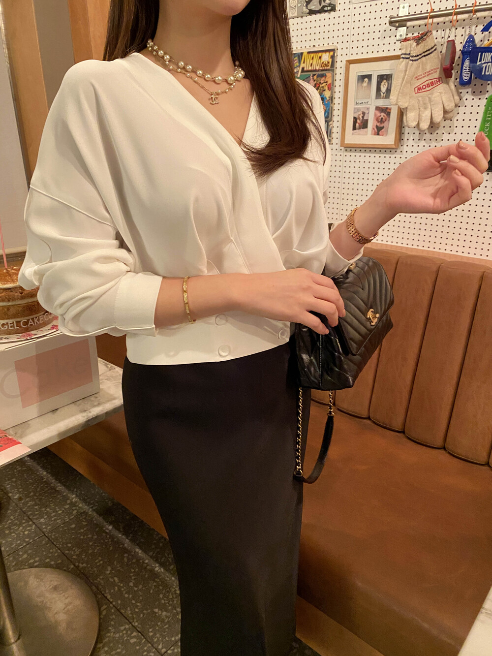 엘레강스한 분위기의 우아하면서도 은은한 섹시미를 갖출 수 있는 블라우스예요