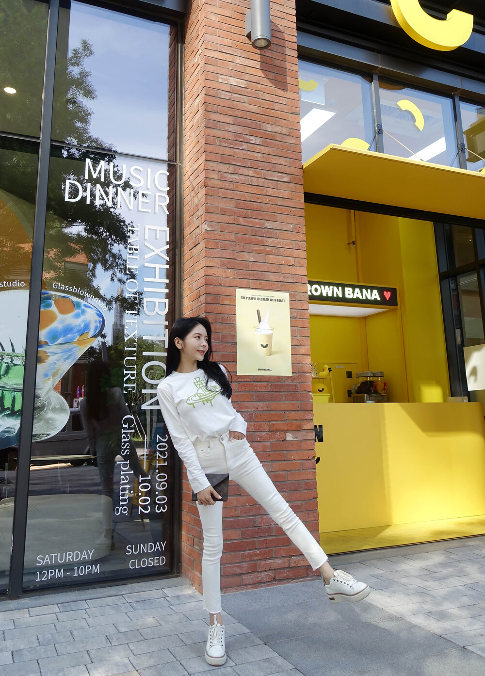 요즘 일자로 떨어지는 팬츠는 짧게 입는게 유행이잖아요