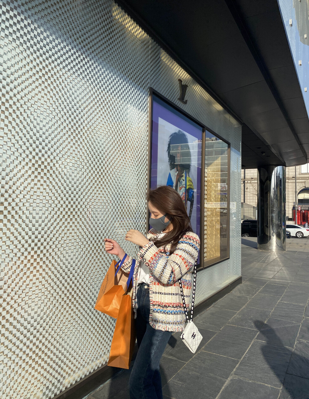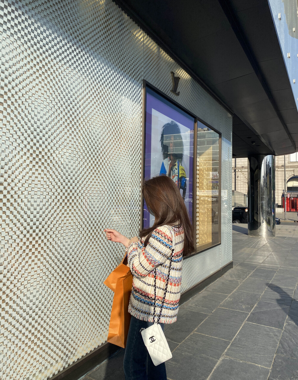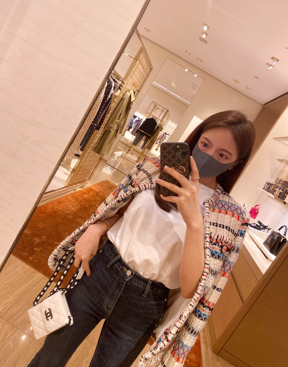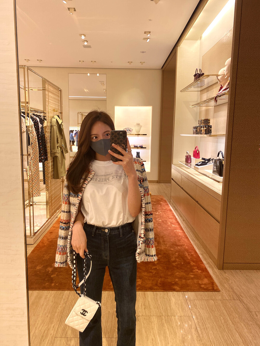 저는 체인을 가방 안쪽으로 한 번 돌려서 더 짧게 크로스로 들었어요 :)