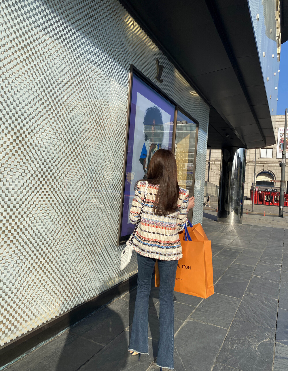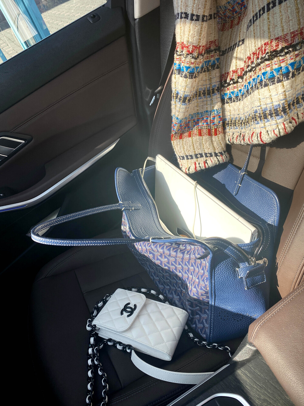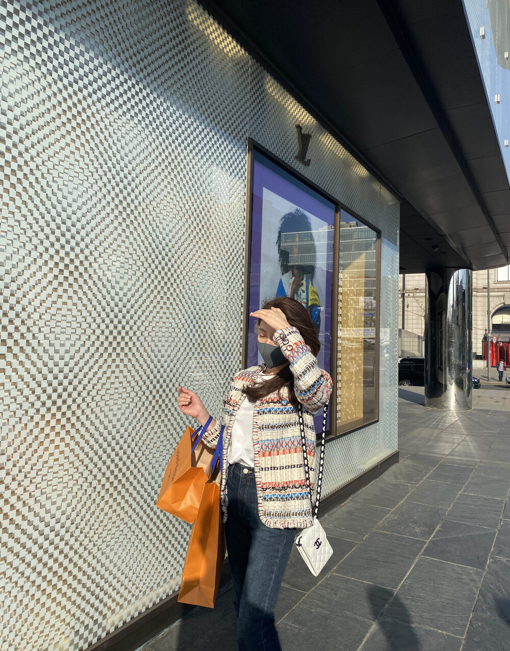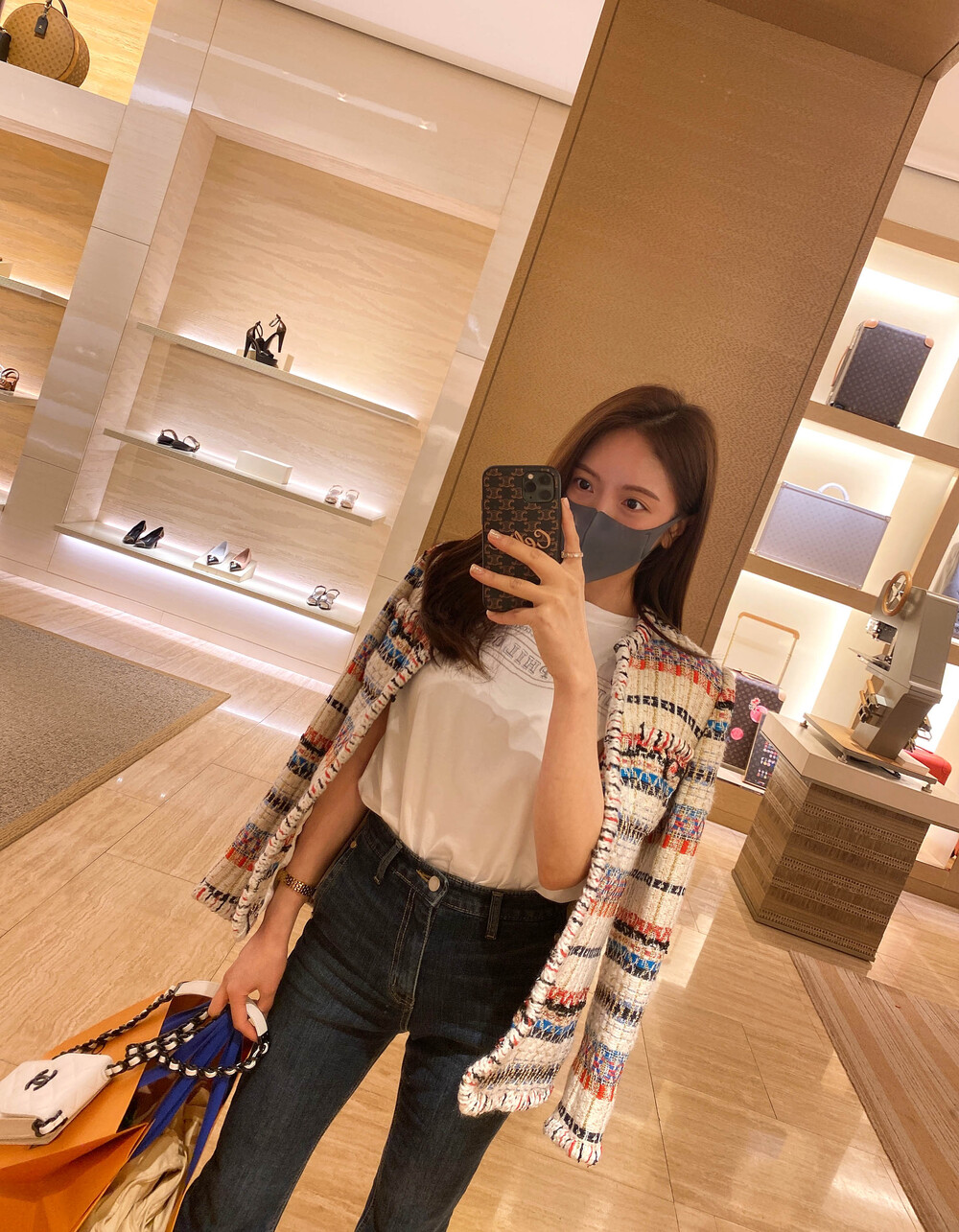 저는 체인을 가방 안쪽으로 한 번 돌려서 더 짧게 크로스로 들었어요 :)