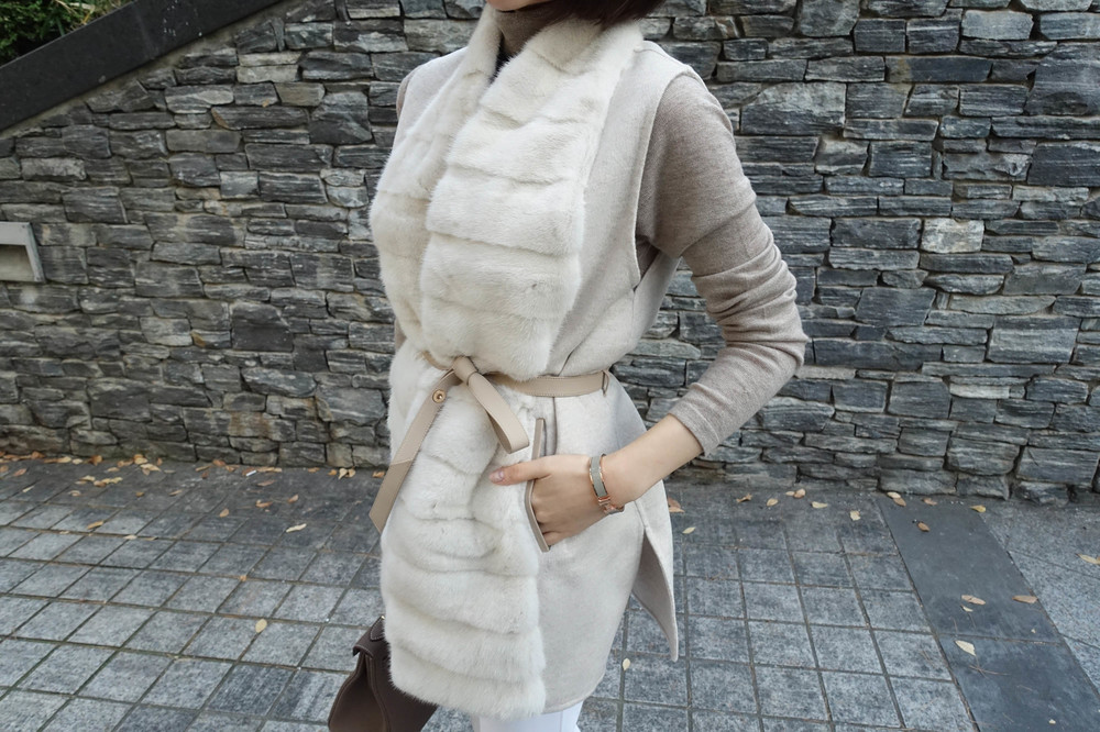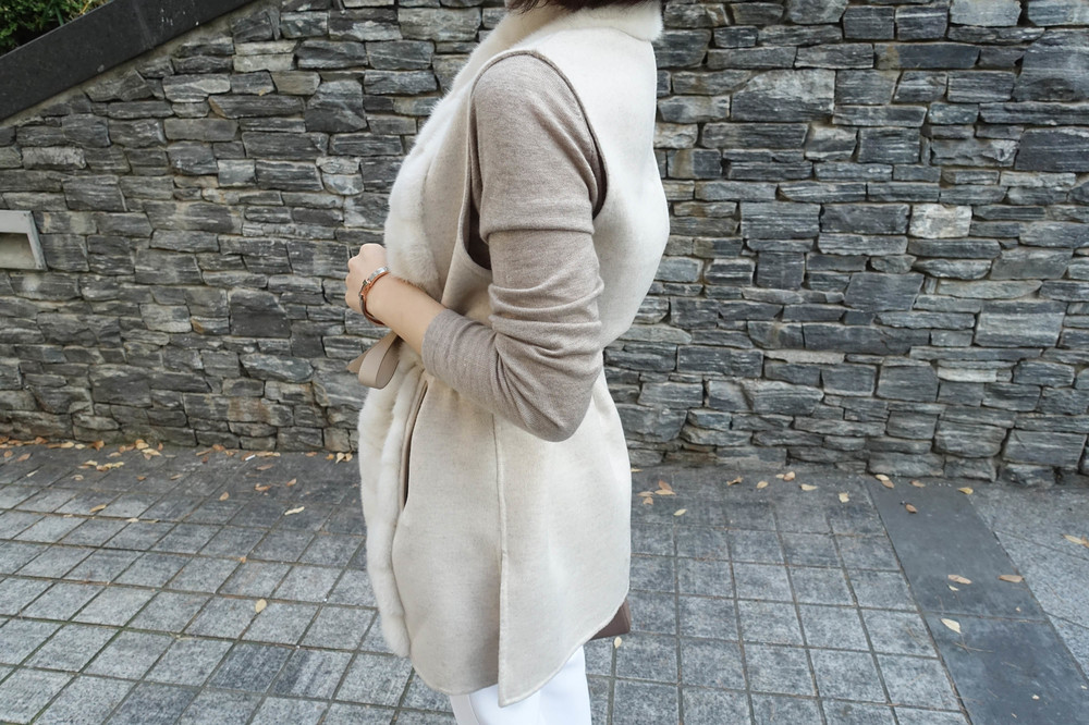 퀄리티 높은 밍크 트리밍 되어있는 캐시미어 베스트예요