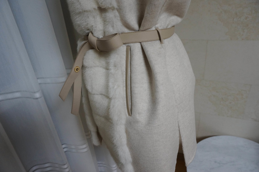 컬러는 염색하지않은 아이보리빛 밍크의 연한 오트밀컬러의 울캐시미어소재예요