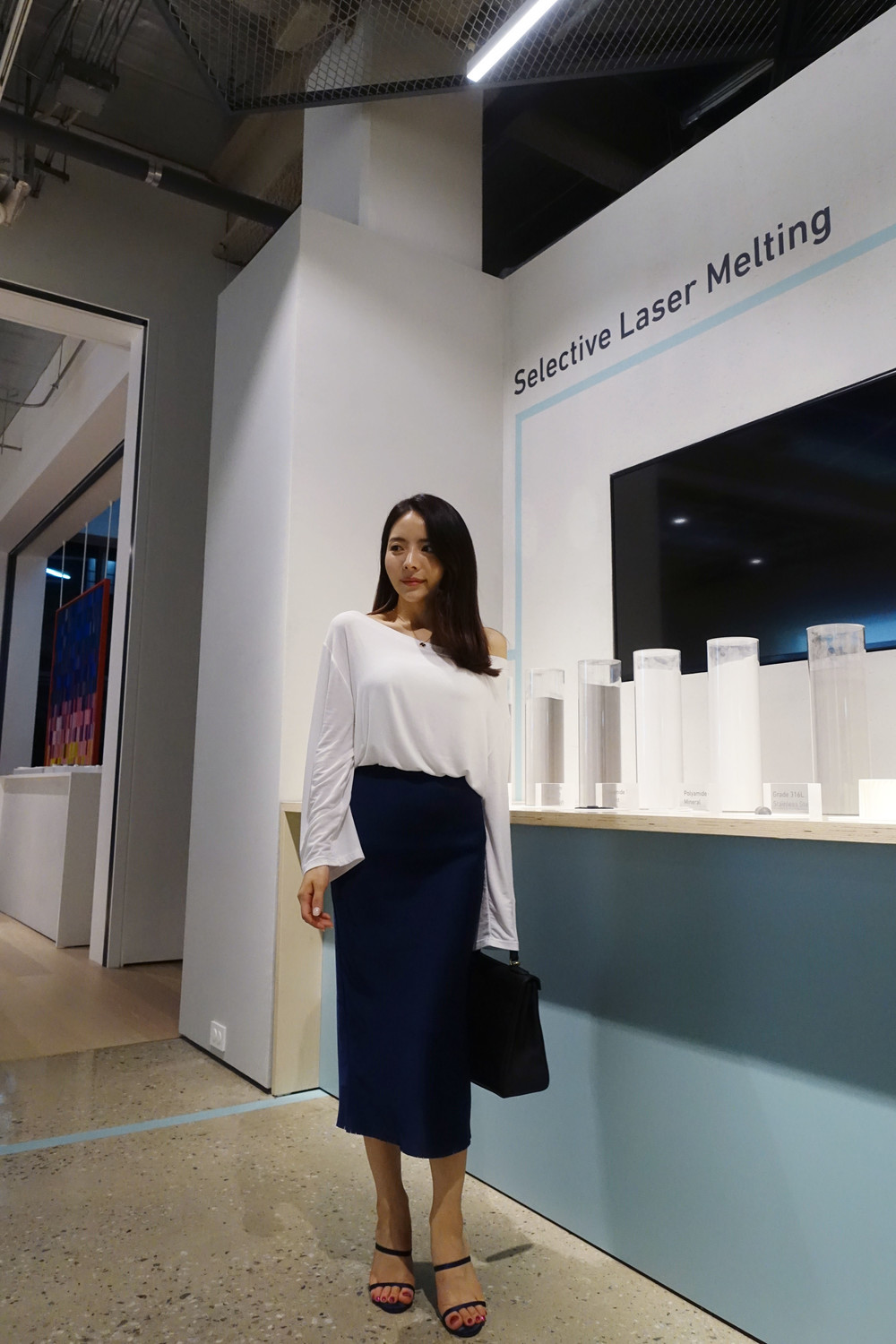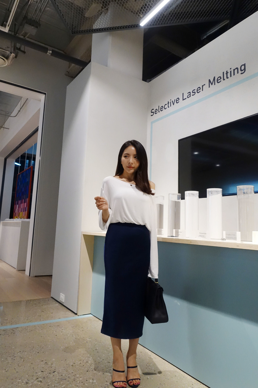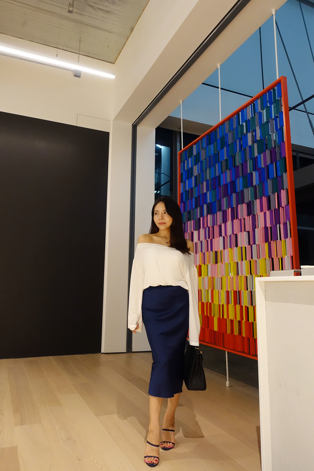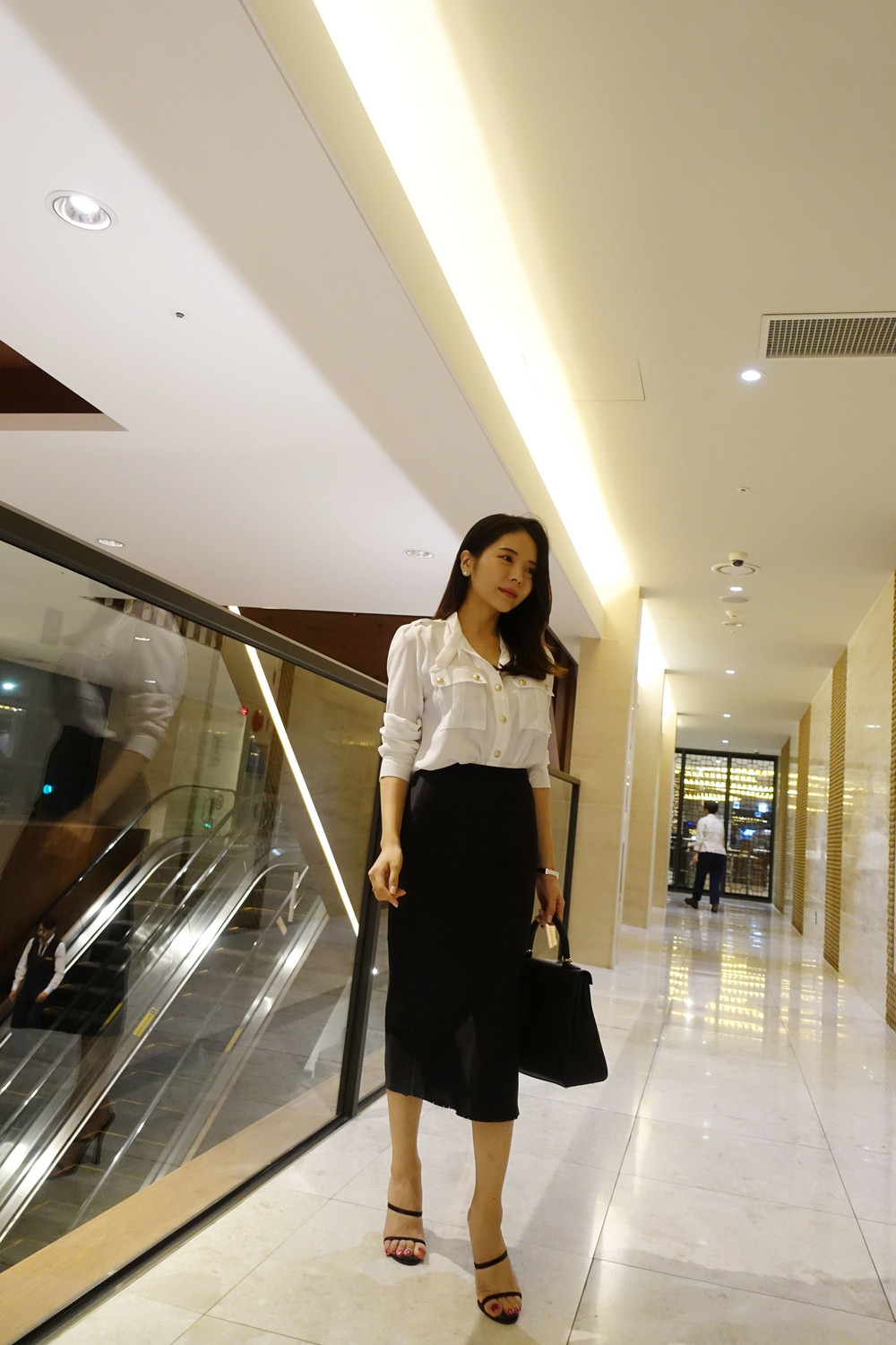 슬림해 보이는 미디 기장 스커트입니다
