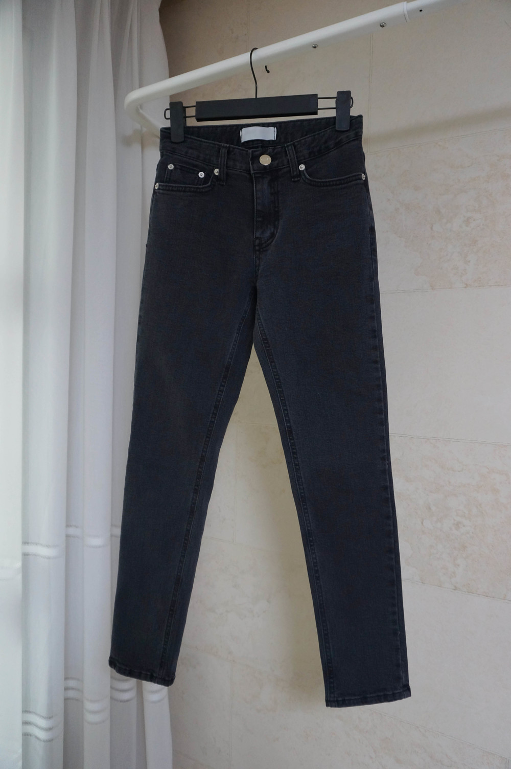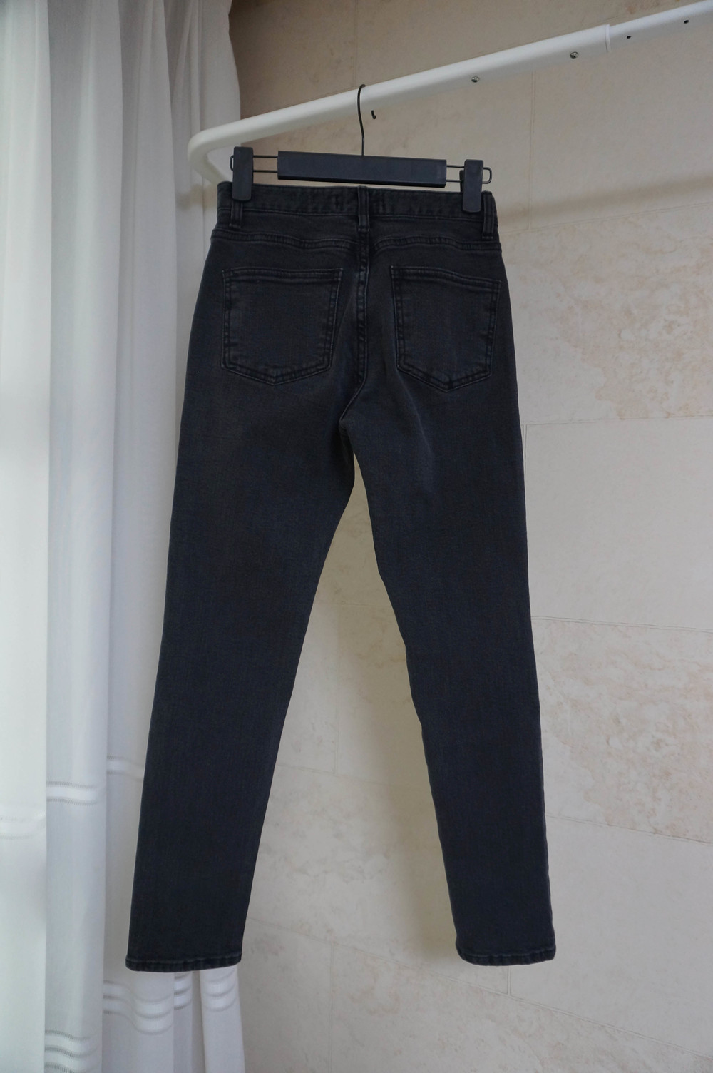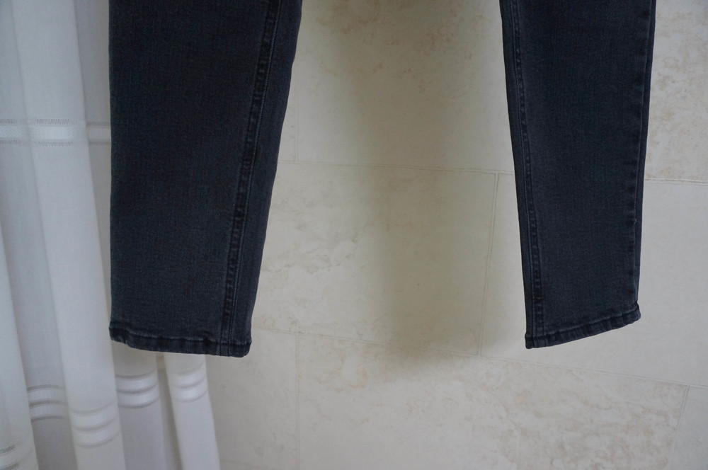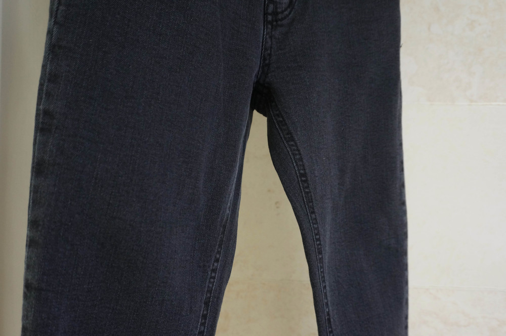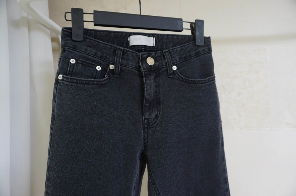 기본 블랙 컬러의 데님이지만 워싱공정을 통해 은근한 그레이 빛이 돌기도하고