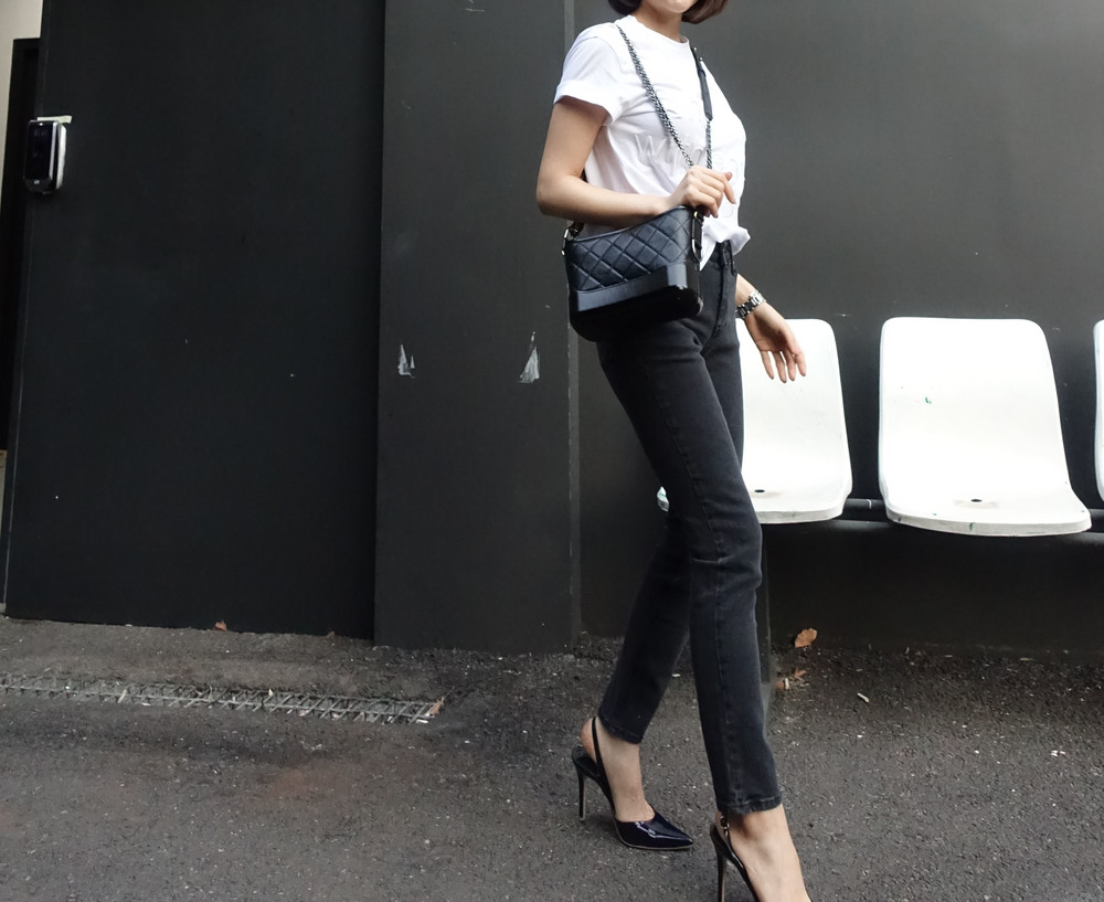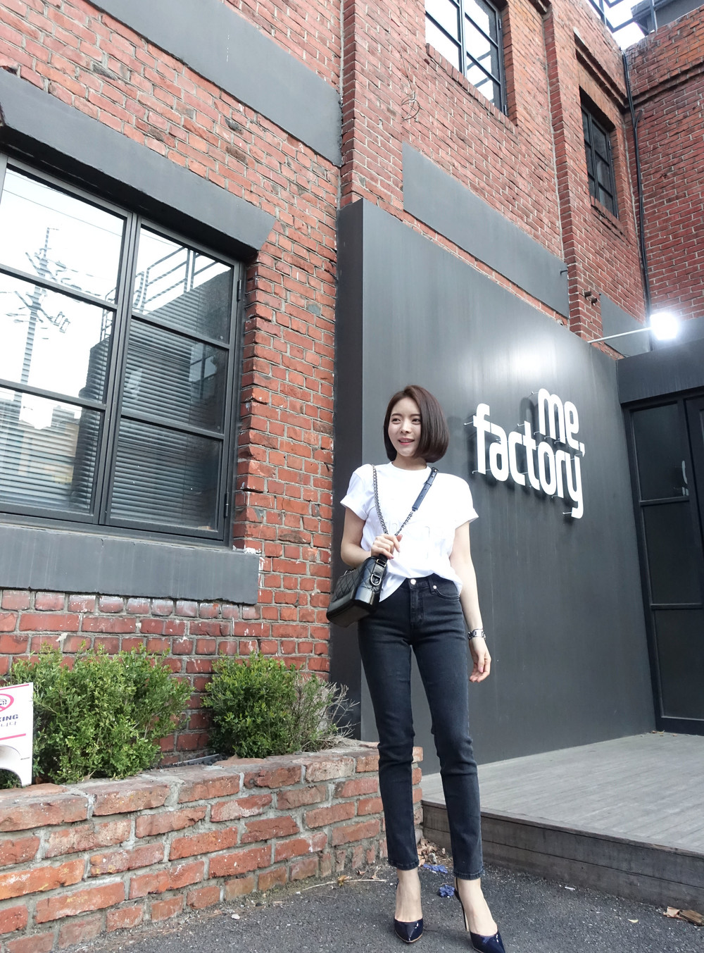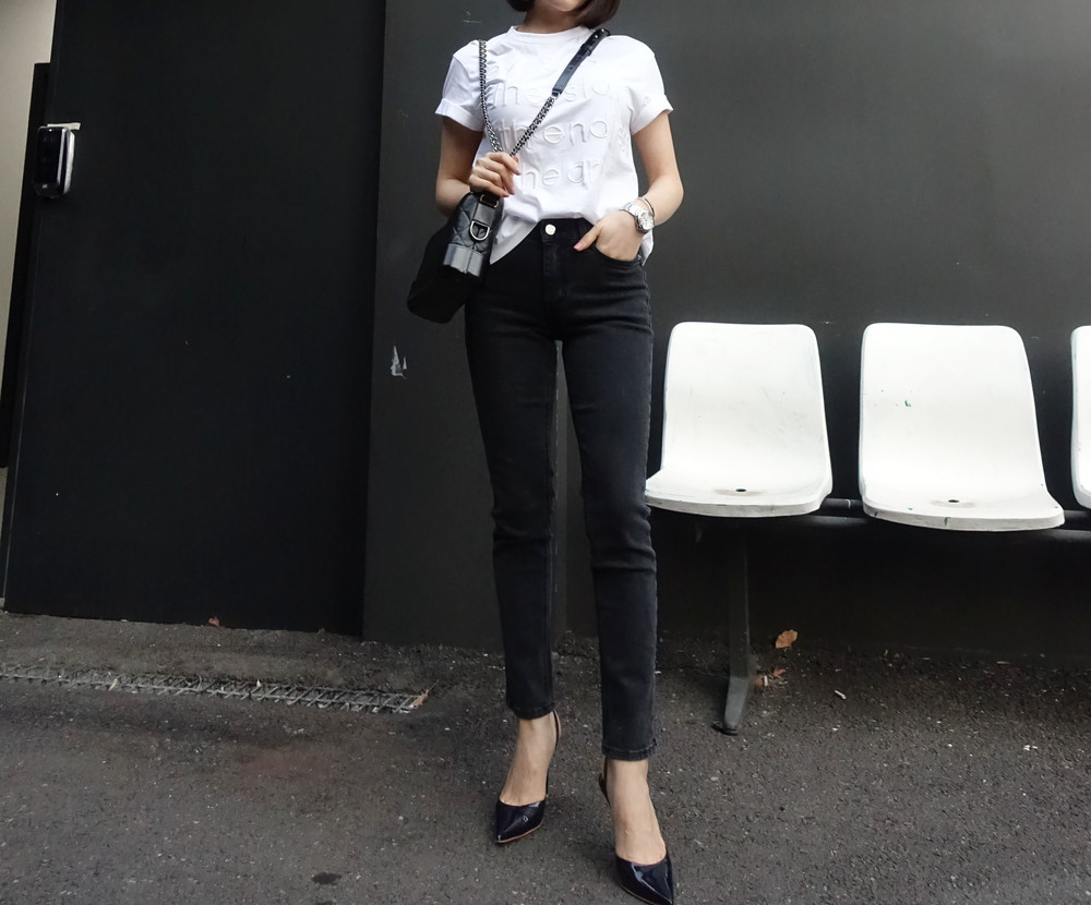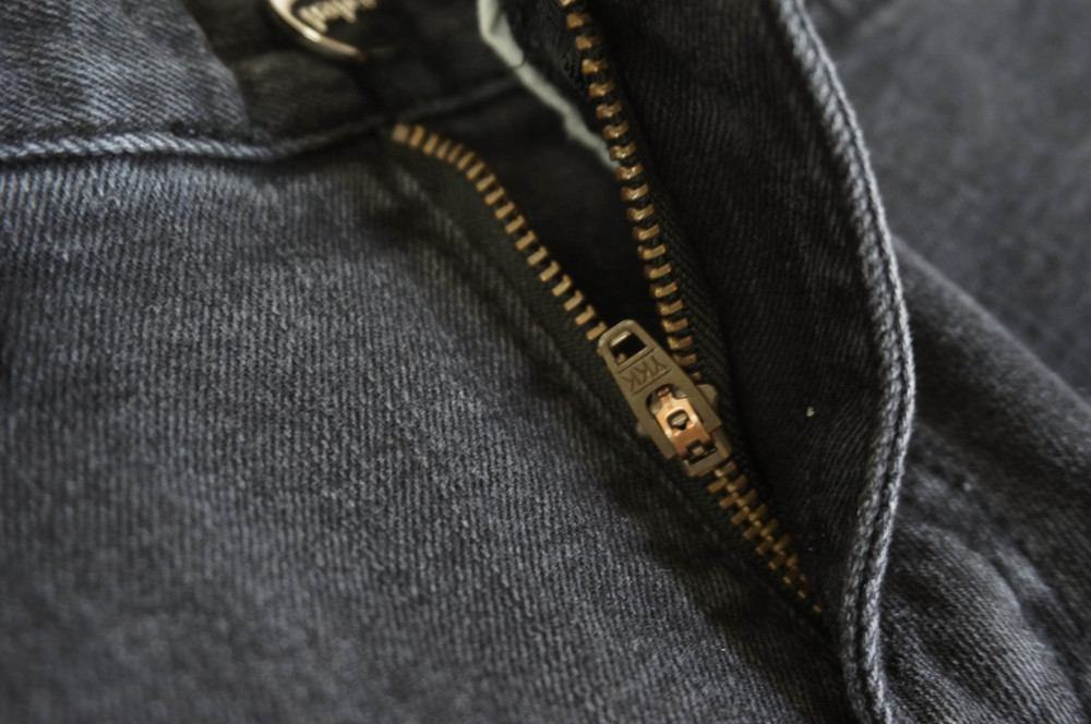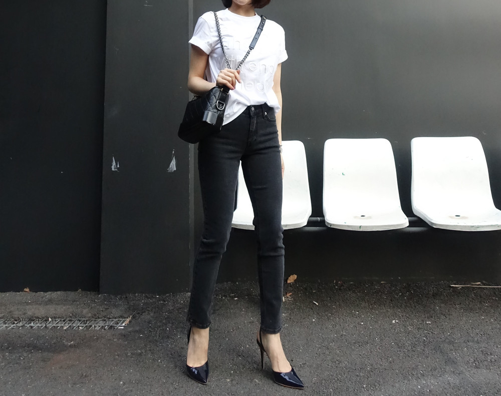 기본 블랙 컬러의 데님이지만 워싱공정을 통해 은근한 그레이 빛이 돌기도하고