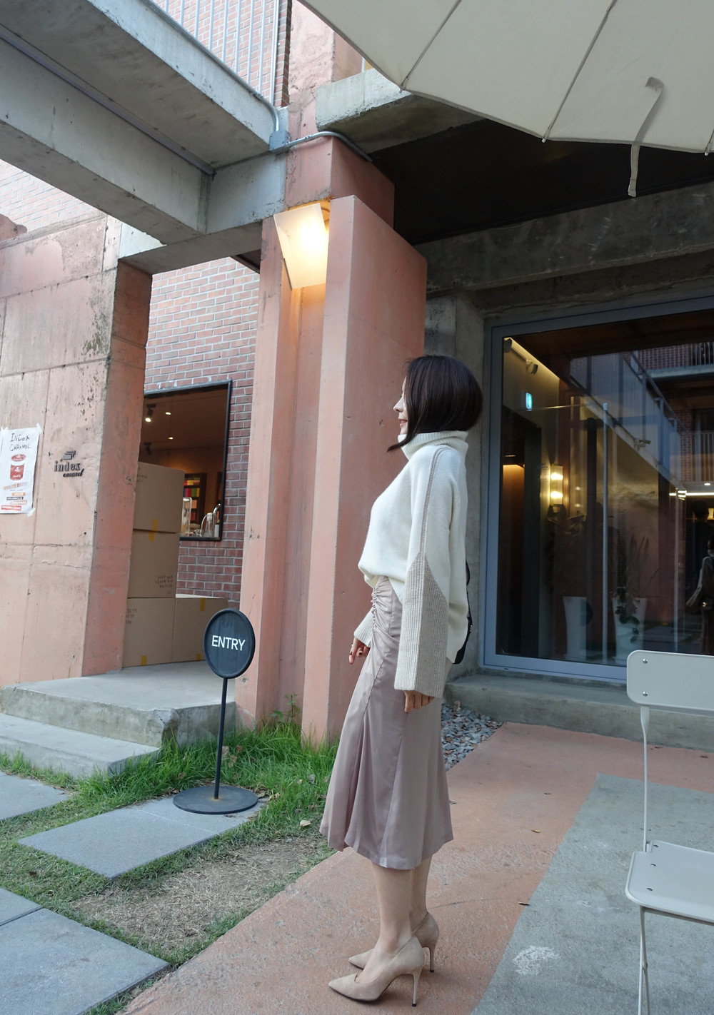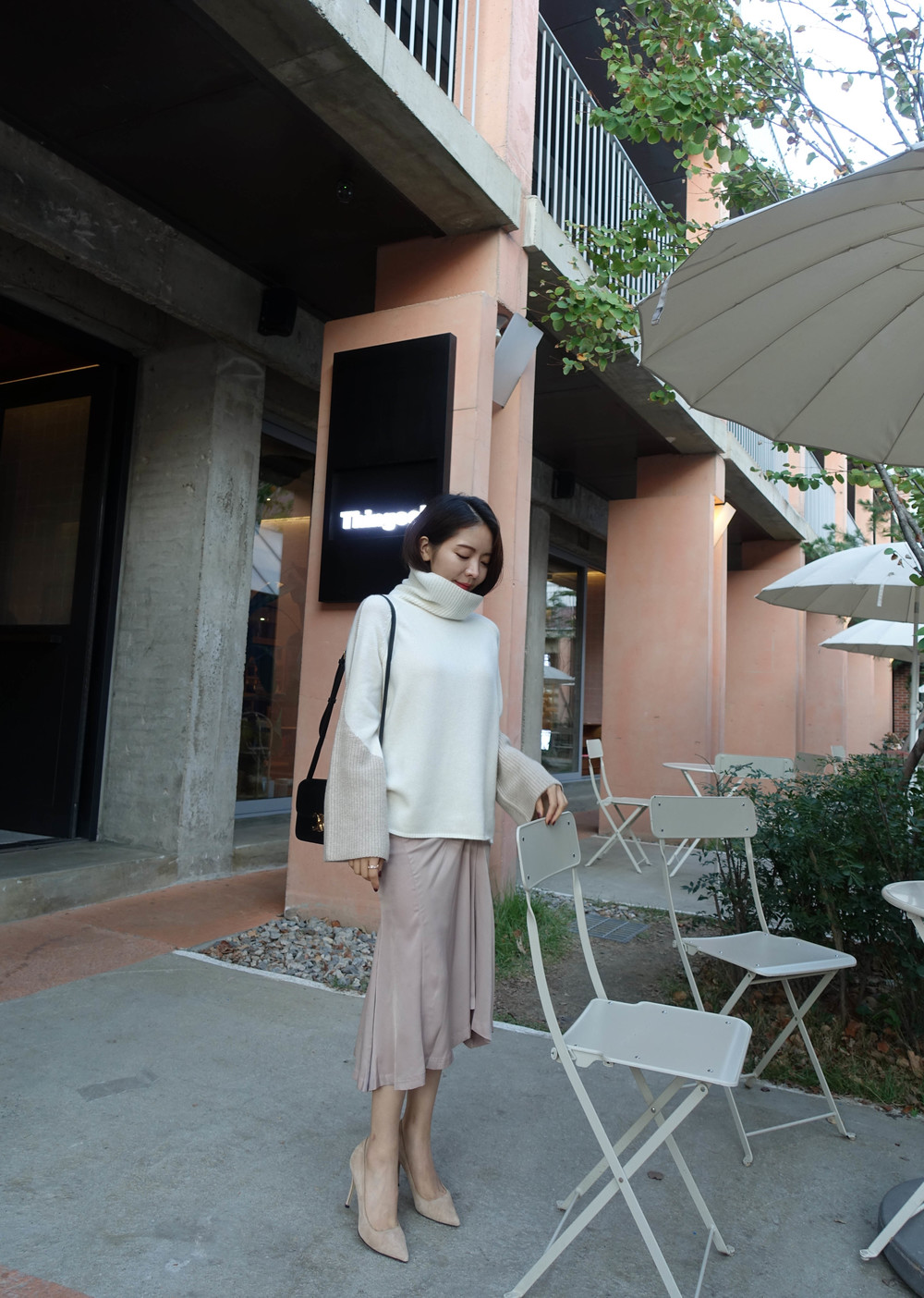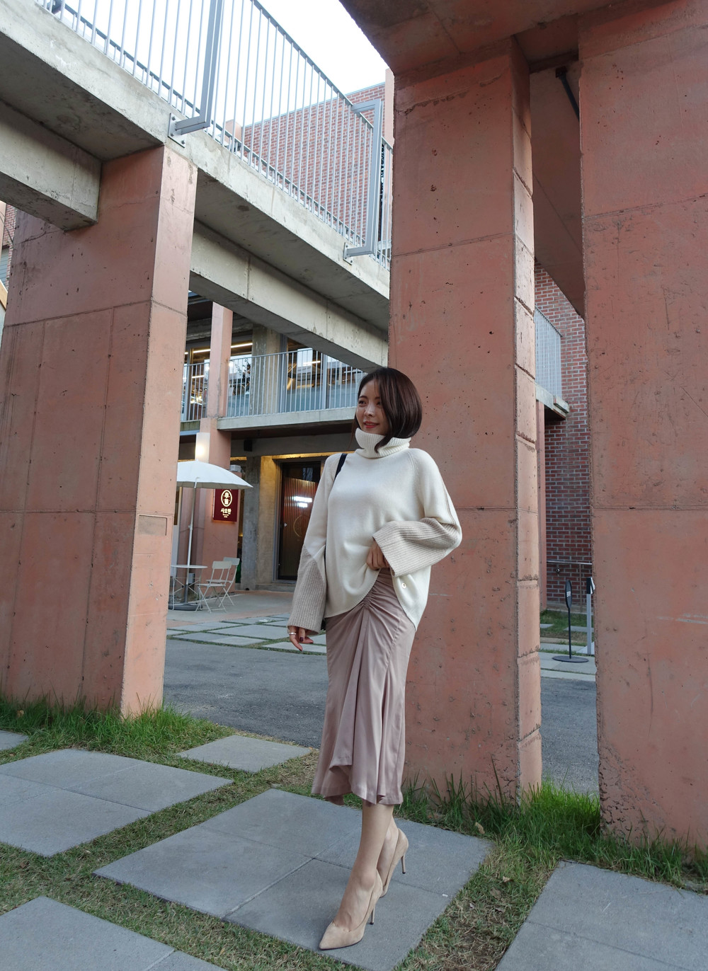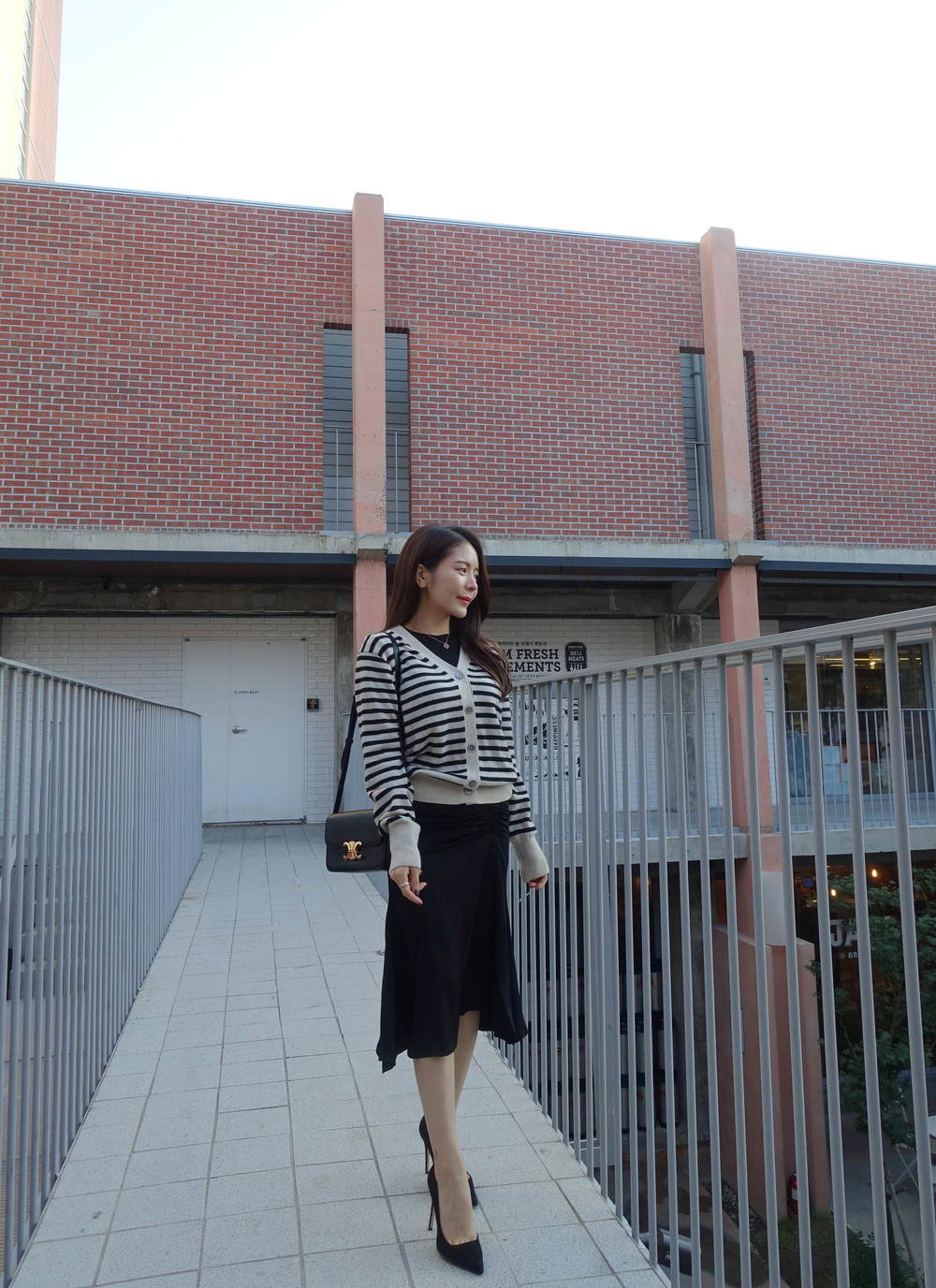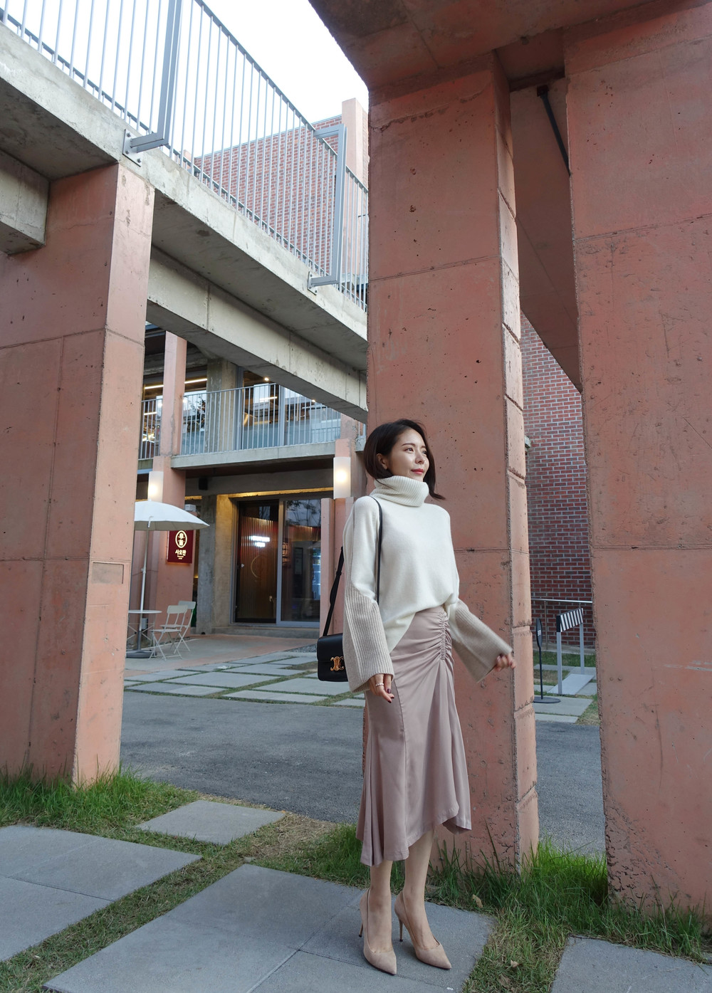 기본니트나 기본티에 코디해도 스커트의 포인트인 셔링으로 여성스러운 코디를 완성할 수 있어요
